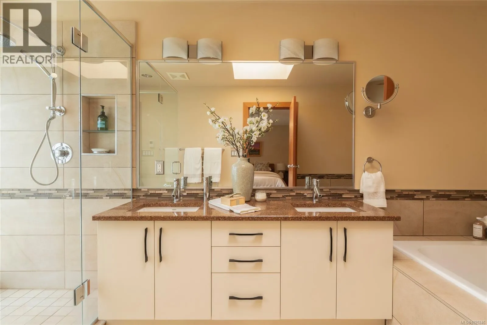 OPEN HOUSE: SUNDAY, FEB 15: 11:30-12:30. Follow your dream, home. Sun-drenched, exquisitely private & set directly on the 9th fairway of Cordova Bay Golf Course, this single-level residence offers an effortless resort lifestyle with a front-row seat to one of Victoriaâs most coveted seaside golf communities. Multiple skylights & floor-to-ceiling wood windows frame fairway & garden views from the main living spaces. The thoughtfully designed layout flows seamlessly for everyday living & entertaining, with the living room, dining room & kitchen all oriented toward the fairway & opening onto an expansive patio for true indoorâoutdoor living. The living area features a gas fireplace, rich wood trim & hardwood floors under airy 10+ ft ceilings. The adjacent dining area and generous kitchen providing lengthy granite counters, island with seating & top of the line wolf appliance package, including induction stove - positioned to take in the views. The bedroom wing is ideally separated for privacy, with a generous primary suite offering a walk-in closet with custom built-ins & skylight, spa-inspired ensuite with double vanity, soaker tub & walk-in shower. 2 additional well-sized bedrooms, one with direct access to its own private patio. Few homes enjoy this level of privacy & connection to the course: no neighbour on one side & one of few homes located directly on the fairway. Mature trees & thoughtfully placed privacy screening wrap the rear yard, while a substantial rock wall frames the front patio roughed-in for a future hot tub. Practical upgrades: gas-forced-air heating & HWOD. The oversized double garage with EV charger provides storage/workshop space. Opportunities of this calibreâcombining single-level living, rare privacy within the prestigious Cordova Bay golf communityâare rarely available; arrange a private viewing & experience golf course living from this exceptional property firsthand! Live your Luxury. Out Of Town Buyers-Virtual Tour Available Upon Request. (id:27476)