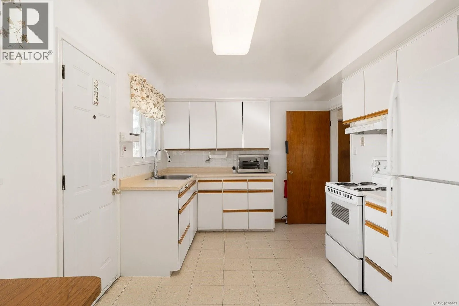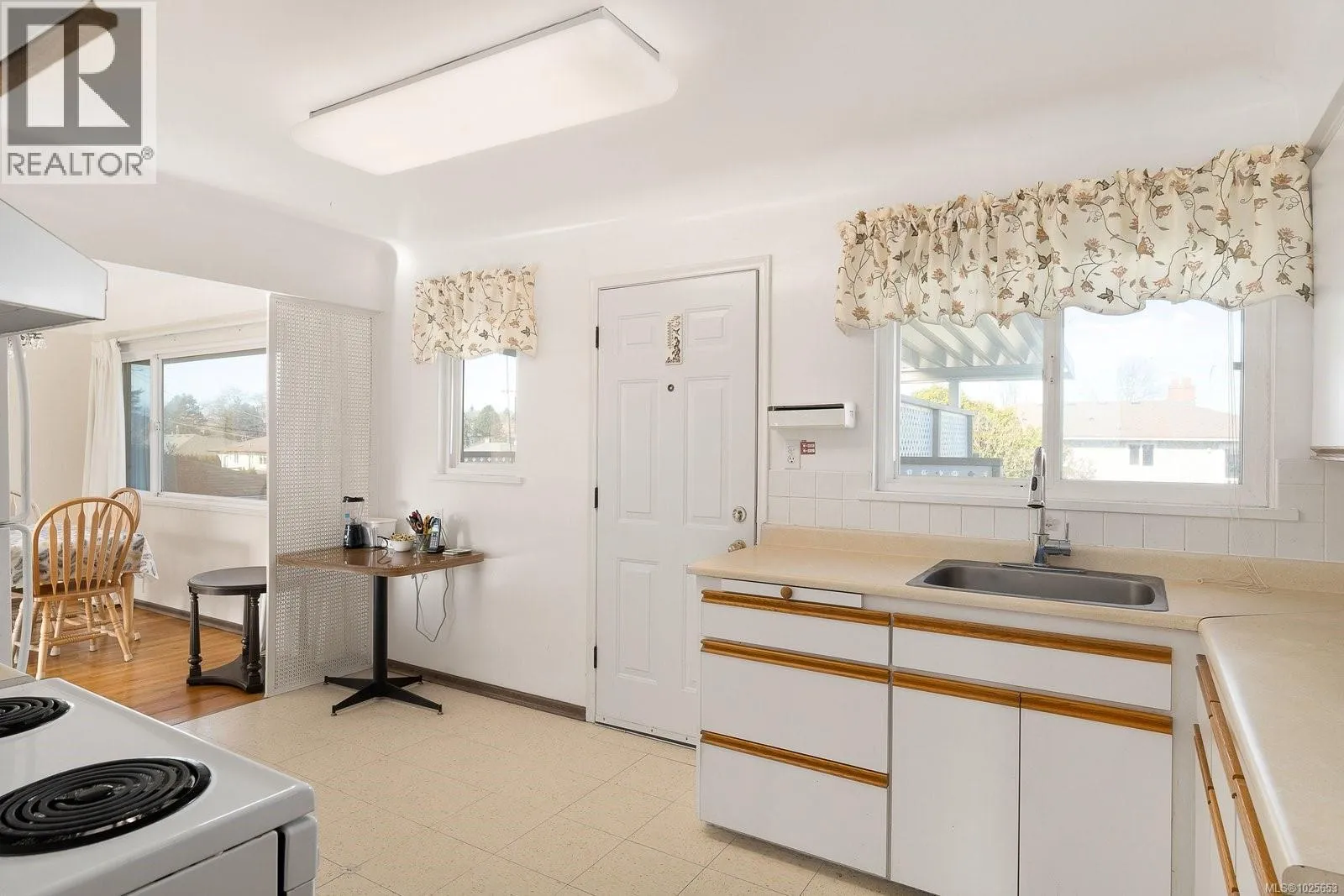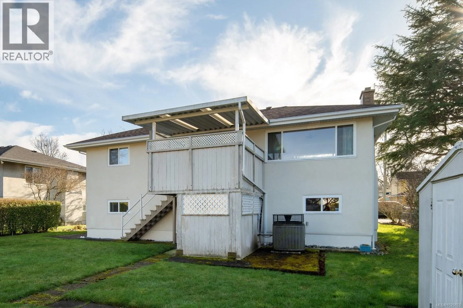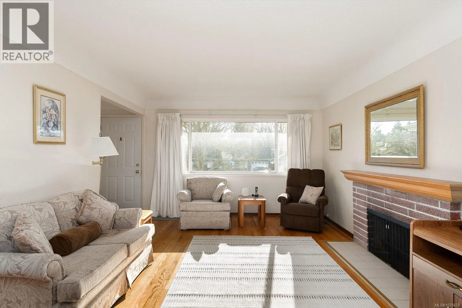 Fantastic family home in the highly sought-after Mt. Tolmie area, just minutes to UVic, an Elementary school, shopping, a local Pub, transit, and everyday amenities. Built in 1958, this well-located home offers solid bones and the perfect opportunity to add your own personal touches. The main level offers 3 bedrooms, 1 bath, hardwood floors, a cozy wood-burning fireplace, and a bright living and dining room combination. The kitchen overlooks the back deck, with views toward Mt. Doug and a generous yardâideal for kids and pets, summer BBQs, gardening, and relaxed evenings outdoors. Many of the big-ticket updates have already been completed, including a newer heat pump system, newer roof, windows, and updated perimeter drains. The lower level features a spacious family room, unfinished laundry and storage areas, plus a smaller one-bedroom suite, ideal for students, teens, caretakers, or extended family. A wonderful blank canvas in a central location, ready for your vision to bring it to life. (id:27476)
