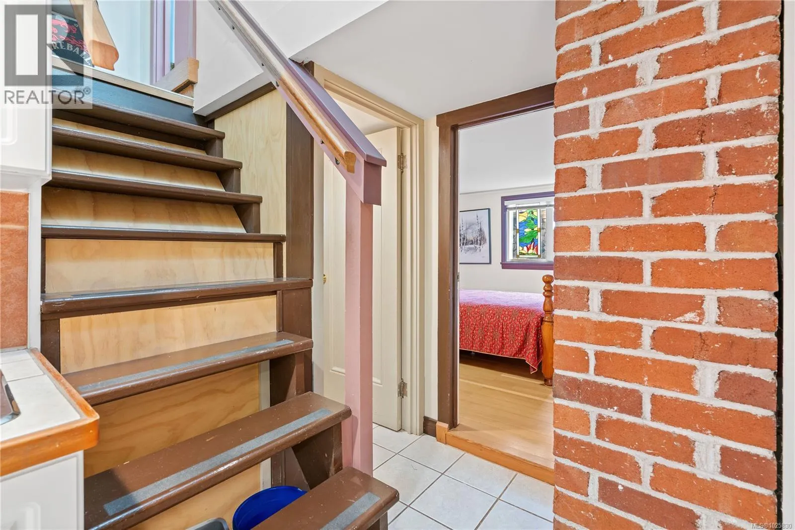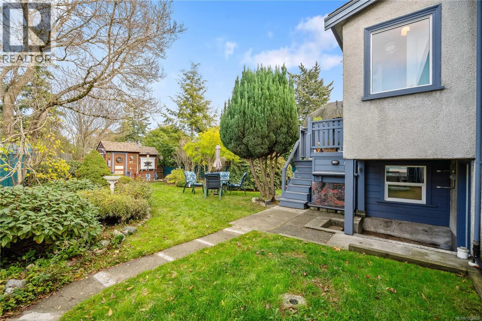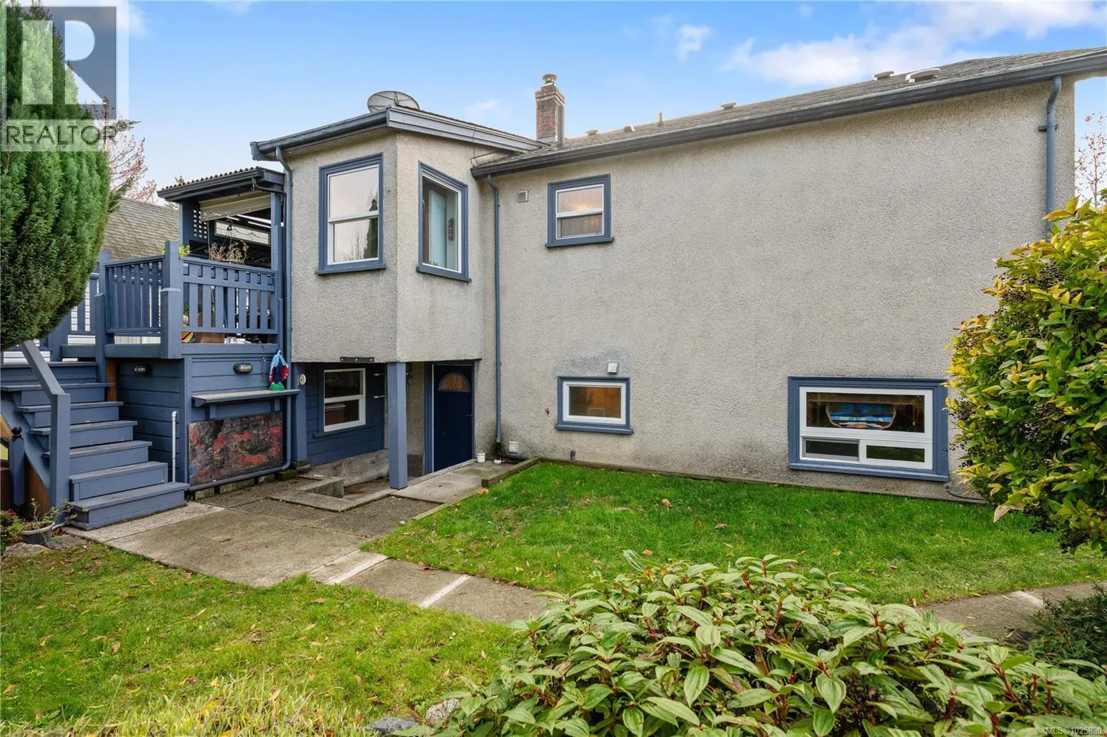 Welcome to this cute and character-filled bungalow, perfectly blending classic details with modern updates. Featuring 3 bedroomsâ2 on the main level and 1 in the income-producing suite belowâthis home offers versatility for both homeowners and investors. Original fir floors, a cozy wood-burning fireplace with insert, and elegant cove ceilings add timeless warmth, while a new natural gas furnace/air conditioner ensures comfort year-round. The bright kitchen opens to a lovely deck overlooking the private, beautifully landscaped backyardâan ideal space for outdoor entertaining. The suite includes two private entrances, shared laundry with potential for a second set, offering flexibility for tenants or extended family. Stove removed but outlet in place. With parking for three vehicles, easy access to transit, and close proximity to downtown amenities, this home is a rare find in a prime location. (id:27476)