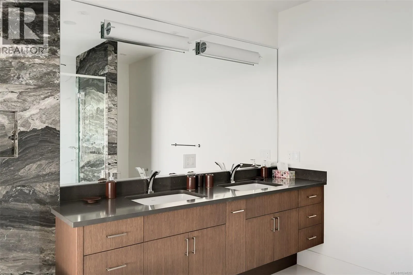 Protected oceanfront living in the heart of Cordova Bay. This custom-built coastal residence offers panoramic views, exceptional privacy, and a layout thoughtfully designed for multi-generational living. The ocean-facing main level features a stunning open-concept kitchen with quartz countertops and premium appliances by Sub-Zero and Wolf, flowing seamlessly into expansive living and dining areas framed by large-format windows and doors that capture the ever-changing shoreline. Designed for comfort in every season, the home includes radiant in-floor heating, a heat pump, triple-pane windows, and smart home features throughout. A dedicated media room, private guest space, and fully self-contained secondary suite provide flexibility for extended family, visitors, or independent living. Multiple patios create effortless indoor-outdoor connection, ideal for entertaining or quiet mornings by the water. The property also offers a two-car garage, ample additional parking, irrigated landscaping, and integrated security. Built to an exceptional standard and positioned on protected waterfront, this is a rare opportunity to secure a legacy-quality home in one of Victoriaâs most sought-after seaside communities. (id:27476)