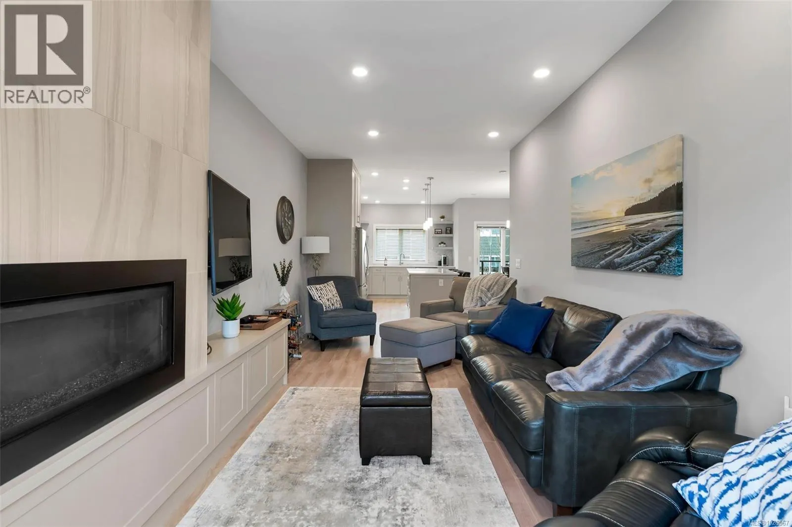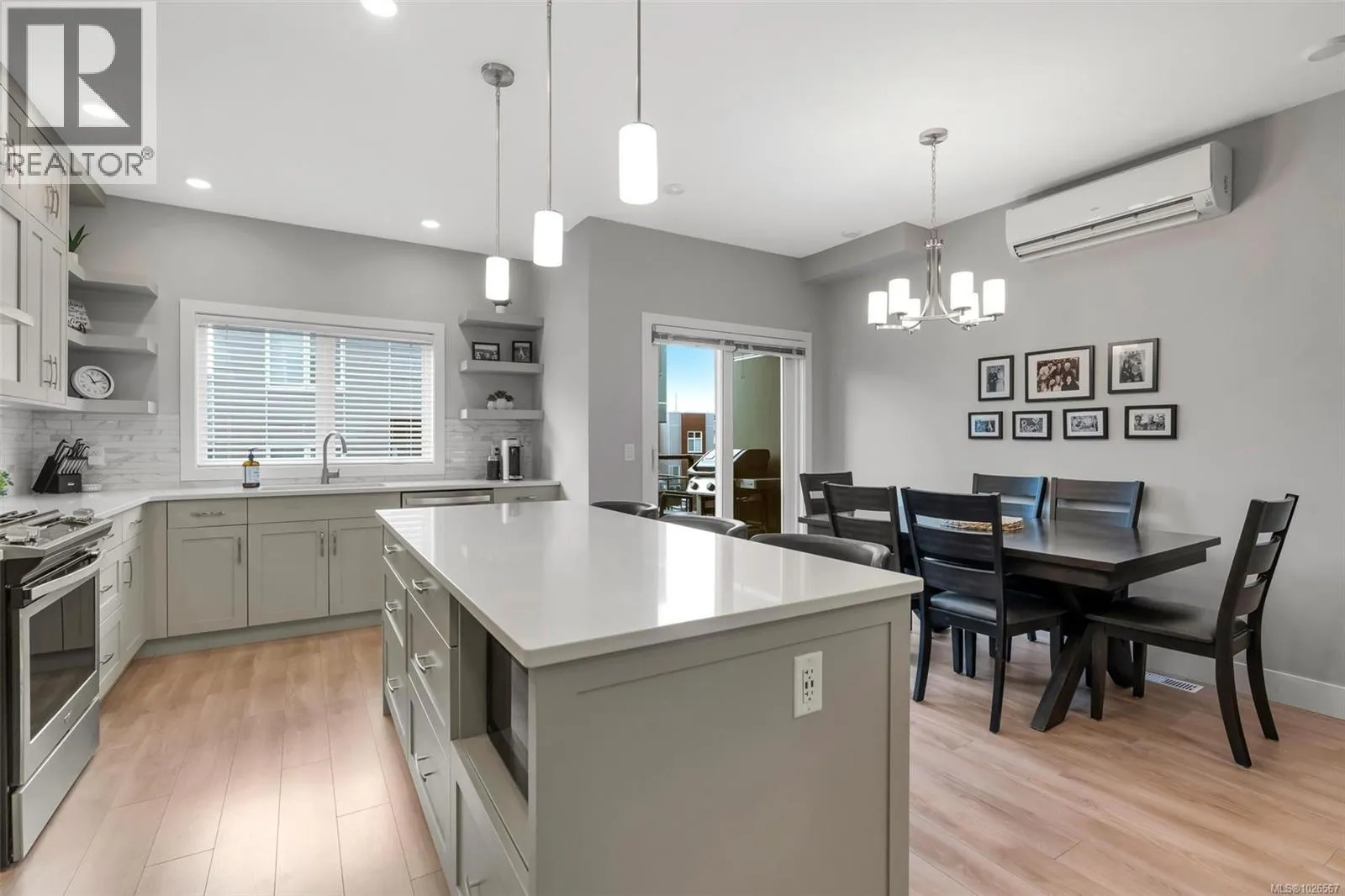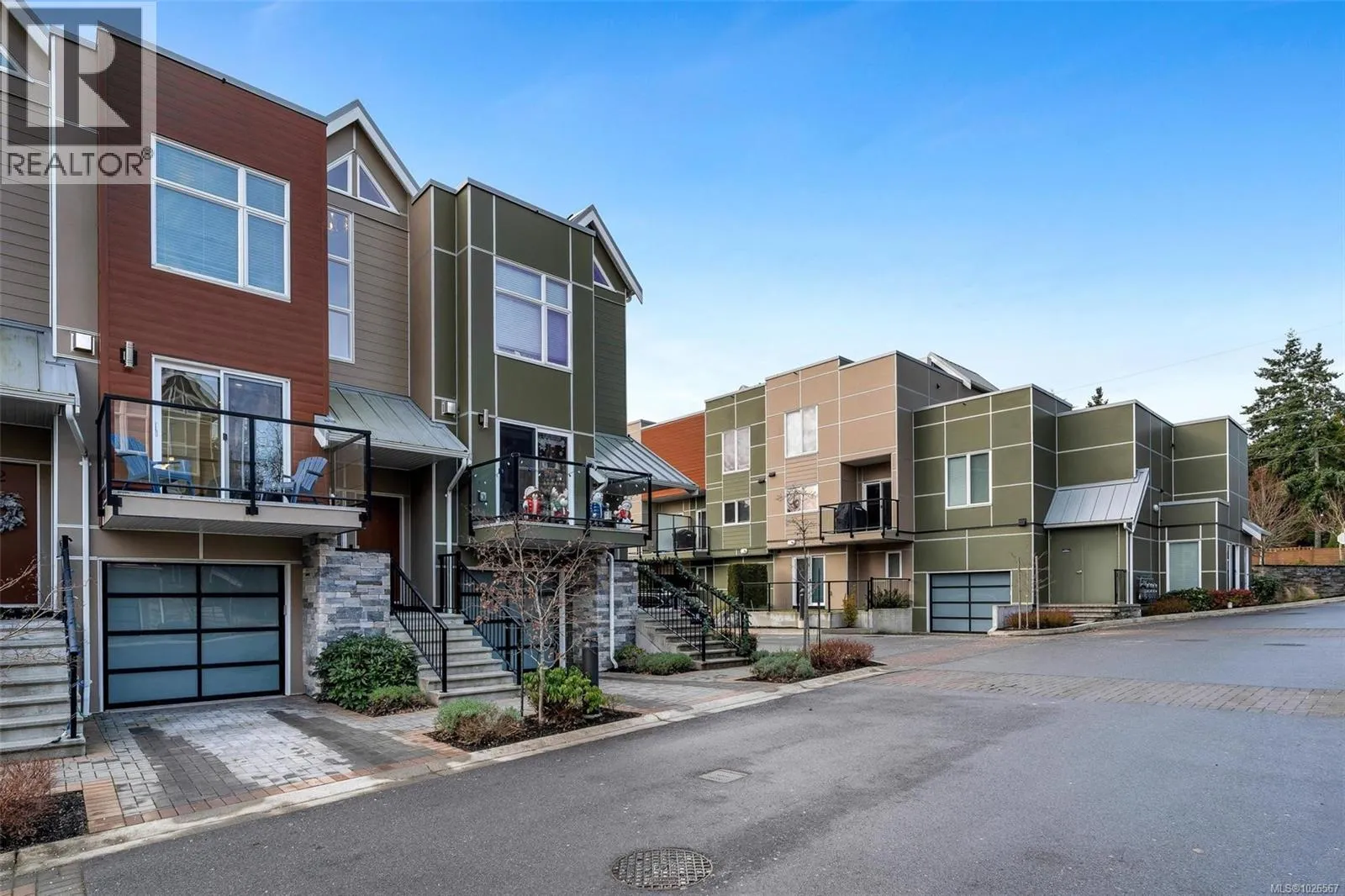 Stunning Royal Oak townhome located at ''The Reeve.'' Offering over 1,550 sq.ft., this 3 Bedroom, 3 Bathroom plan features an open main floor plan with chef's kitchen with a large island, gas cooktop & stainless appliances. Living room with gas fireplace & separate dining area with access to a south facing balcony w/ gas hook-up for the BBQ. Upstairs, you'll find the primary bedroom with 4 pce ensuite, second bedroom, laundry & 4 pce bathroom. The lower level features the 3rd bedroom, 2 pce bath and access to a south facing walk-out patio. Solar voltaic panels, central heating & air conditioning and on-demand gas hot water make this a very efficient home. EV charger in the garage and driveway parking for your second car. Shows like new & is great for families & pet-friendly. Centrally located next to Brydon Park & within walking distance to Country Grocer, Royal Oak Middle School restaurants and trails. (id:27476)