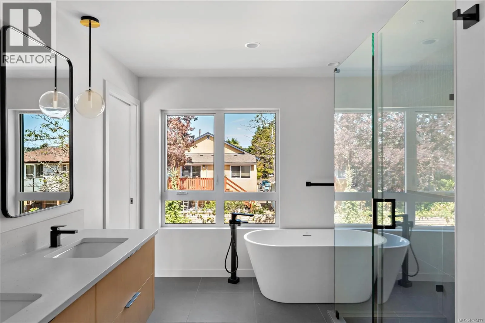 *Only 1 Home Remains* Welcome to Oakhurst, an exclusive collection of 2 luxury half-duplexes built by the highly regarded Villamar Homes. Situated just steps to Oak Bay's border, these homes are elegantly designed with TWO custom floorplans, clean modern lines & warm finishes throughout. 1970 boasts a bright South facing living room & a luxurious kitchen overlooking the dining room w/an easy transition to the rear West facing private patios, a perfect layout for entertaining. The primary suite is a true retreat w/a spa inspired ensuite & generous walk-in. A custom mudroom, 2 more beds & a flex space provide comfort & options for family, guests or any extra personal needs. The garage, beautiful private outdoor space & a heat pump add to the appeal. Steps to Willows Beach, Estevan Village, Oak Bay Rec & High School, Royal Jubilee & Carnarvon Park. Oakhurst combines elegance, convenience & exceptional value â delivering an incomparable turnkey lifestyle in a fantastic location! (id:27476)