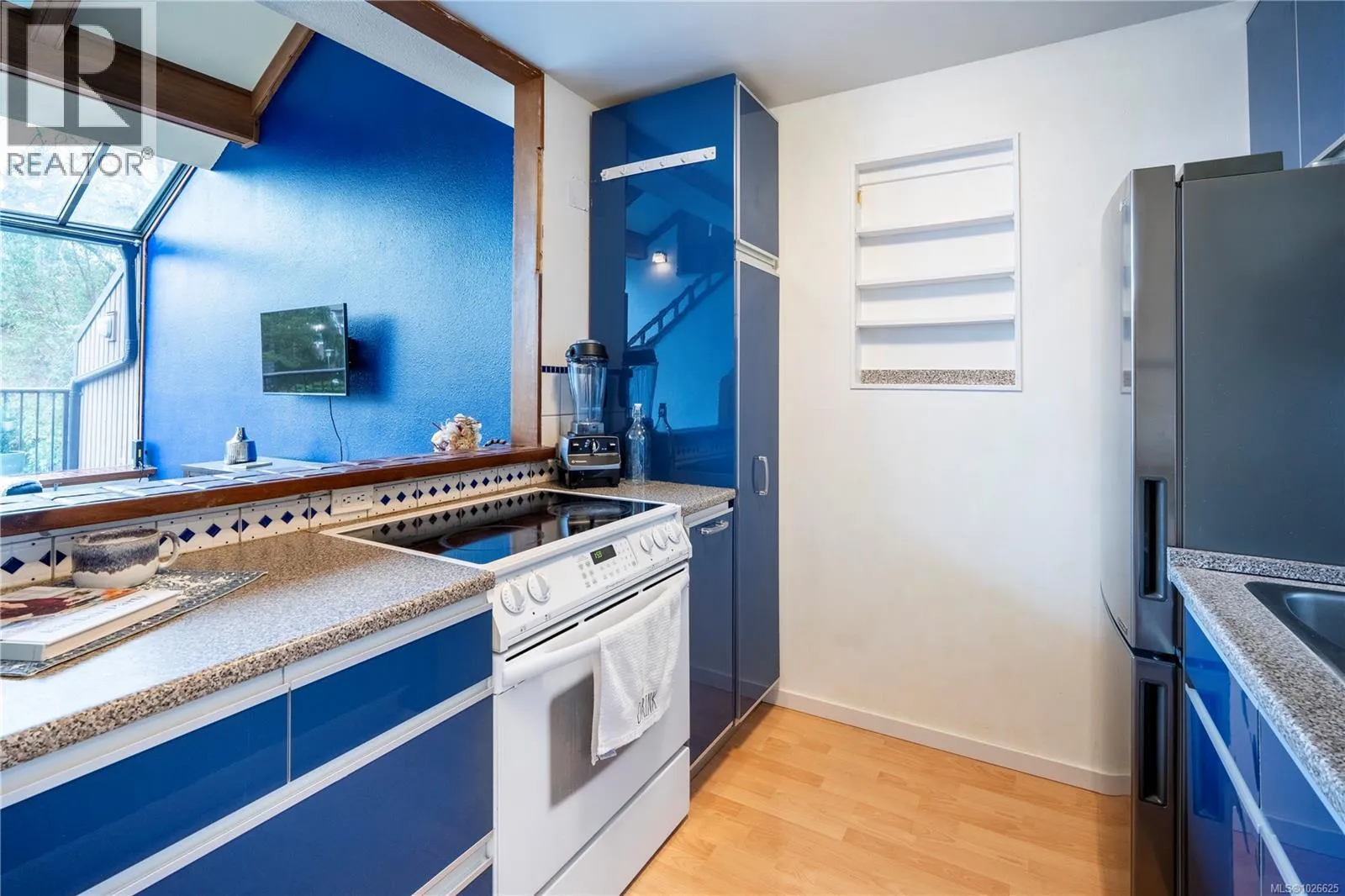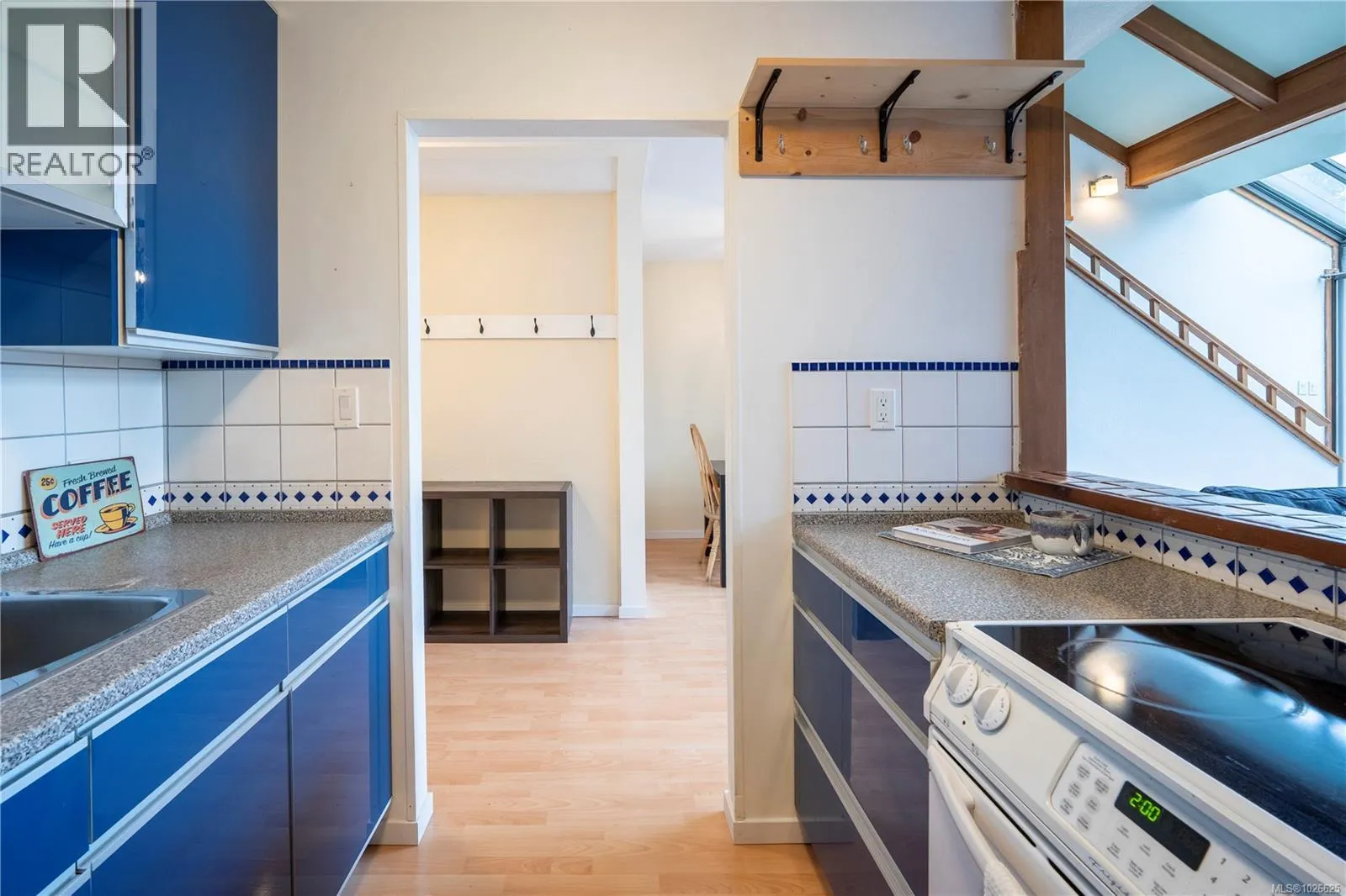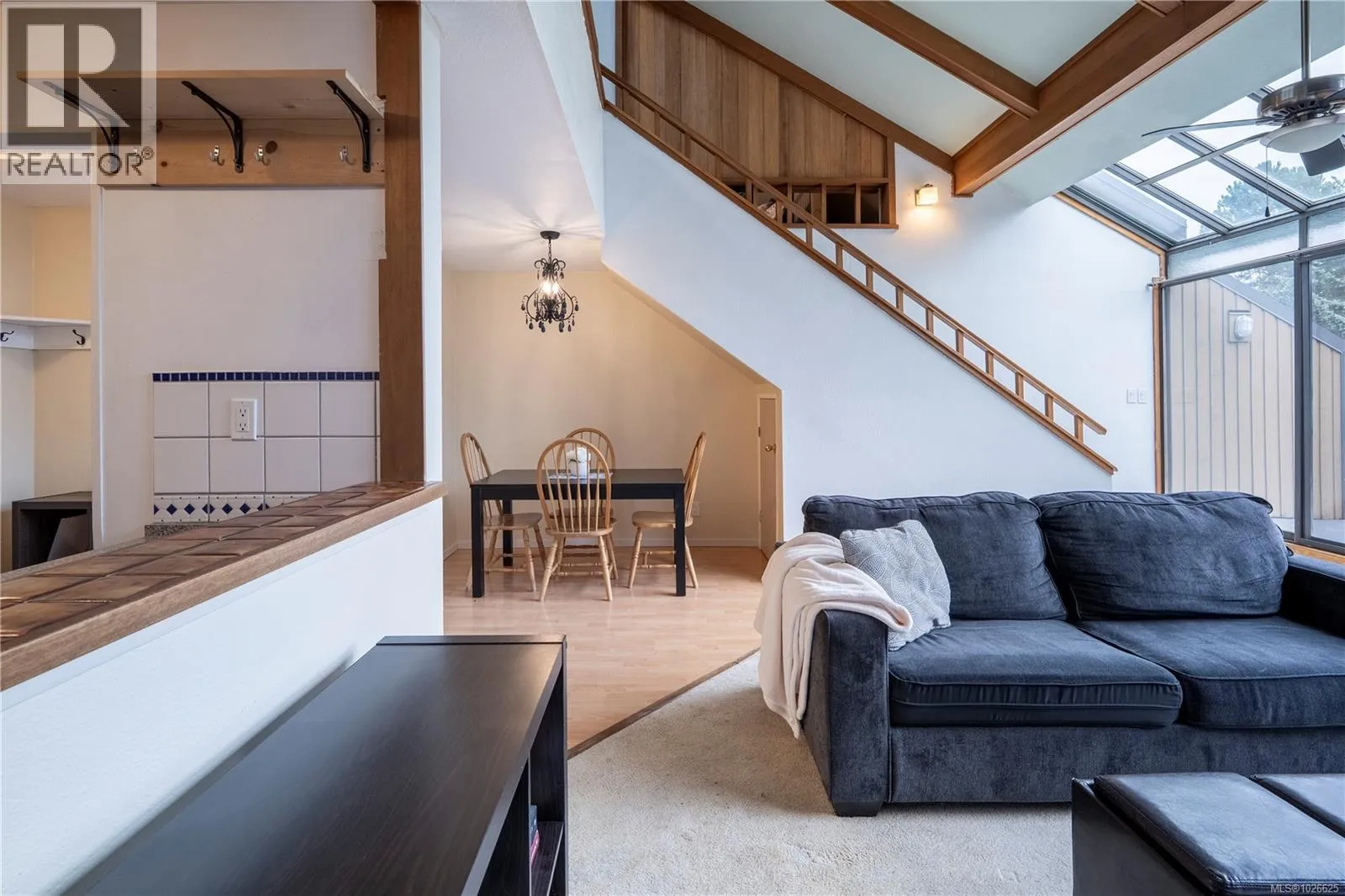 Royal Oakâs most compelling loft opportunityâ1,276 square feet of vaulted, light-filled living at an exceptional price point in Royal Estates. This two bedroom, two bathroom residence offers soaring ceilings, panoramic skylights, and a full wall of glazing opening to a private east-facing patio that spans the length of the unit, maximizing natural light and seamless indoor-outdoor flow. The unique two-level entry provides flexibility and privacy rarely found in conventional condominium layouts. The open-concept main living area features granite kitchen counters, generous under-stair in-suite storage, plus a large separate storage locker. The oversized primary bedroom includes a walk-in closet and marble-surround bath detail. The building is heat pump approved. Strata fees include heat, hot water, and electricityâan uncommon and valuable monthly cost advantage. The property is rentable with no age restrictions, offering strong long-term holding potential. Located in the highly walkable Royal Oak neighbourhood of Saanich, residents are steps to parks and green space and within walking distance to Commonwealth Place recreation centre, Royal Oak Shopping Centre, Broadmead Village, grocery stores, cafés, professional services, and major bus routes. Convenient access to the Pat Bay Highway allows efficient travel to downtown Victoria, the University of Victoria, Victoria International Airport, and BC Ferries. Exceptional price-per-square-foot value in an amenity-rich, centrally positioned community. (id:27476)