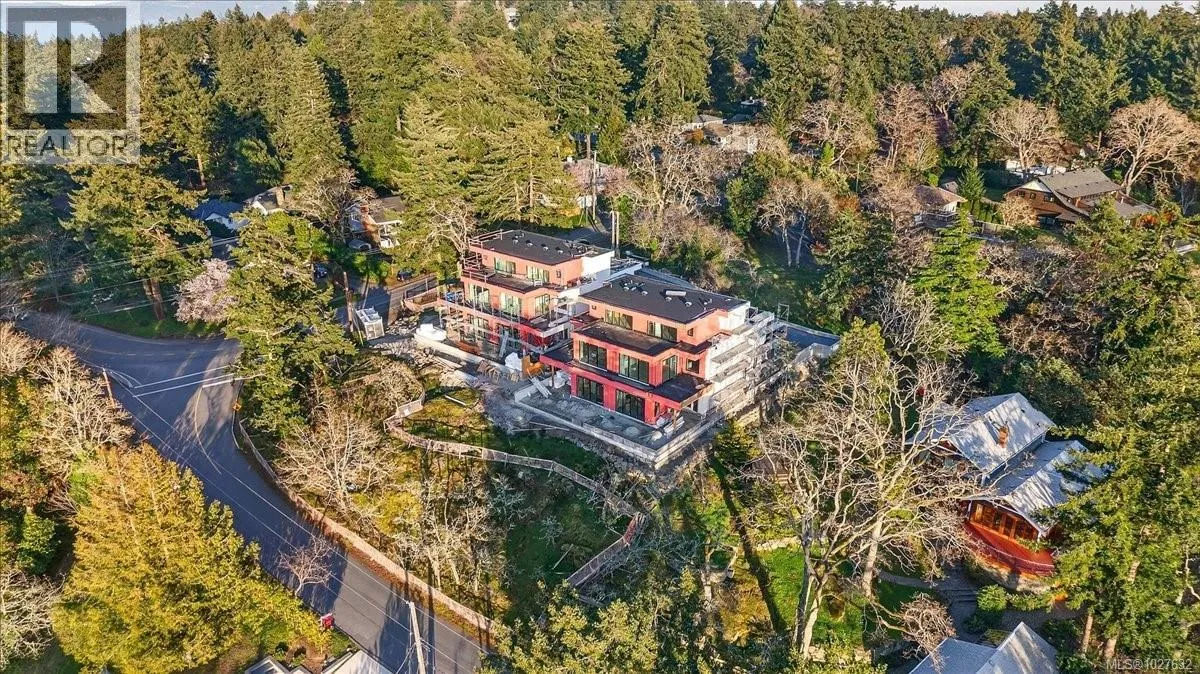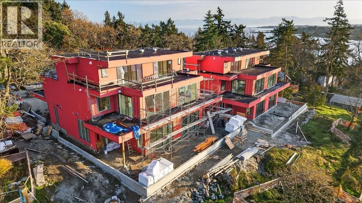 COVE CREST at Ten Mile Point offers an exclusive collection of four luxury strata residences, each providing over 2,700 sq ft of refined coastal living with views from every level. Thoughtfully designed for comfort and longevity, each three-level home features a private in-home elevator for seamless access throughout.The main floor presents open-concept living with a chef-inspired kitchen, premium appliances, quartz countertops, custom cabinetry, and an inviting living and dining space anchored by a contemporary fireplace. Upstairs, the primary suite includes a spa-inspired ensuite and walk-in closet, complemented by two additional bedrooms, full guest bath, and laundry. Top level offers a flexible lounge with powder room and access to a stunning rooftop terrace. Enjoy nearly 500 sq ft of elevated outdoor space plus private yard area. Just steps to the beach, enjoy breathtaking sunsets, scenic coastal walks, and the quiet charm of one of Ten Mile Pointâs most coveted seaside pockets. (id:27476)