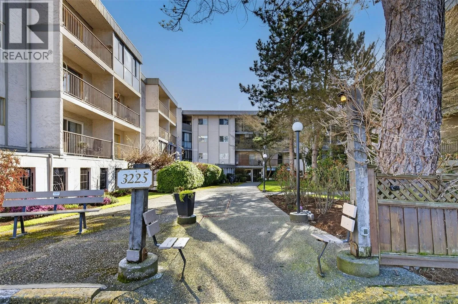 Welcome to this bright, top-floor suite tucked away on the quiet side of the building at 3225 Eldon Place. This turnkey, move-in ready home offers beautiful views and an abundance of natural light. Thoughtfully laid out, this inviting unit is perfect for first-time buyers, students, downsizers, or investors alike. Enjoy peaceful outlooks while still being centrally located just minutes to Downtown Victoria and within walking distance to Uptown and Mayfair Mall. The well-managed building offers exceptional amenities including an indoor swimming pool, whirlpool, fully equipped workout room, billiards room, and hobby room, providing year-round enjoyment and lifestyle convenience. Strata fees include heat, hot water, water, and parking, offering excellent value and simplified monthly budgeting. Rentals are allowed, there are no age restrictions, and small pets are welcome. A bright, quiet, and turnkey home in an unbeatable location, this one is ready to go. (id:27476)