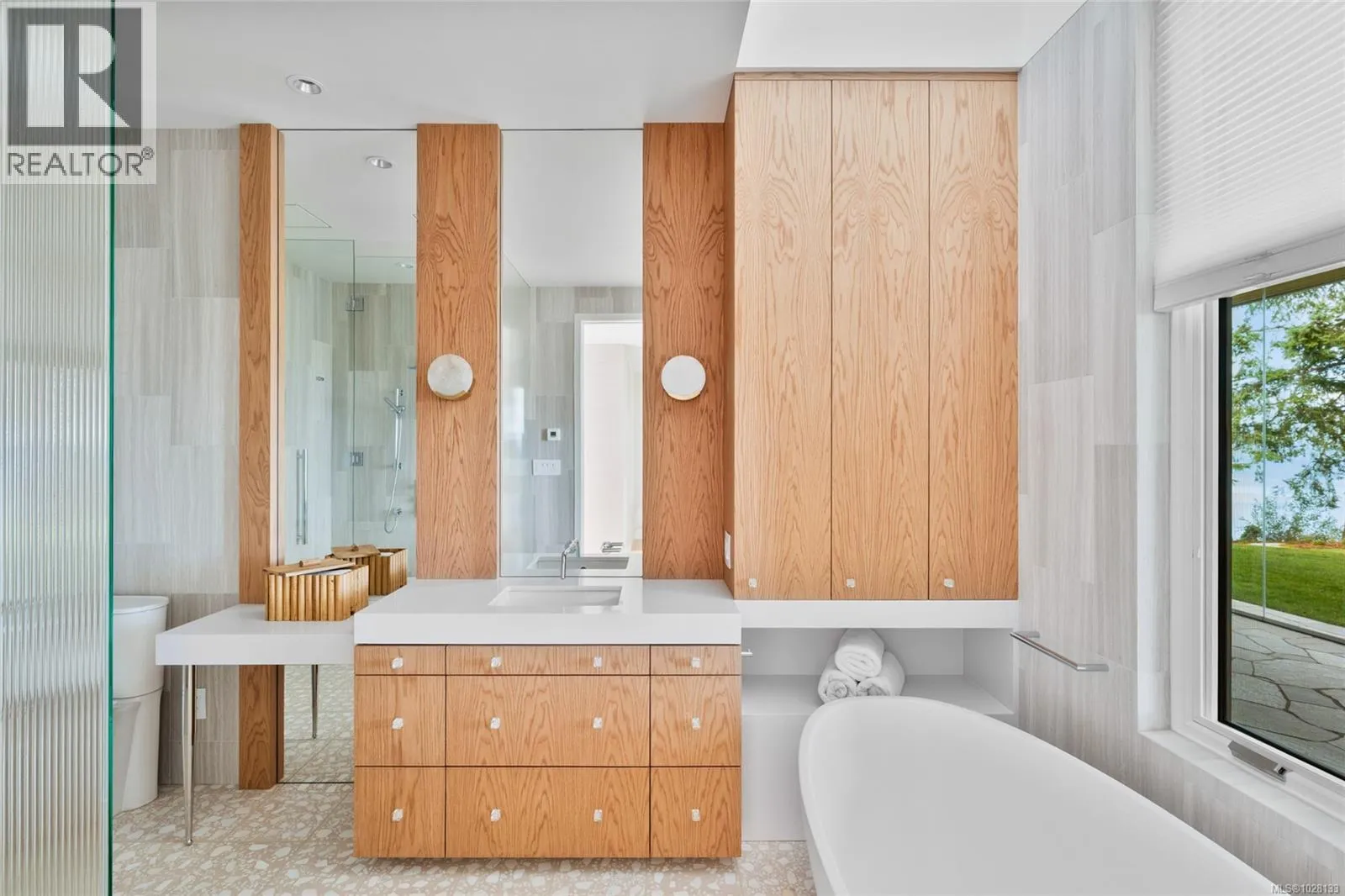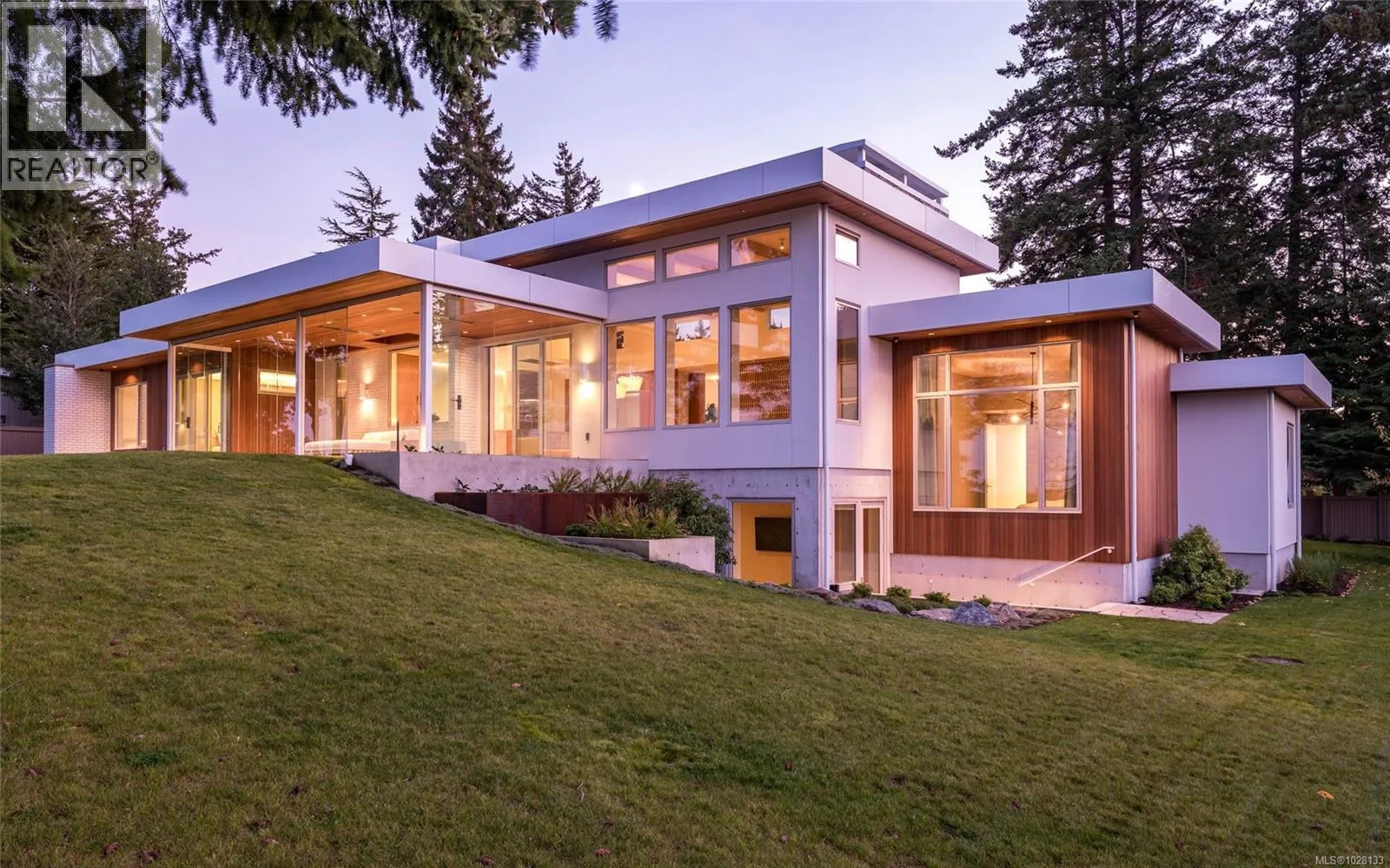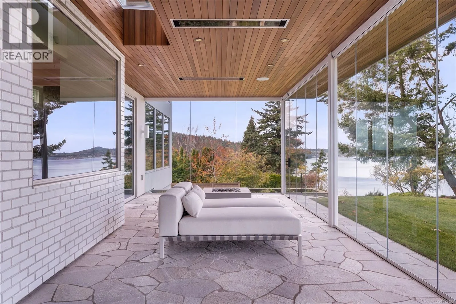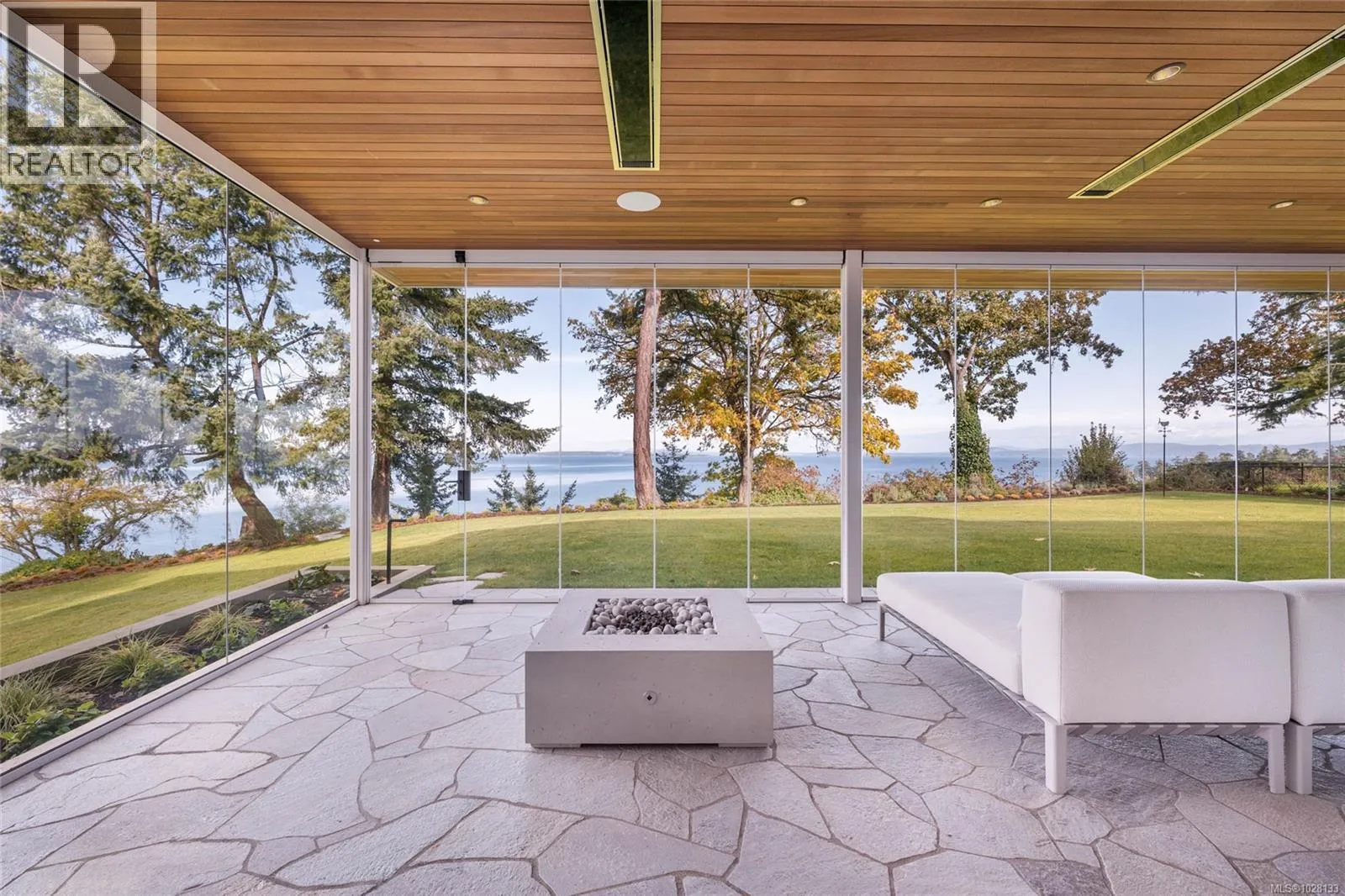 Welcome to Celosia. A sophisticated oceanfront home built by GT Mann from a Ryan Hoyt design. Jenny Martin Design rounds out the award-winning team to create a living experience worthy of its breathtaking oceanfront setting. Timeless Mid-Century Modern elements blend seamlessly with comfortable elegance & a hint of Italian flair. At the heart of the home lies a stunning kitchen featuring custom oak cabinetry, Taj Mahal quartzite counters & island with Palladiana marble flooring made onsite from a local quarryâtruly one of a kind. Premium Wolf, Sub-Zero & Dacor appliances elevate the culinary experience. The living room is bathed in light from clerestory windows & anchored by a striking stone fireplace with custom surround. Hidden behind bespoke millwork is a charming record nicheâone of many thoughtful details. Two primary suites capture sweeping ocean views, each a private retreat with warm oak flooring, imported Japanese wallpaper & spa-inspired ensuites. A guest wing with two additional bedrooms & a 5-piece bathroom offers the same comfort & luxury. The lower level is designed for wellness & play, featuring a gym area, workspace & games area. An elevator serves all levels, ensuring accessibility. Perhaps the most impressive feature is the four-season patio, wrapped in a Lumon glass system with frameless, retractable floor-to-ceiling panels. Flagstone floors, a gas fire table, radiant ceiling heat & a concealed hood fan make this the perfect year-round gathering space. Step outside to beautifully landscaped grounds & take in panoramic ocean vistasâa front-row seat to natureâs rhythm, framed by the homeâs coastal serenity. Located near UVic, schools & shopping, this oceanfront residence is one of Victoriaâs truly exceptional properties, offering a lifestyle & setting that are simply unmatched. Celosia is more than a home; it is a work of artâmeticulously built for those who value design integrity, luxury materials & timeless architecture. (id:27476)