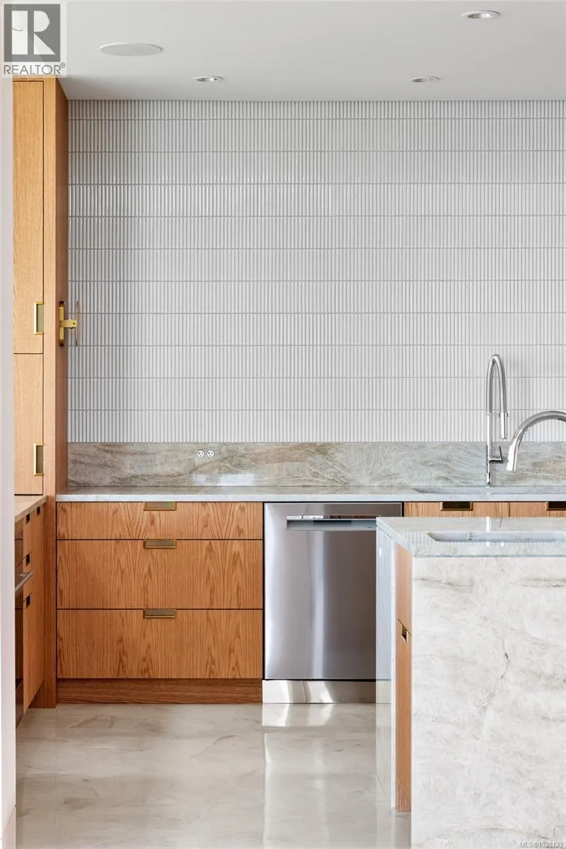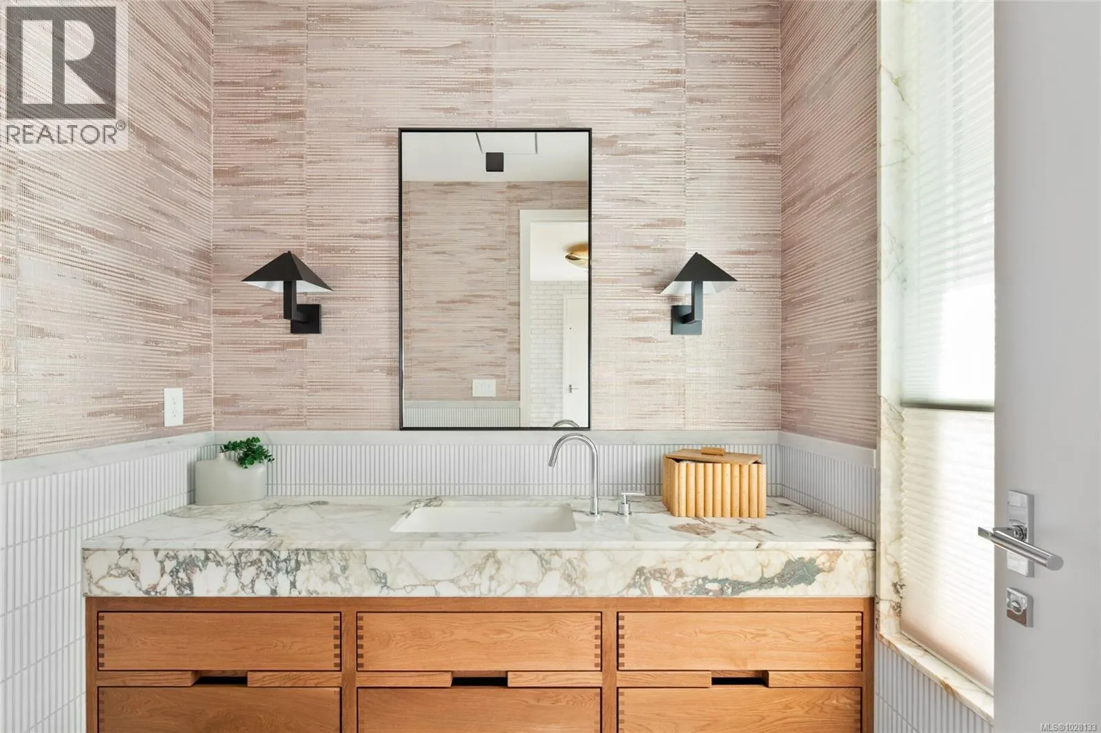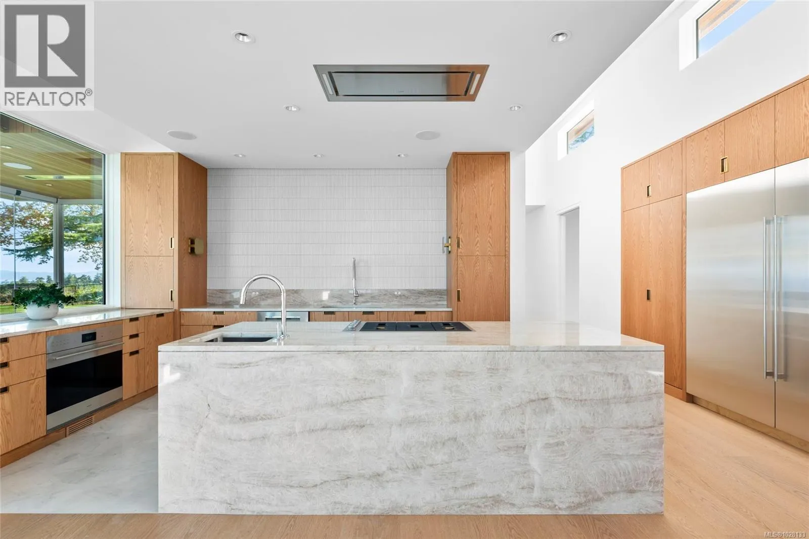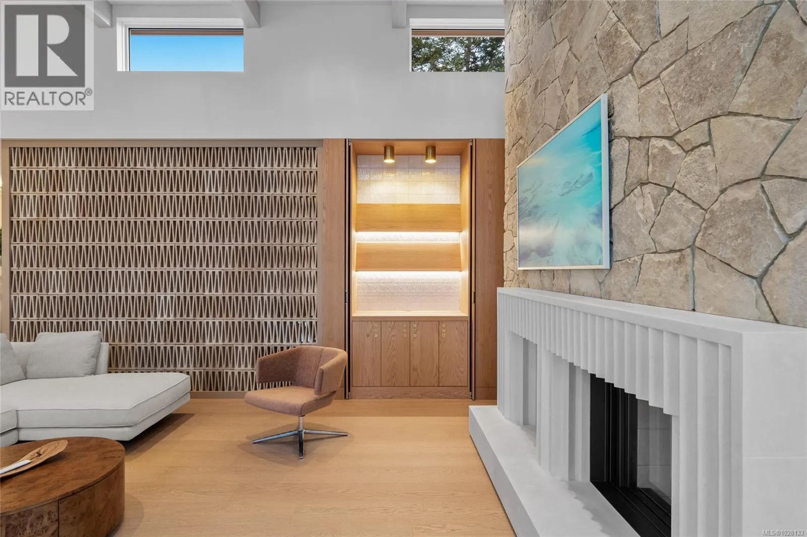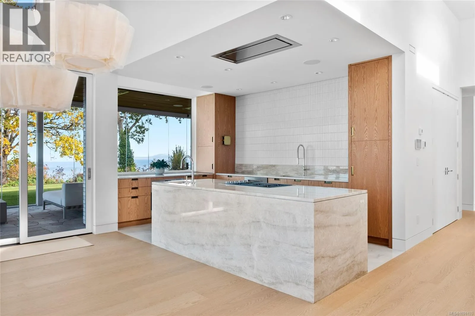 Welcome to Celosia. A sophisticated oceanfront home built by GT Mann from a Ryan Hoyt design. Jenny Martin Design rounds out the award-winning team to create a living experience worthy of its breathtaking oceanfront setting. Timeless Mid-Century Modern elements blend seamlessly with comfortable elegance & a hint of Italian flair. At the heart of the home lies a stunning kitchen featuring custom oak cabinetry, Taj Mahal quartzite counters & island with Palladiana marble flooring made onsite from a local quarryâtruly one of a kind. Premium Wolf, Sub-Zero & Dacor appliances elevate the culinary experience. The living room is bathed in light from clerestory windows & anchored by a striking stone fireplace with custom surround. Hidden behind bespoke millwork is a charming record nicheâone of many thoughtful details. Two primary suites capture sweeping ocean views, each a private retreat with warm oak flooring, imported Japanese wallpaper & spa-inspired ensuites. A guest wing with two additional bedrooms & a 5-piece bathroom offers the same comfort & luxury. The lower level is designed for wellness & play, featuring a gym area, workspace & games area. An elevator serves all levels, ensuring accessibility. Perhaps the most impressive feature is the four-season patio, wrapped in a Lumon glass system with frameless, retractable floor-to-ceiling panels. Flagstone floors, a gas fire table, radiant ceiling heat & a concealed hood fan make this the perfect year-round gathering space. Step outside to beautifully landscaped grounds & take in panoramic ocean vistasâa front-row seat to natureâs rhythm, framed by the homeâs coastal serenity. Located near UVic, schools & shopping, this oceanfront residence is one of Victoriaâs truly exceptional properties, offering a lifestyle & setting that are simply unmatched. Celosia is more than a home; it is a work of artâmeticulously built for those who value design integrity, luxury materials & timeless architecture. (id:27476)
