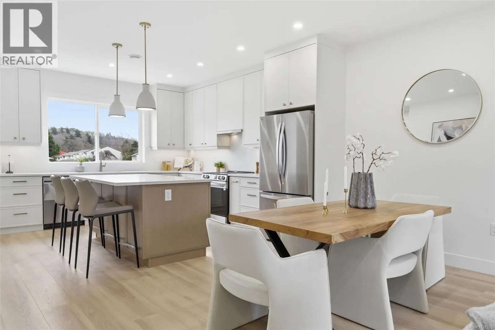 Discover modern living at 621 Broadway Street. These beautifully designed townhomes offer almost 1,700 sq ft of thoughtfully planned living space with four bedrooms and four bathrooms, creating the perfect blend of comfort, functionality, and modern design. The bright open concept main level features designer finishes, warm wood tones, and elegant black and gold accents that create a welcoming and stylish atmosphere. The kitchen is designed for both everyday living and entertaining, complete with quartz countertops, a large island, and sleek modern cabinetry. Upstairs you will find spacious bedrooms including a beautiful primary suite with a walk in closet and a stylish ensuite featuring modern tilework and wood vanities. Each home includes a fully fenced private backyard, ideal for relaxing, entertaining, or providing a safe outdoor space for pets. Additional features include energy efficient heat pumps for heating and cooling, EV charging capability, and a generous driveway area that allows vehicles to comfortably enter and exit the property. The development also includes shared green space for families and pets. Conveniently located close to schools, transit routes, parks, and just minutes from downtown Victoria, these homes also qualify for the New Construction Property Transfer Tax Grant and may qualify for the First Time Homebuyer GST Rebate. (id:27476)