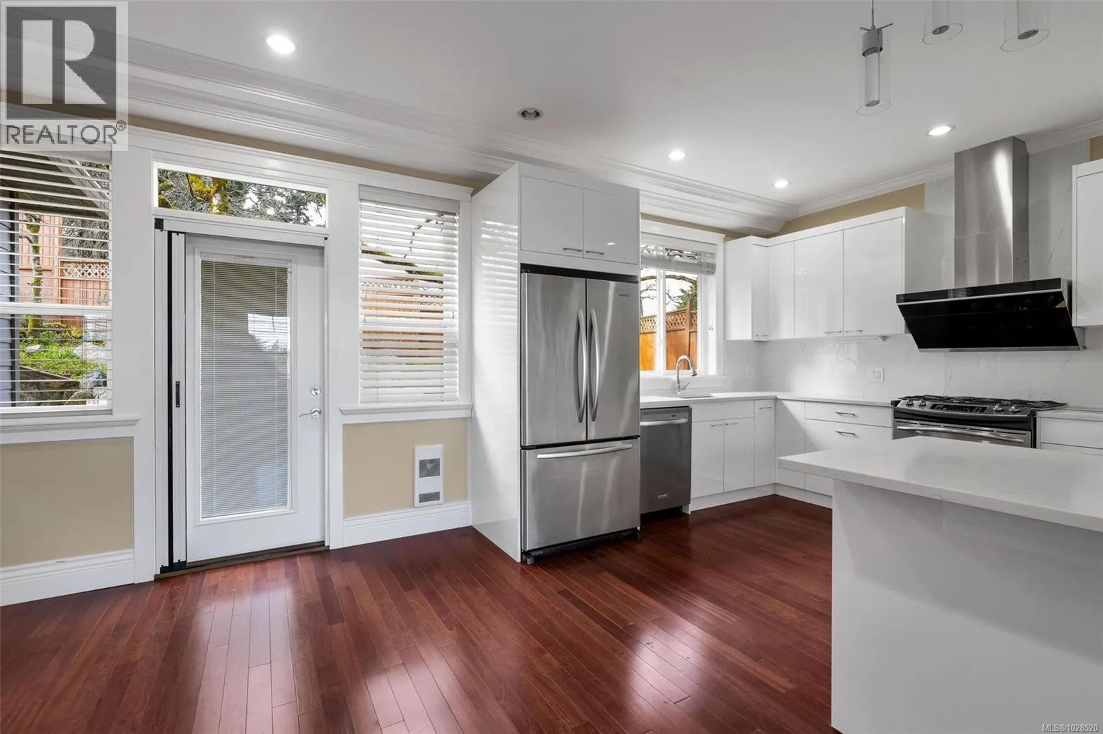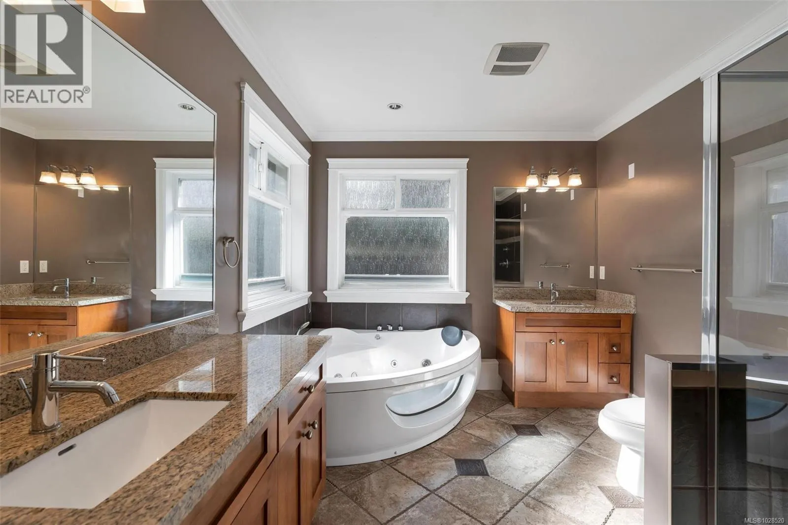 Exceptional three-level home offering over 3,100 sq ft of well-designed living space, blending comfort and versatility. The main level features generous principal rooms ideal for everyday living and entertaining, plus a dedicated home office/den. The kitchen was updated in 2021 with new cabinetry and appliances, opening to the breakfast area and family room. Two gas fireplaces add warmth and charm. Upstairs offers three spacious bedrooms, including a primary suite with a spa-inspired ensuite featuring heated tile floors and a soaker tub. The upper level was updated in 2021 with new flooring. A fully self-contained two-bedroom lower-level suite provides excellent flexibility for extended family or mortgage helper potential. Located on a quiet cul-de-sac in desirable Cedar Hill, this home includes a double garage, expansive patio, natural gas heating with radiant floor comfort, and a low $35/month Bare Land Strata fee â a rare opportunity in Saanich East. (id:27476)