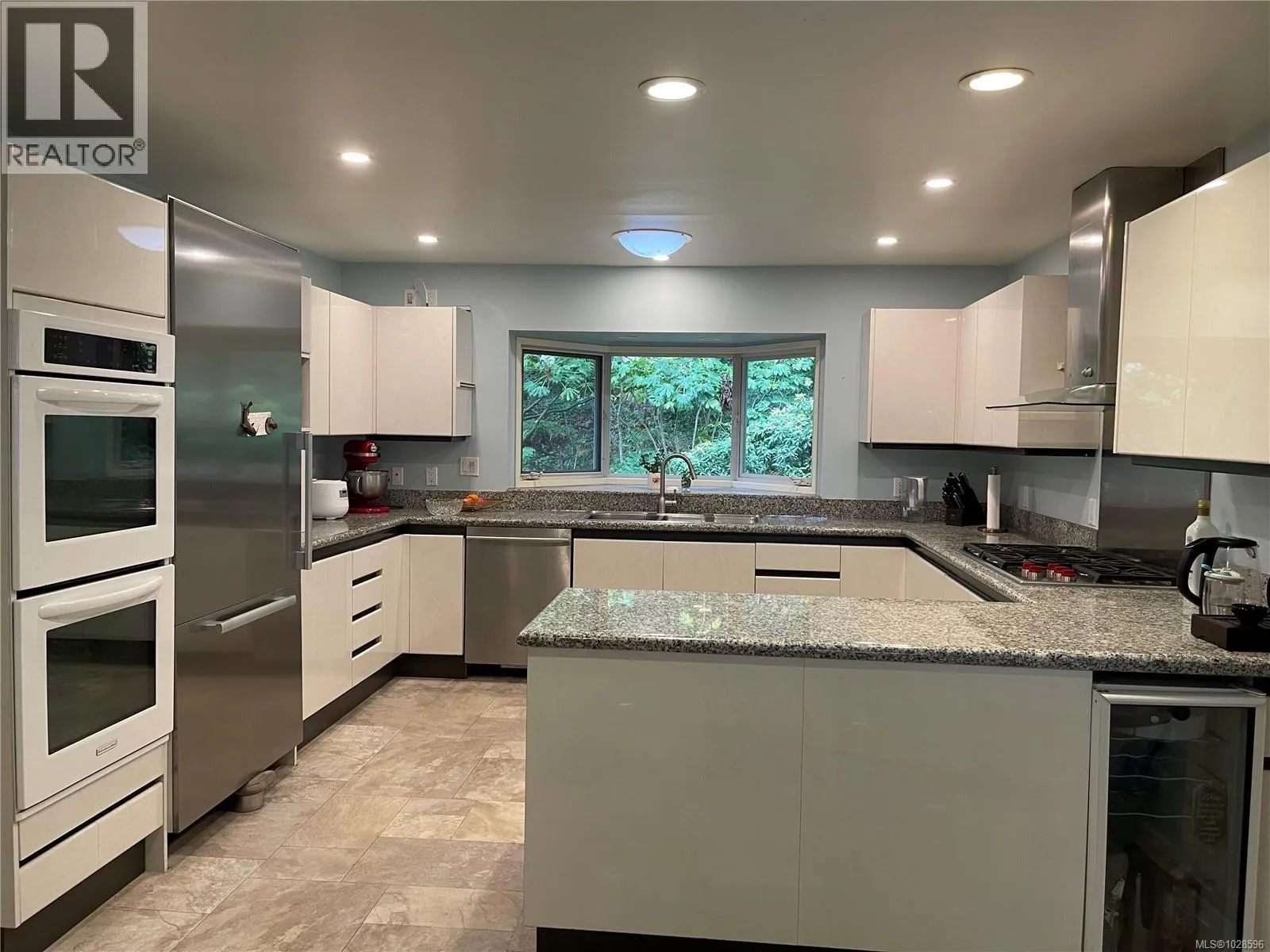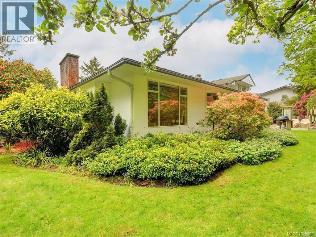 Welcome home to Cadboro Bay Village and Gyro Park. Perched on quiet cul-de-sac road, this family home features ocean panorama & picturesque sunrises from its entrance, primary bedroom with 4pc spa-inspired ensuite, & most impressively from the top floor Family Flex/Bedroom. Further enjoy a book & water views in the east-facing living room & extended solarium. The living area entertains a warm gas fireplace after a meal in the formal dining room, bathed in natural sunlight with large floor to ceiling windows that face the garden. Staged up to 4 Bedrooms + Studio with 3 Baths across 3660 sf. The Cookâs Kitchen features a Wolf Range, Miele Fridge, double Kitchen Aid ovens & a Bosch dishwasher. Additional features include a huge workshop, wine cellar, & a garage. Home to several UVic professors, Bermuda Pl. is coveted for adjoining Mystic Vale Park. The yards are studiously landscaped with fruiting trees & a tasteful garden surrounding a private family patio & grassy area for pet lovers. (id:27476)