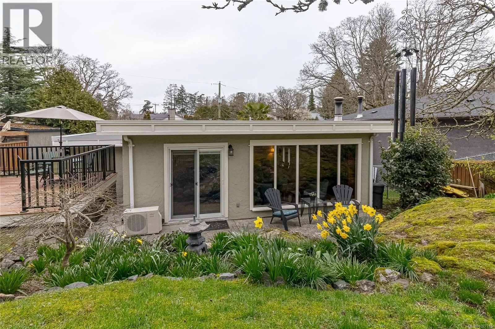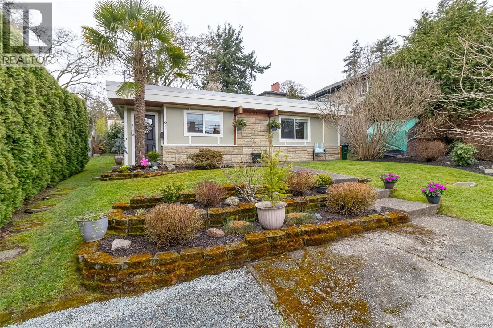 New Price! Turnkey mid-century home in the desirable Strawberry Vale area! This beautifully renovated property features a stunning skylit kitchen with granite countertops, stainless steel appliances, soft-close cabinetry, and a spacious pantry. The spa-inspired bathroom offers a walk-in shower and relaxing soaker tub. The primary bedroom includes a feature wall, wall-to-wall closets, and space for a king bed. Enjoy year-round comfort with a ductless mini-split heat pump for heating and cooling plus a cozy wood-burning fireplace in the living room. Step outside to a large south-facing deck overlooking a peaceful backyard with mature landscaping, blooming spring bulbs, and a tree swing. The driveway accommodates multiple vehicles or a small trailer. Thoughtful updates throughout the home include refreshed interior finishes, updated flooring and newer hot water tank. Steps to South Valley Park scenic trails and close to Panama Flats, Colquitz Creek Trail. New roof and skylight in 2025. (id:27476)