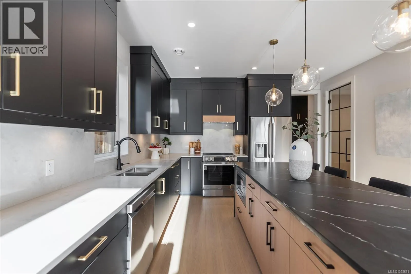 Last available unit! Welcome to this sophisticated, boutique development in a central, convenient location perfect for everyday life! No details overlooked in this collection of 4 newly built homes complete with designer finishes, superior craftsmanship & high end materials. As you walk in you will be impressed with the dedicated mud-room style entrance with built in bench, & abundance of storage for kids & pets. The custom designed kitchen rivals that of any single family home with a huge waterfall island, plenty of storage, quality appliances, & aesthetic colour scheme plus a dedicated home office space located off the kitchen with a beautiful glass door! The living & dining area are also finished anything but ''Spec'' with stylish feature walls, oversize doors, high ceilings on both floors, built in fireplace & contemporary chandelier. Upstairs there are 3 generously sized bedrooms including a primary with walk in closet & luxurious ensuite. Walk to uptown shopping centre! (id:27476)