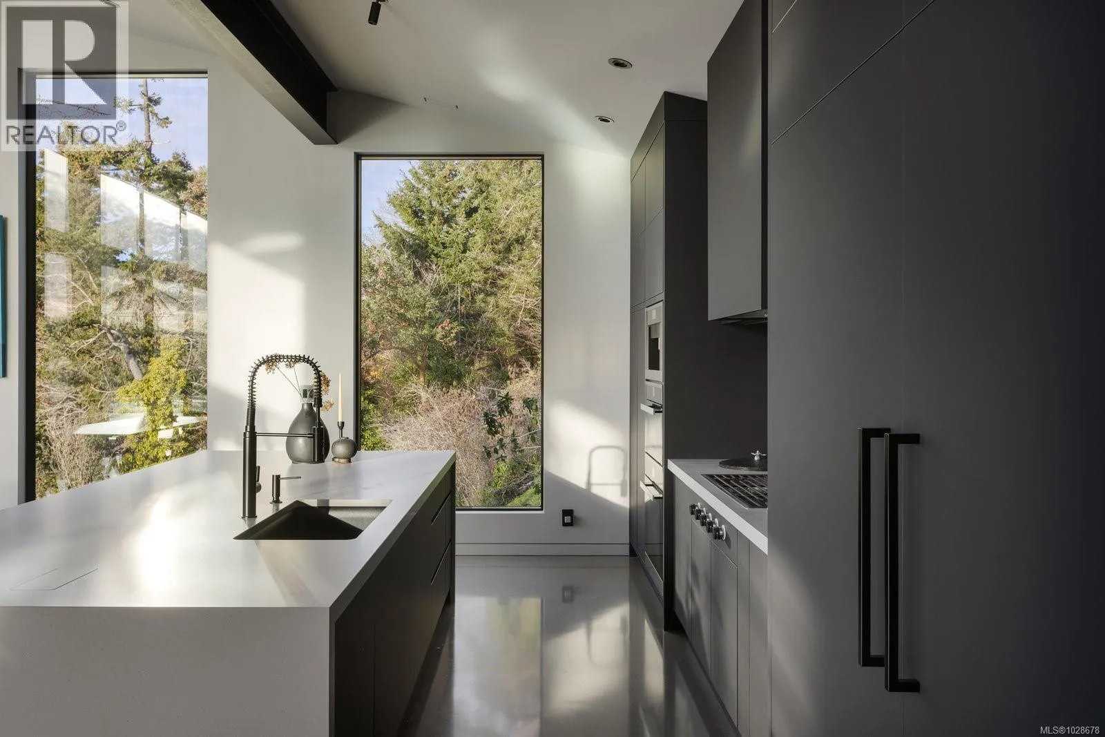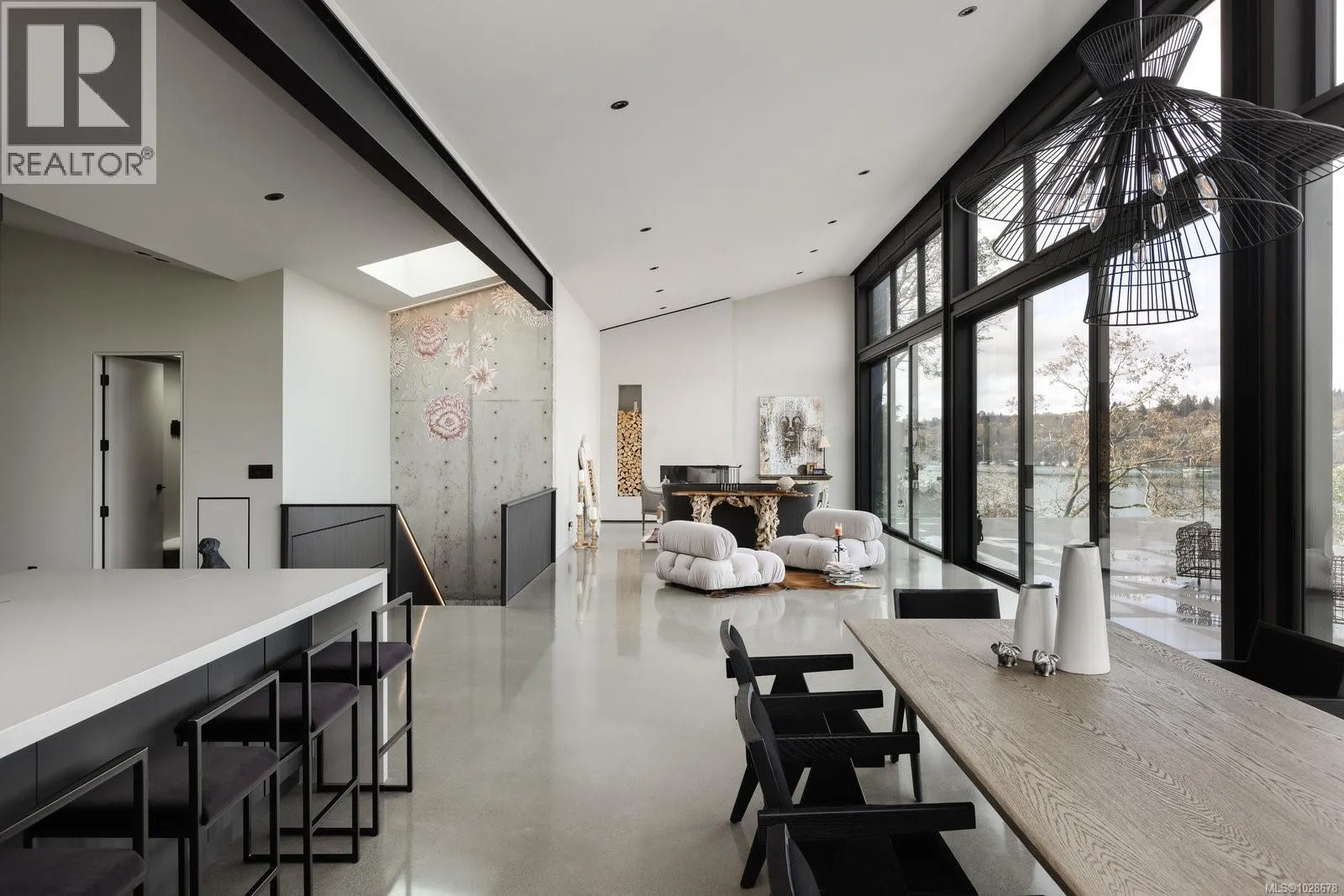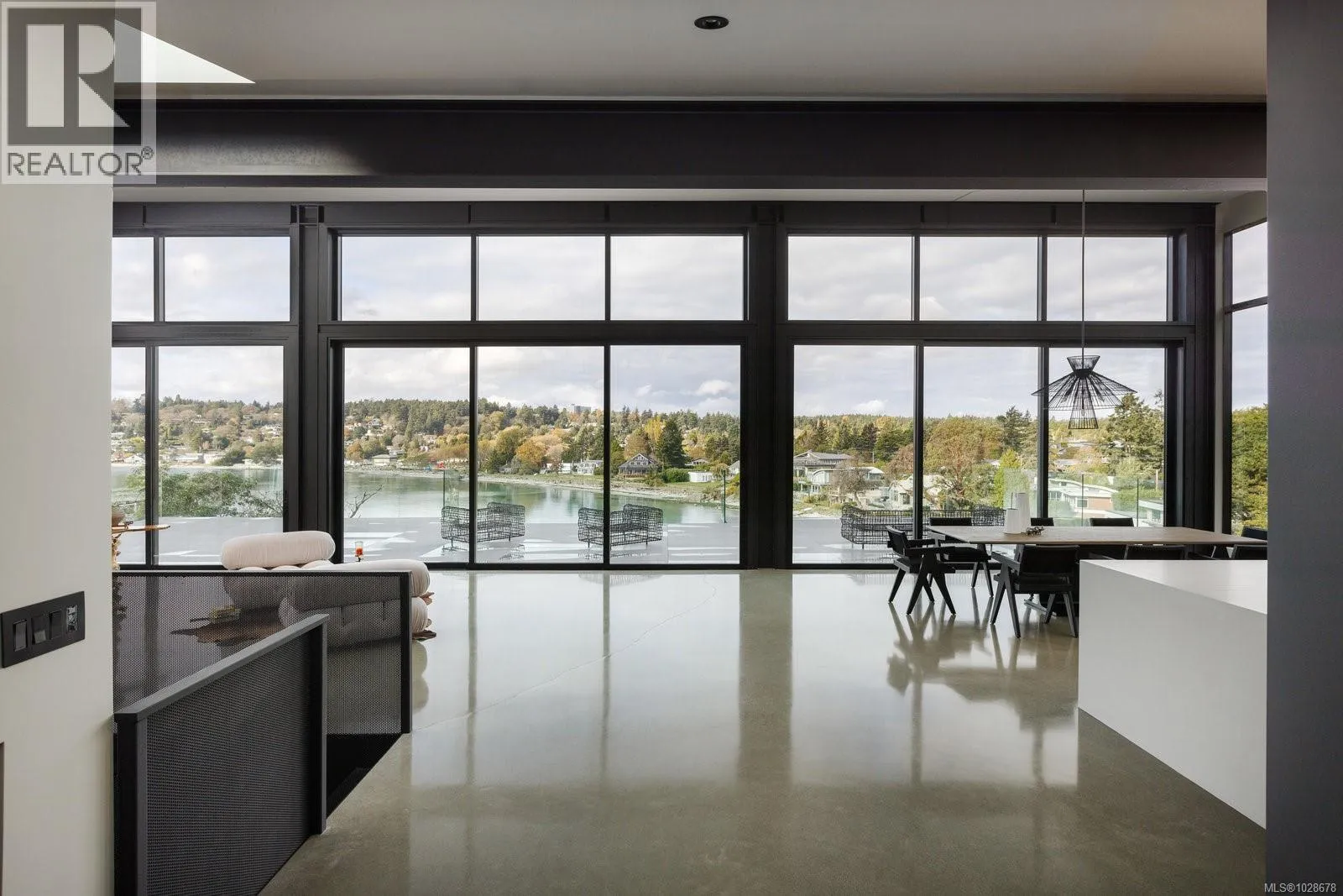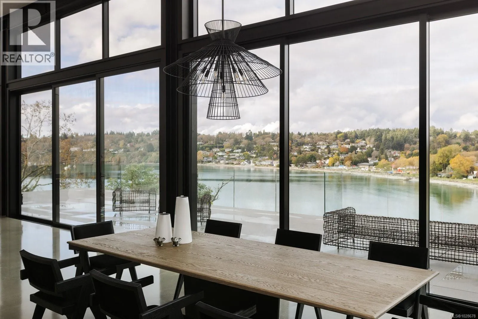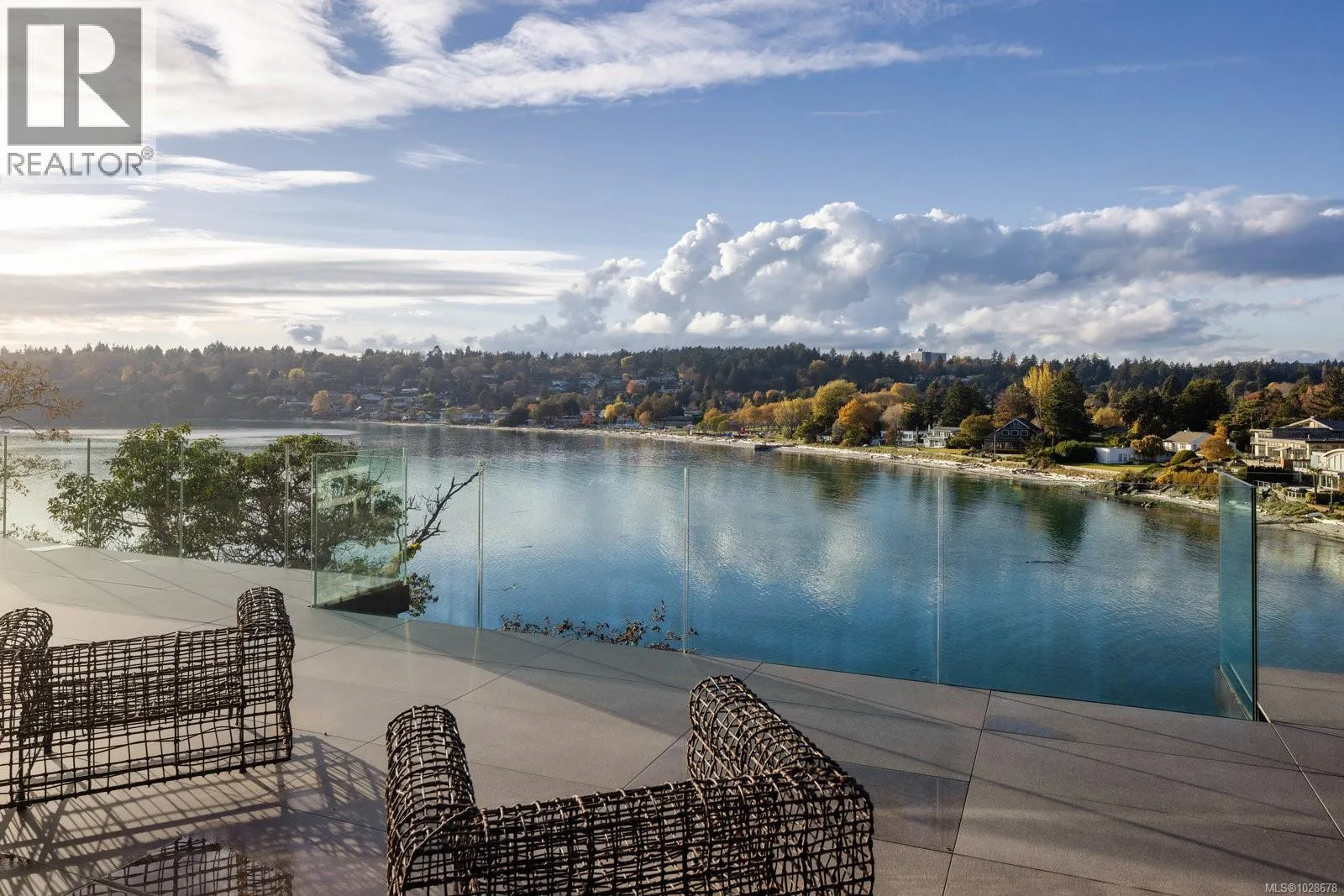 Perched on a rare & private 0.6-acre ocean-view estate in prestigious Ten Mile Point, 2701 Sea View is a striking modern residence by Horizon Pacific, designed to capture breathtaking coastal panoramas. Completed in 2021, the home combines modern architecture w/ exceptional craftsmanship and modern luxury. Equipped w/ an integrated smart home system, allowing remote control of entry, lighting, blinds, and appliances. The main level opens into an expansive living room, elegant dining area, and chef-inspired kitchen, perfectly positioned to frame sweeping ocean views & fill the home with natural light. Floor-to-ceiling glazing enhances the connection between the interior spaces & the surrounding landscape, creating a seamless indoor-outdoor living experience. A private office provides a quiet space for work or study. A dramatic custom steel staircase leads to the lower level, where the primary suite offers a serene escape. This level also features 3 additional bedrooms, each with an ensuite, a central family lounge ideal for gatherings, and a world-class theatre room perfect for movie nights. The home also offers potential for an elevator, providing flexibility for multigenerational living and long-term accessibility. Downstairs, a private studio with a full ensuite, separate address (2701B), and gas & plumbing in place for a kitchen offers flexibility for a guest suite, office, gym, creative studio or rental space. Outdoors, the expansive terrace provides an exceptional setting for entertaining while enjoying ocean vistas. The side garden offers ample space to create a private resort-style retreat, with room for a pool, outdoor kitchen or lounge area. A pathway leading to the shoreline offers access for kayaks, perfect for the West Coast lifestyle. Surrounded by coastal trails & just minutes from Cadboro Bay Village & Gyro Beach, this remarkable Ten Mile Point estate blends privacy, architecture & coastal beauty in one of Victoria's most coveted seaside communities. (id:27476)