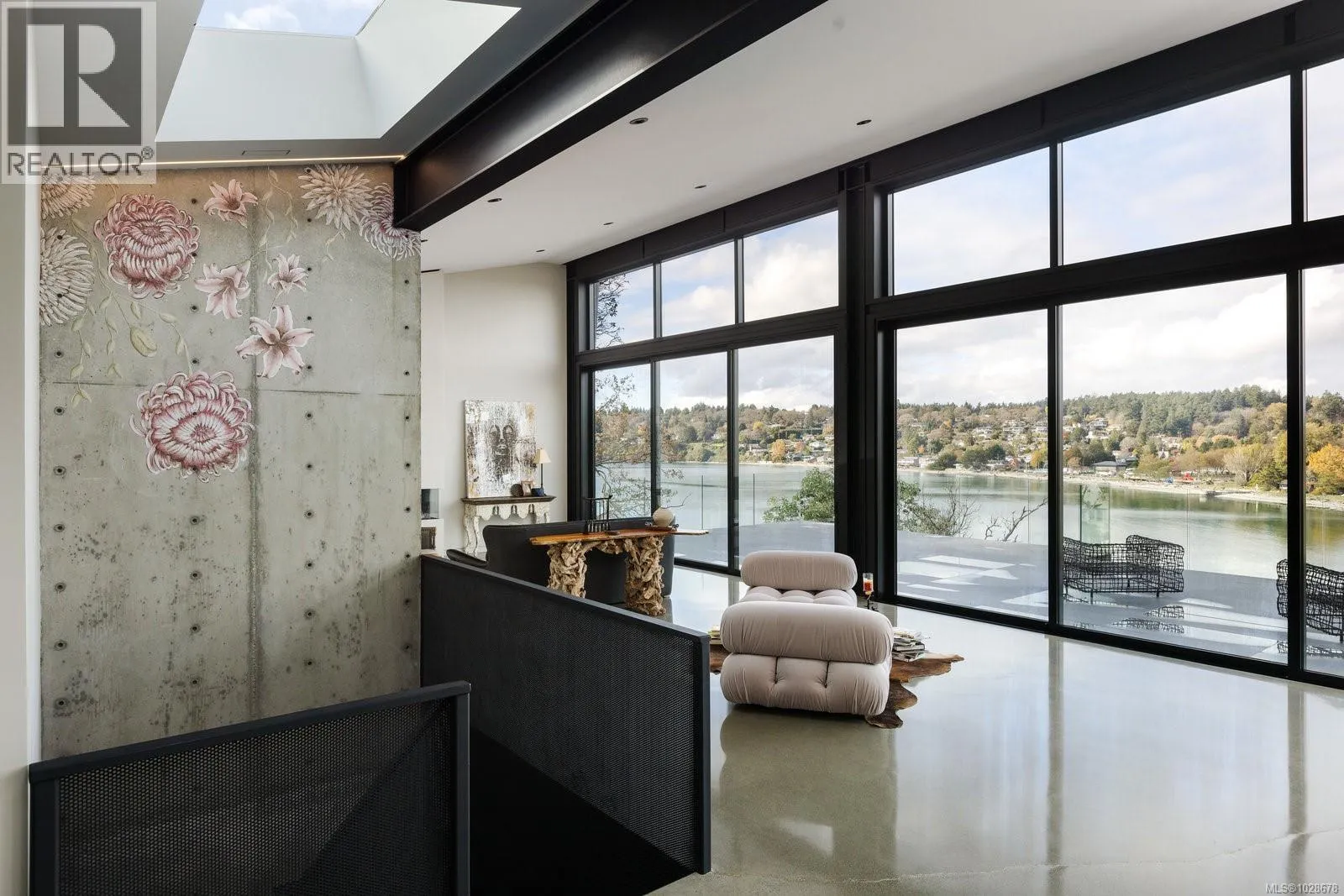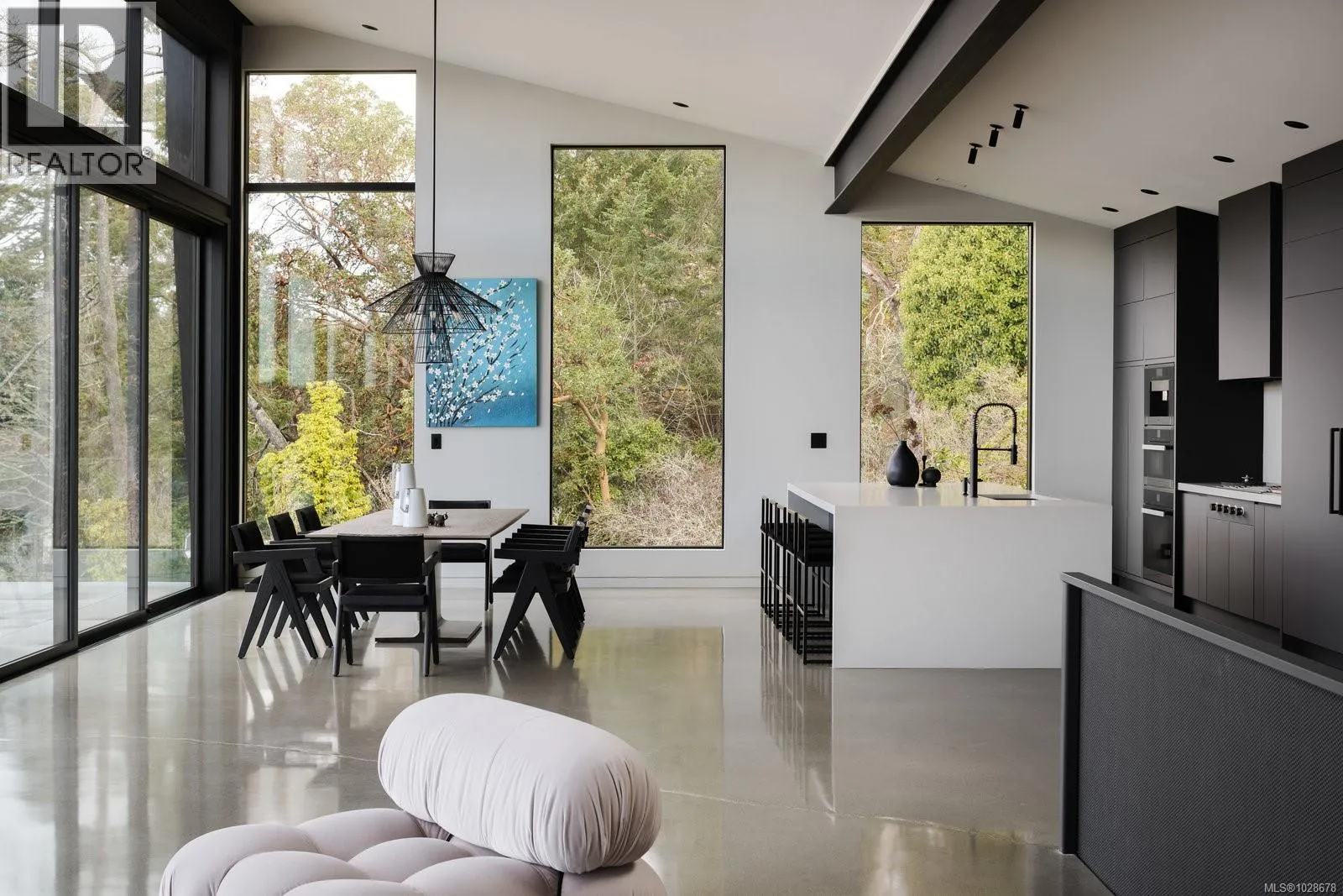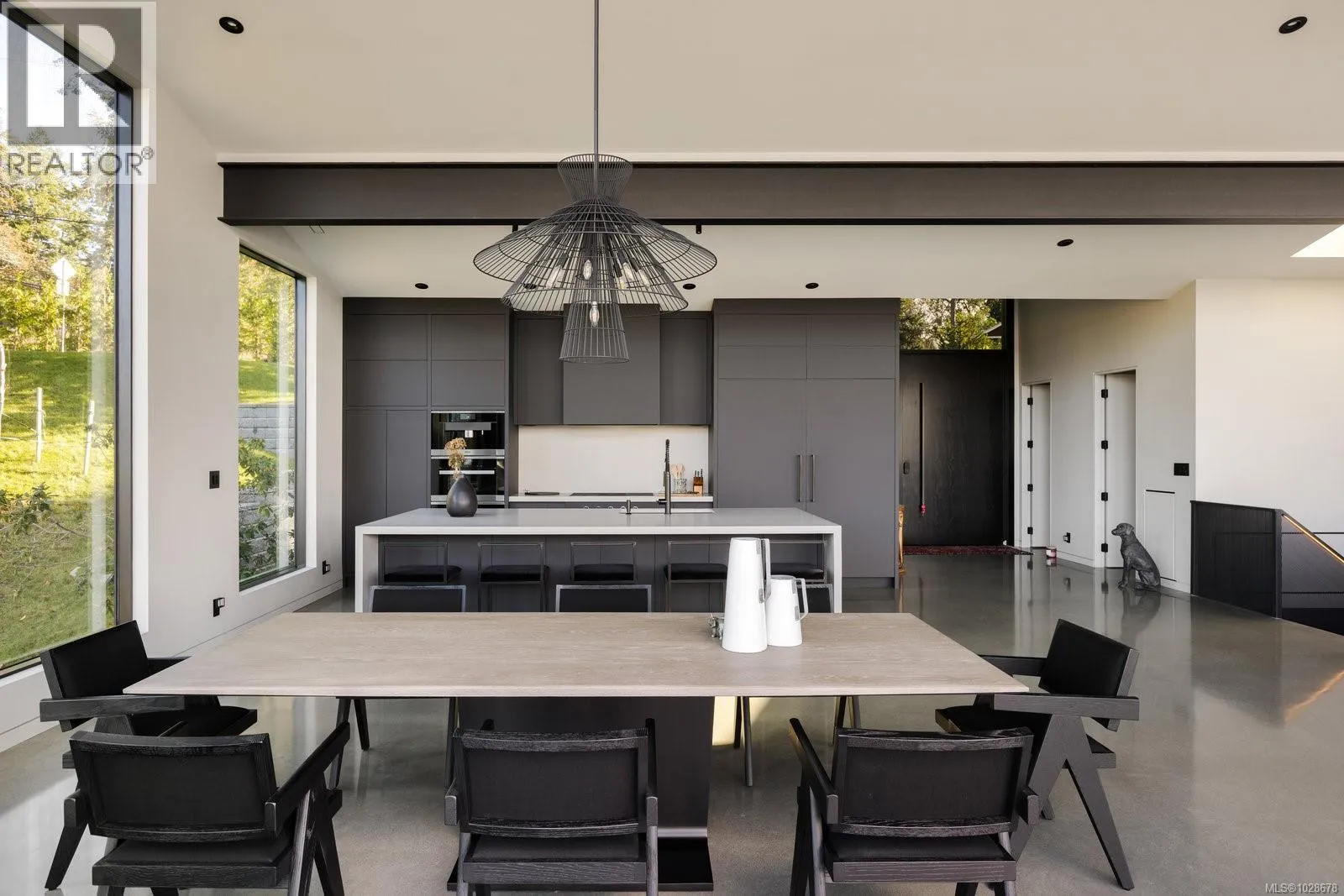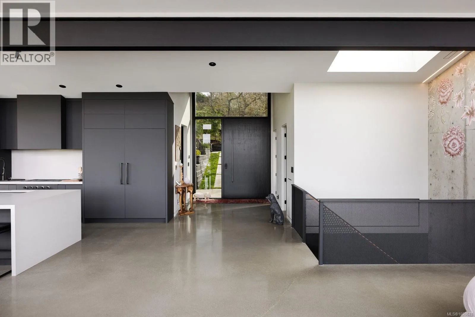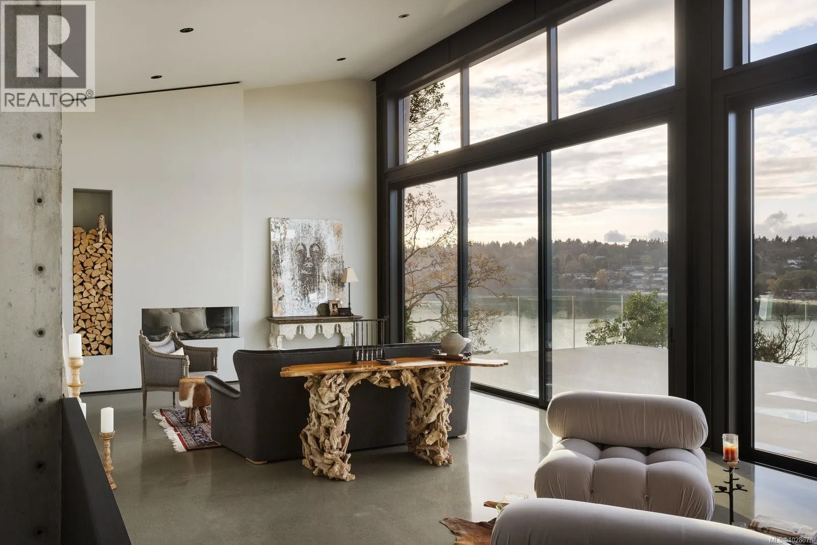 Perched on a rare & private 0.6-acre ocean-view estate in prestigious Ten Mile Point, 2701 Sea View is a striking modern residence by Horizon Pacific, designed to capture breathtaking coastal panoramas. Completed in 2021, the home combines modern architecture w/ exceptional craftsmanship and modern luxury. Equipped w/ an integrated smart home system, allowing remote control of entry, lighting, blinds, and appliances. The main level opens into an expansive living room, elegant dining area, and chef-inspired kitchen, perfectly positioned to frame sweeping ocean views & fill the home with natural light. Floor-to-ceiling glazing enhances the connection between the interior spaces & the surrounding landscape, creating a seamless indoor-outdoor living experience. A private office provides a quiet space for work or study. A dramatic custom steel staircase leads to the lower level, where the primary suite offers a serene escape. This level also features 3 additional bedrooms, each with an ensuite, a central family lounge ideal for gatherings, and a world-class theatre room perfect for movie nights. The home also offers potential for an elevator, providing flexibility for multigenerational living and long-term accessibility. Downstairs, a private studio with a full ensuite, separate address (2701B), and gas & plumbing in place for a kitchen offers flexibility for a guest suite, office, gym, creative studio or rental space. Outdoors, the expansive terrace provides an exceptional setting for entertaining while enjoying ocean vistas. The side garden offers ample space to create a private resort-style retreat, with room for a pool, outdoor kitchen or lounge area. A pathway leading to the shoreline offers access for kayaks, perfect for the West Coast lifestyle. Surrounded by coastal trails & just minutes from Cadboro Bay Village & Gyro Beach, this remarkable Ten Mile Point estate blends privacy, architecture & coastal beauty in one of Victoria's most coveted seaside communities. (id:27476)