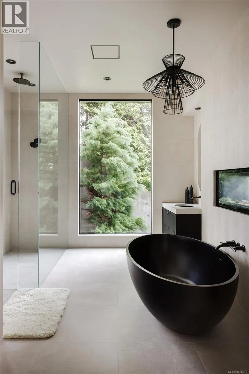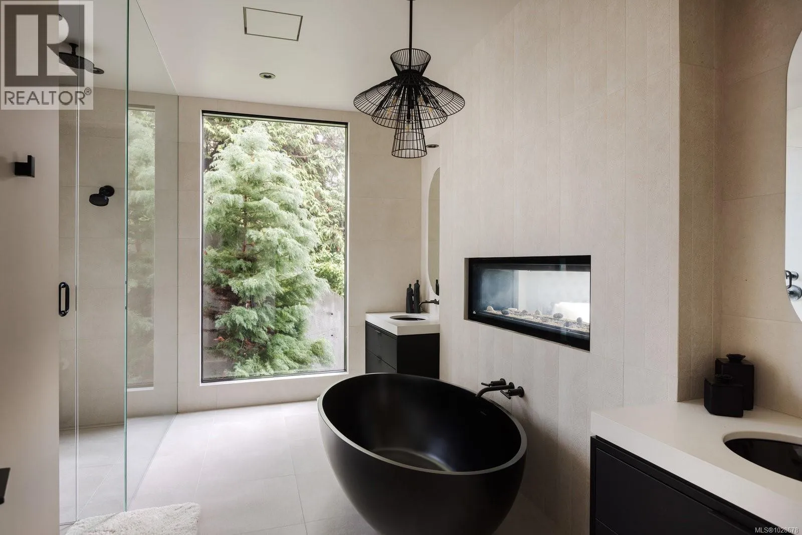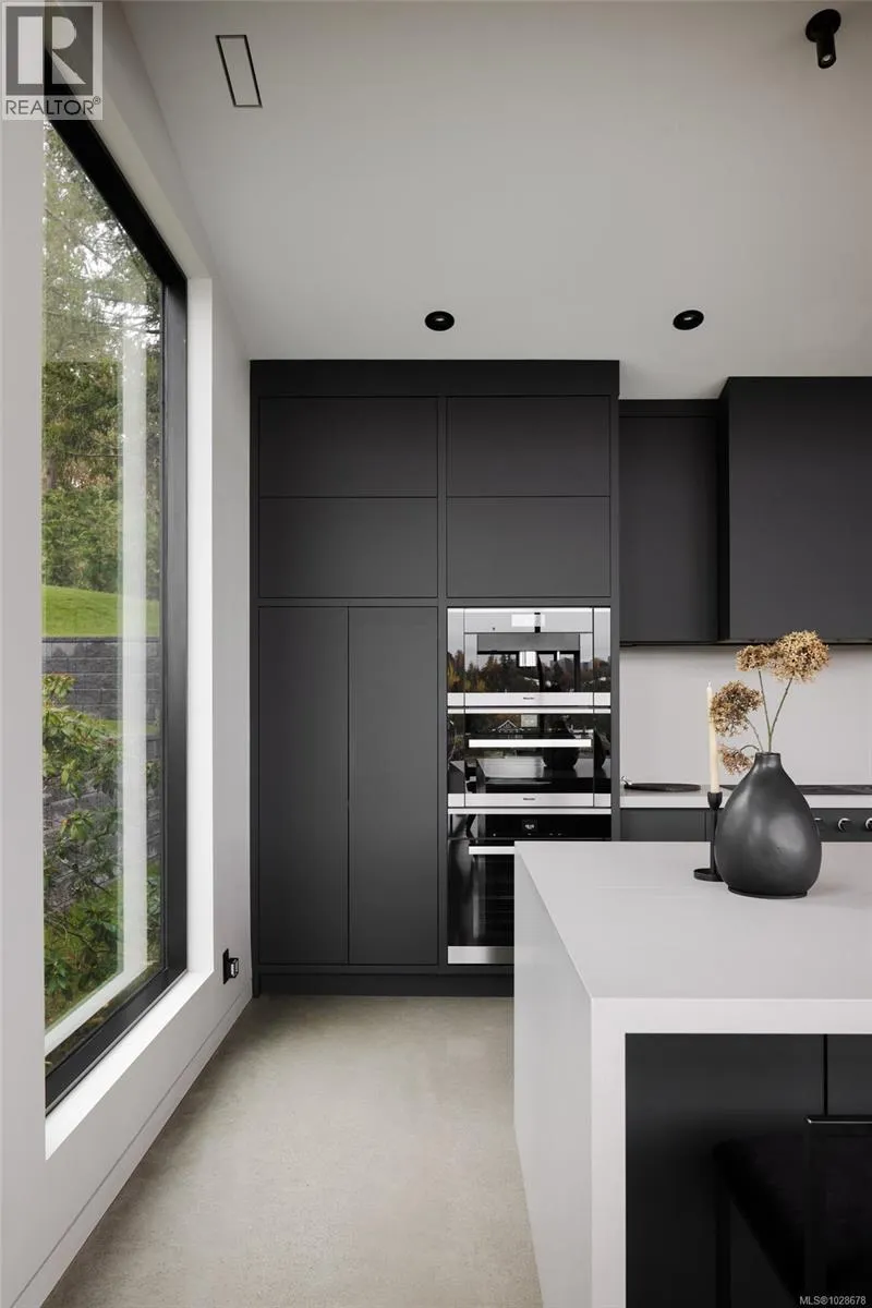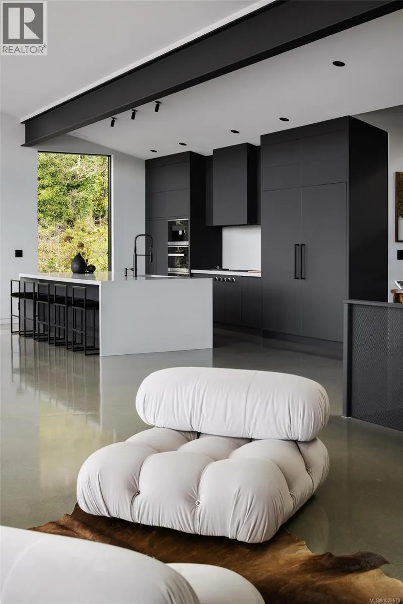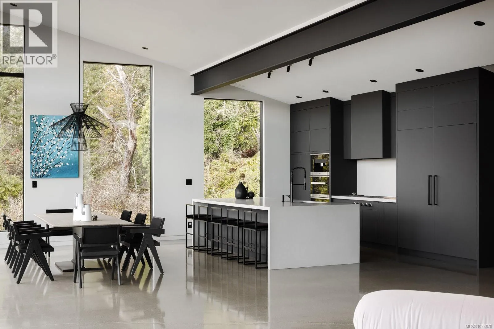 Perched on a rare & private 0.6-acre ocean-view estate in prestigious Ten Mile Point, 2701 Sea View is a striking modern residence by Horizon Pacific, designed to capture breathtaking coastal panoramas. Completed in 2021, the home combines modern architecture w/ exceptional craftsmanship and modern luxury. Equipped w/ an integrated smart home system, allowing remote control of entry, lighting, blinds, and appliances. The main level opens into an expansive living room, elegant dining area, and chef-inspired kitchen, perfectly positioned to frame sweeping ocean views & fill the home with natural light. Floor-to-ceiling glazing enhances the connection between the interior spaces & the surrounding landscape, creating a seamless indoor-outdoor living experience. A private office provides a quiet space for work or study. A dramatic custom steel staircase leads to the lower level, where the primary suite offers a serene escape. This level also features 3 additional bedrooms, each with an ensuite, a central family lounge ideal for gatherings, and a world-class theatre room perfect for movie nights. The home also offers potential for an elevator, providing flexibility for multigenerational living and long-term accessibility. Downstairs, a private studio with a full ensuite, separate address (2701B), and gas & plumbing in place for a kitchen offers flexibility for a guest suite, office, gym, creative studio or rental space. Outdoors, the expansive terrace provides an exceptional setting for entertaining while enjoying ocean vistas. The side garden offers ample space to create a private resort-style retreat, with room for a pool, outdoor kitchen or lounge area. A pathway leading to the shoreline offers access for kayaks, perfect for the West Coast lifestyle. Surrounded by coastal trails & just minutes from Cadboro Bay Village & Gyro Beach, this remarkable Ten Mile Point estate blends privacy, architecture & coastal beauty in one of Victoria's most coveted seaside communities. (id:27476)