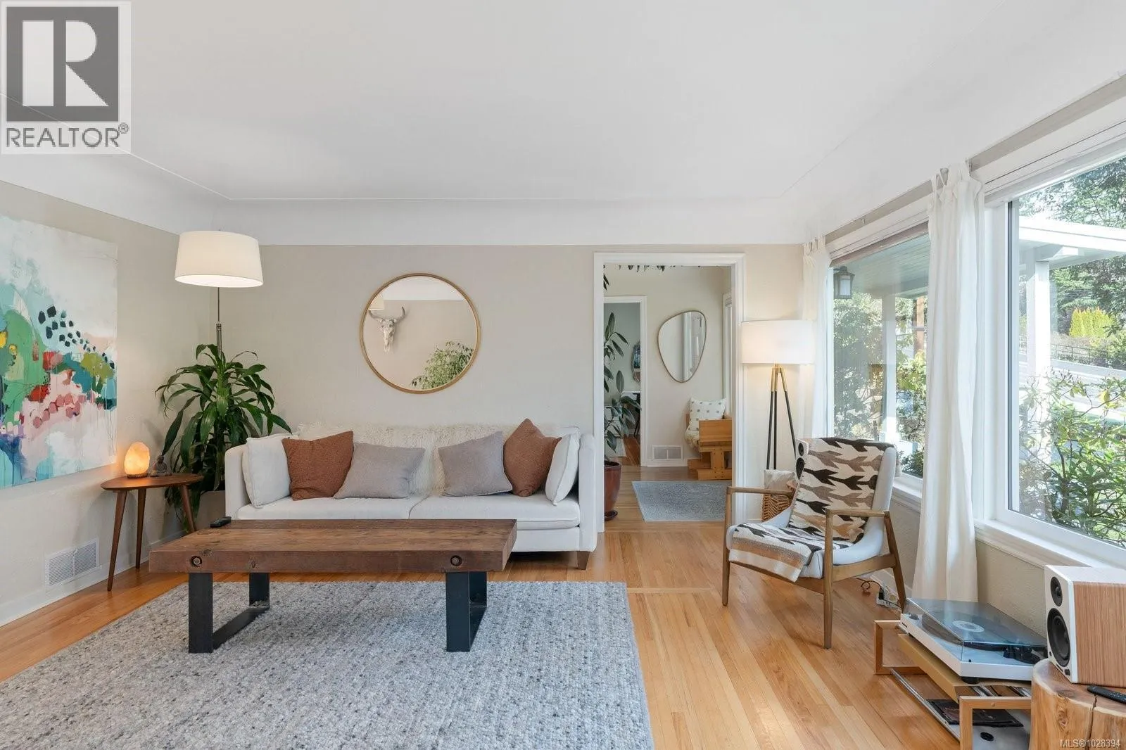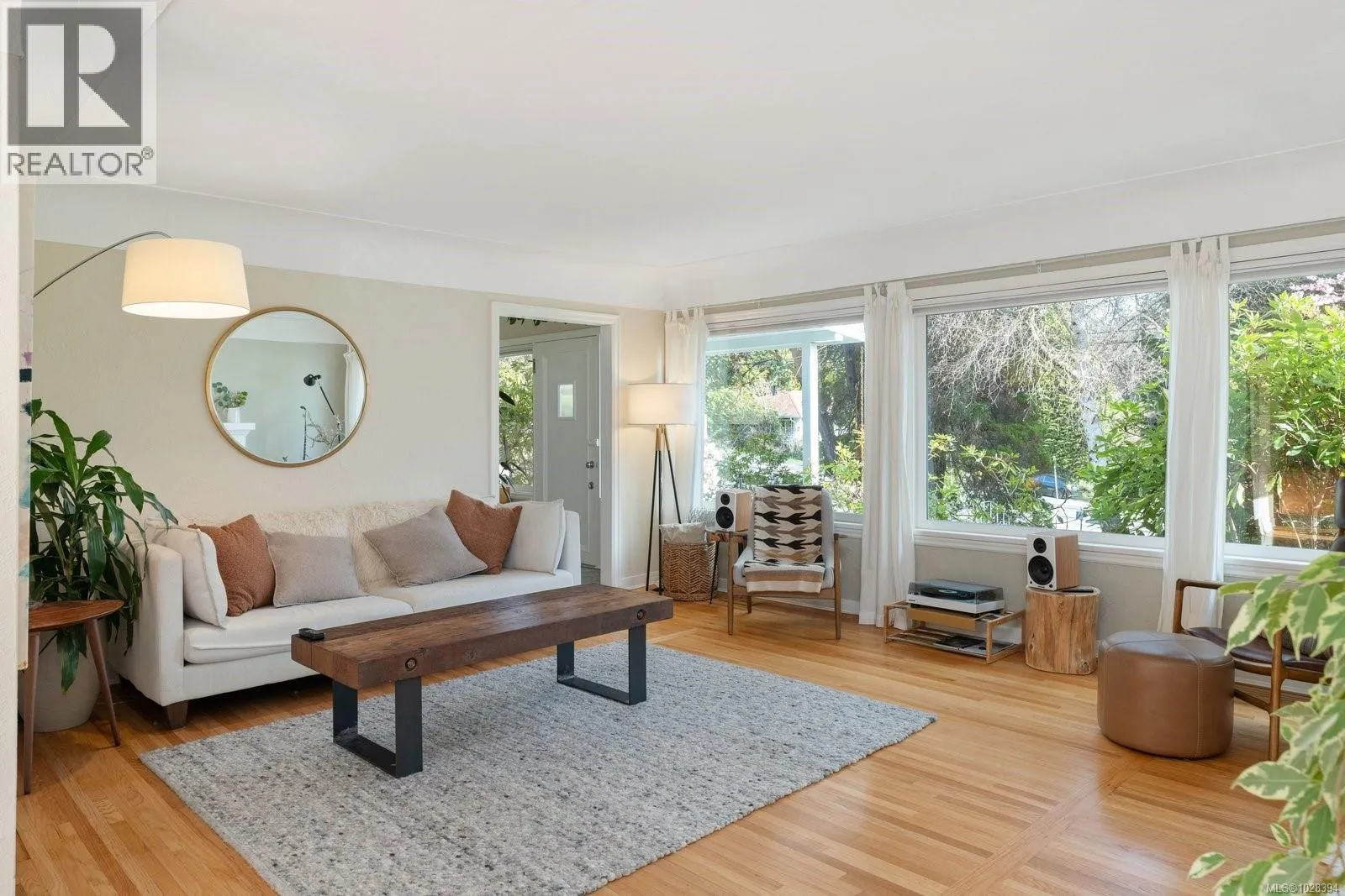 Perfectly positioned in one of Victoriaâs most coveted seaside communities, this meticulously maintained Cadboro Bay residence offers timeless elegance, abundant natural light, and an exceptional walkable lifestyle. Gleaming hardwood floors, classic coved ceilings, and expansive picture windows create a bright, welcoming ambiance throughout the main living areas. The beautifully renovated kitchen flows seamlessly into the formal living and dining rooms, where a cozy gas fireplace and oversized windows provide an inviting setting for both everyday living and entertaining. Designed for comfortable main-level living, the main floor features two bedrooms including the primary, along with a full bathroom. The lower level adds excellent flexibility with a third bedroom, spacious family room, second bathroom, and dedicated laundry areaâideal for guests, extended family, or additional living space. Mature landscaping surrounds the property, complemented by thoughtfully engineered retaining walls with integrated lighting that create a private and attractive outdoor setting. Located just steps from Cadboro Bay Village, Gyro Beach, parks, and the University of Victoria, this home offers a rare blend of tranquility, prestige, and convenience in one of Victoriaâs most desirable coastal neighbourhoods. (id:27476)