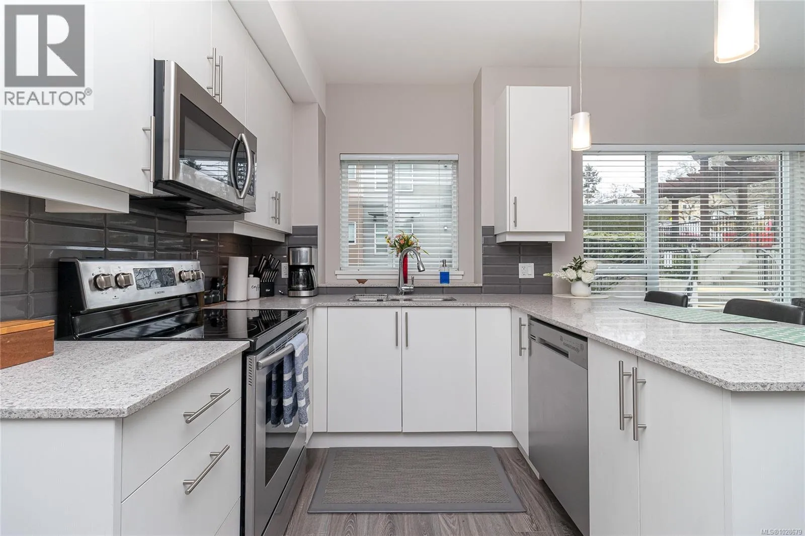 home to The Shire! Built in 2017 this beautiful 2 Bedroom / 2 bathroom corner unit is located on the 2nd floor. The unit offers a bright outlook over the courtyard, an open floor plan, gourmet kitchen with eating bar, and quality finishing throughout. Features include quartz countertops, high end flooring, stainless steel appliances, secure underground bike & vehicle parking, plus a storage locker. The central location is walking distance to parks, Mayfair Shopping Centre, grocery stores, and only a 5 minute drive to downtown Victoria. Pets are allowed, and enjoy BBQ's on your lovely deck. This unit is in excellent condition and is available for immediate possession! Don't wait, this property won't last long! (id:27476)