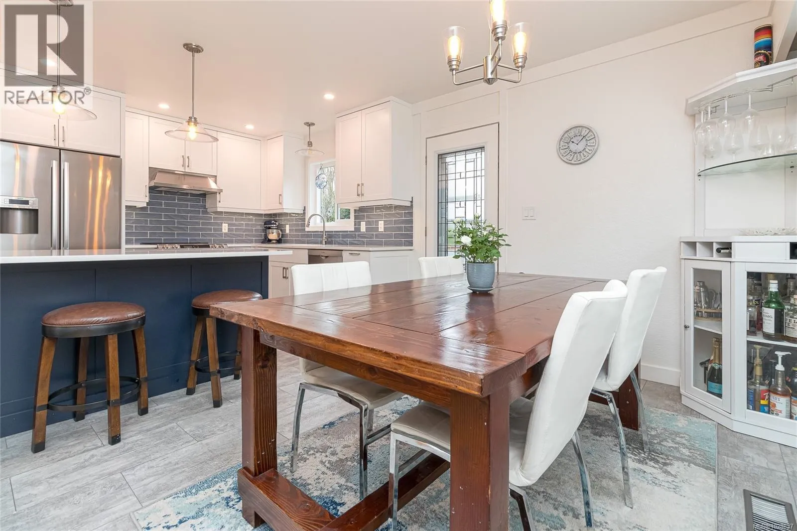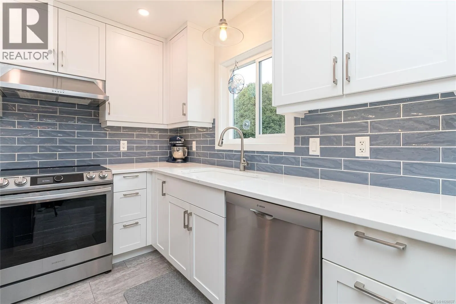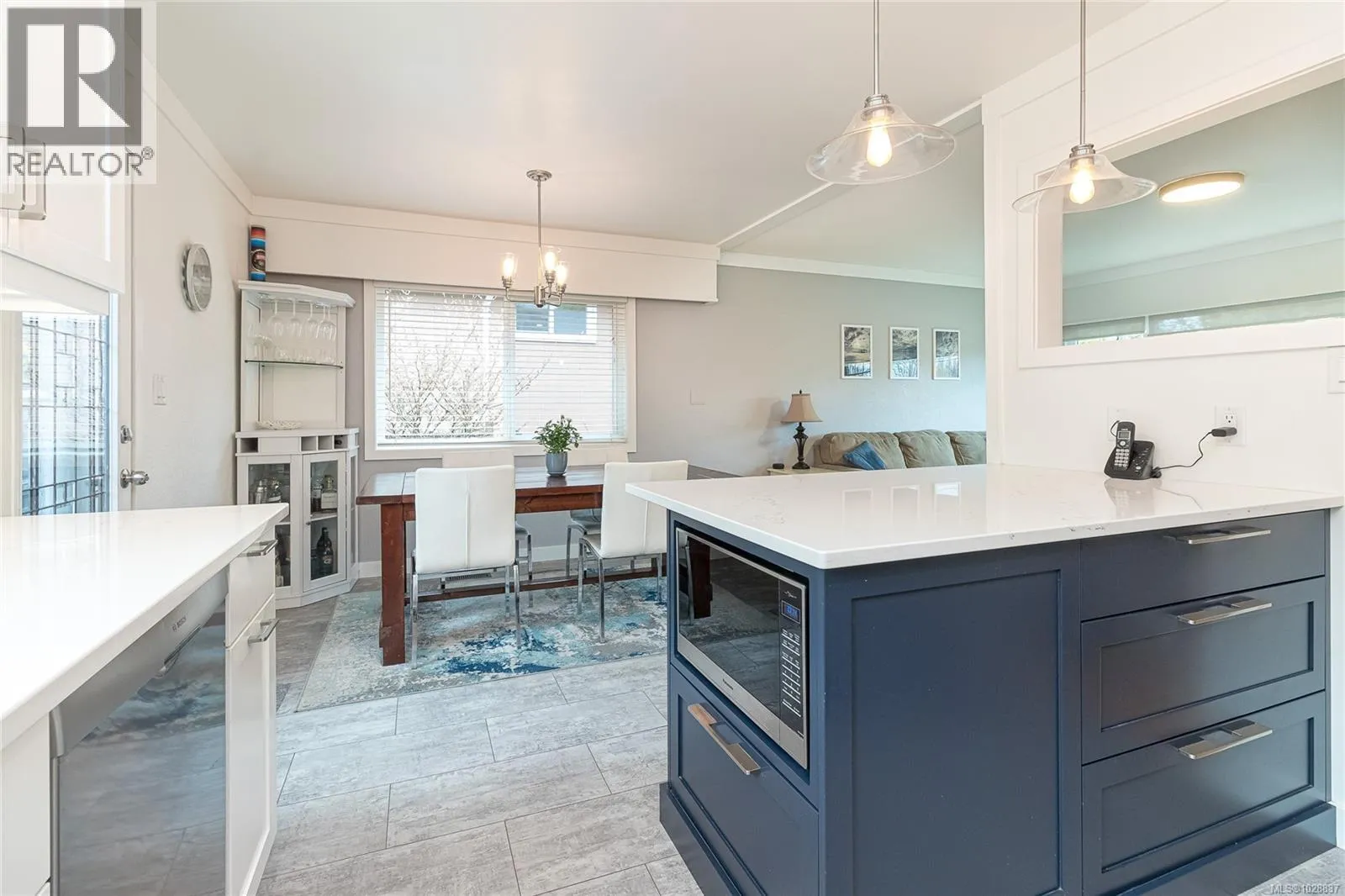 Neat as a pin and ready to move in! You're going to love this mid-century modern home, split level design. Situated in a lovely Saanich East neighbourhood, 3825 Kremlin boasts pride of ownership that's been lovingly maintained for many years. This bright open floor plan includes 3 bedrooms and 2 baths with many, many updates. The bright updated kitchen offer newer cabinets, quartz counters, stainless appliances and a handy breakfast bar overlooking dining and living areas. The cozy gas fireplace and beautiful hardwood floors make this 1650 sq. ft. home warm and inviting. Other updates include, windows, roof and a 2020 kitchen remodel. All this on a sunny 6400 sq. ft. lot with a lovely deck, patio and gardens in a superb location that is close to virtually every amenity including schools, parks, shopping and Uvic. Don't delay, this home awaits its new family for many more years of enjoyment. (id:27476)