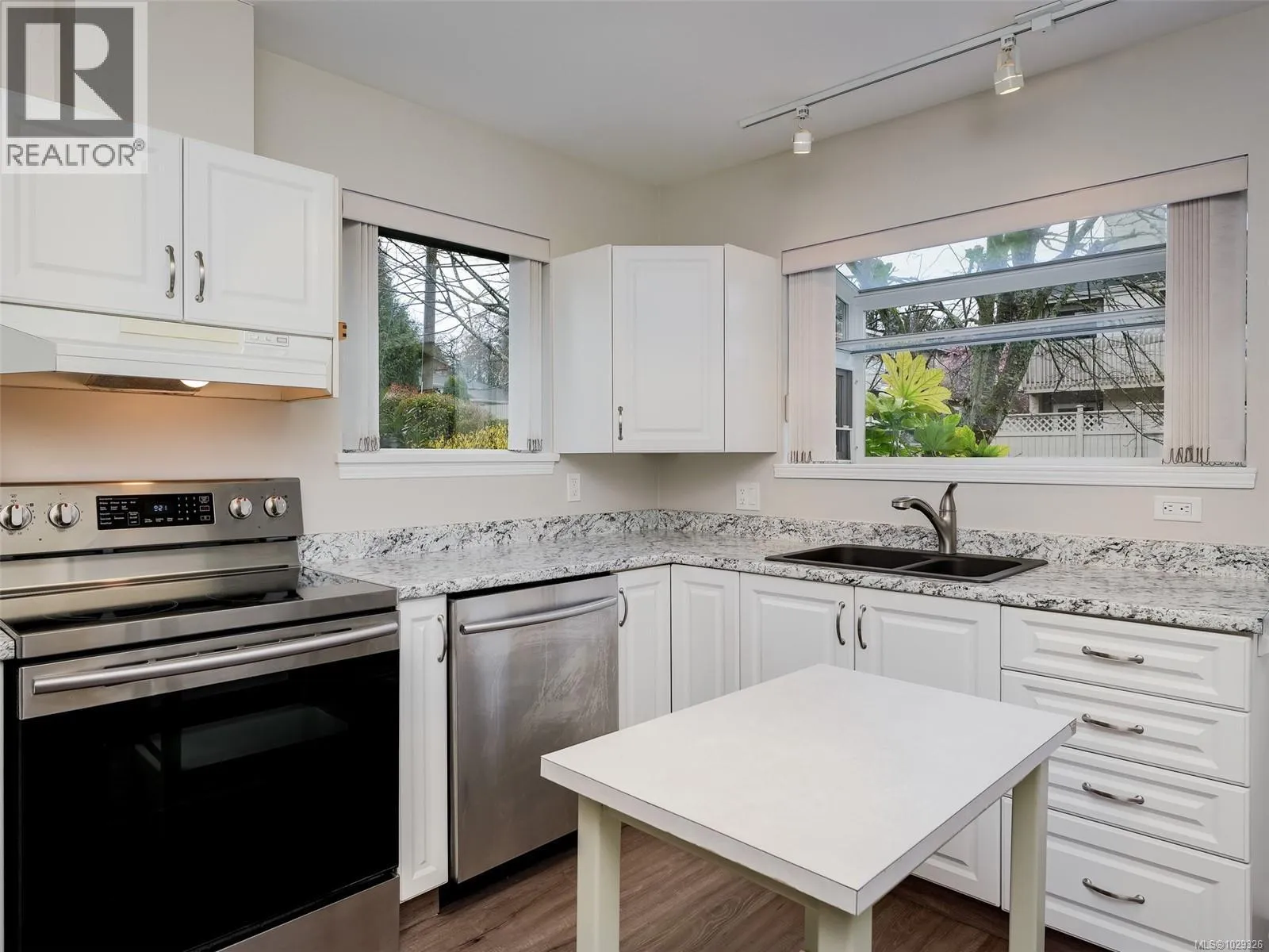 UPDATED RANCHER AT ROSEBANK GARDENS! Enjoy true one-level living with no-step entry in this well-run 55+ community. Bright & inviting 2 bed, 2 bath home with open living/dining space warmed by a new Valor gas fireplace and filled with natural light from skylights & west-facing windows. Kitchen features a greenhouse window & convenient stacking laundry. Spacious primary with vaulted ceilings, large closet, & a walk-in shower ensuite. Versatile 2nd bedroom includes a Murphy bed & built-in deskâideal for guests or office. Attached garage with storage shelving. Major updates include a two-zone heat pump, wide plank vinyl flooring throughout with no transitions to trip on, kitchen and bath counter tops, gas hot water tank & electric awning over one of two patios to stay cool in the sun. Walk to Tuscany Village with all the shopping amenities, Cedar Hill & Gordon Head Rec Centres a few blocks away & transit easily accessible. What a wonderful lifestyle! Extensive upgrade list available. (id:27476)