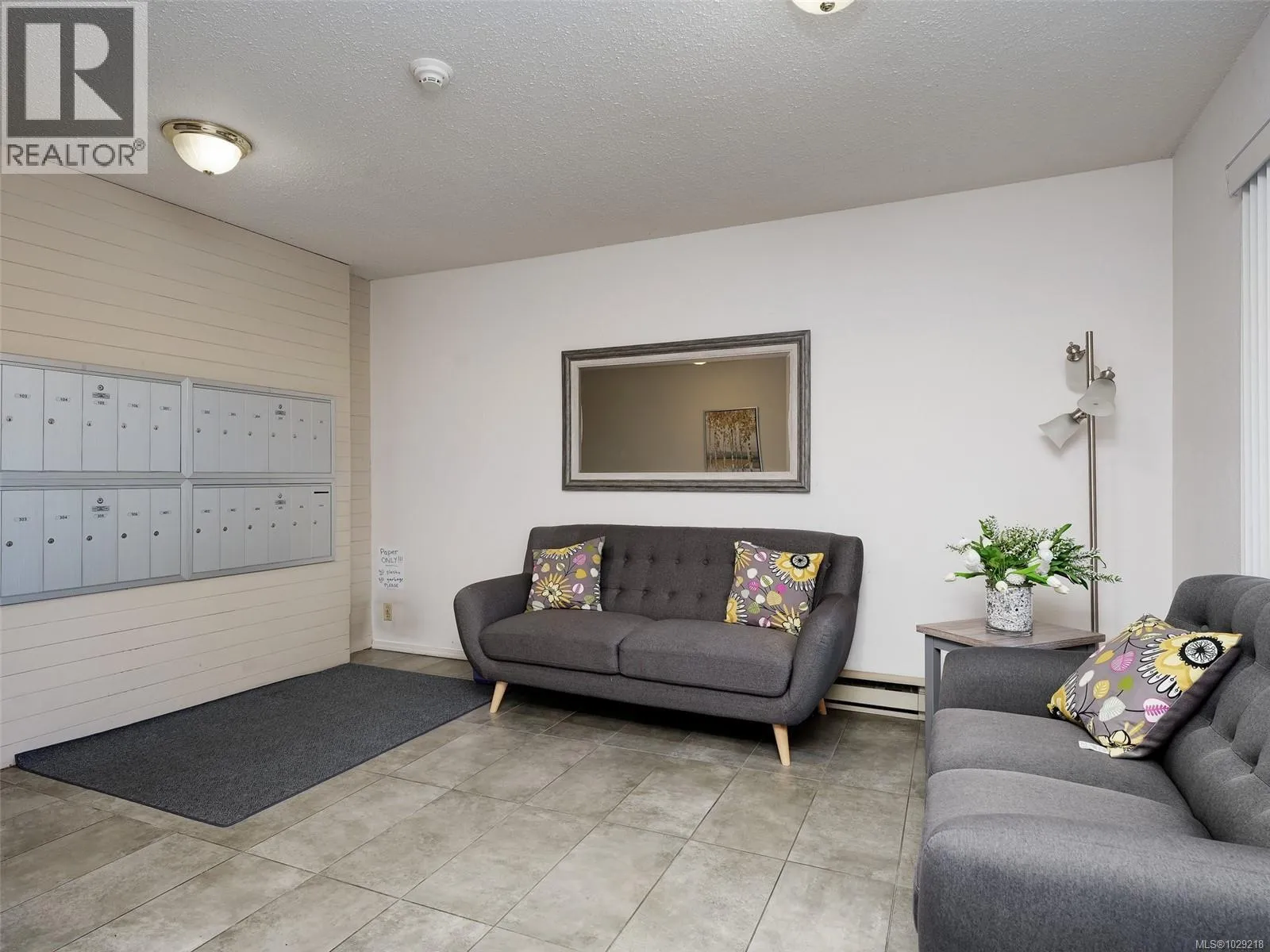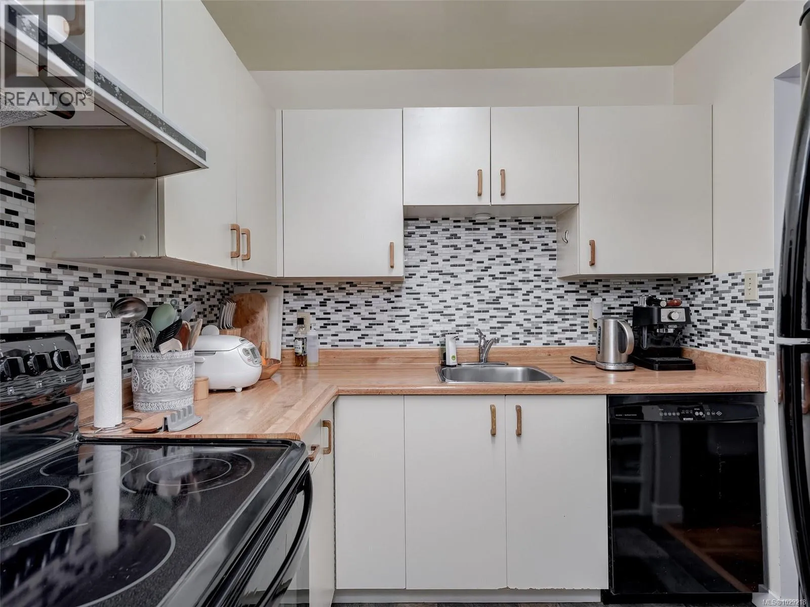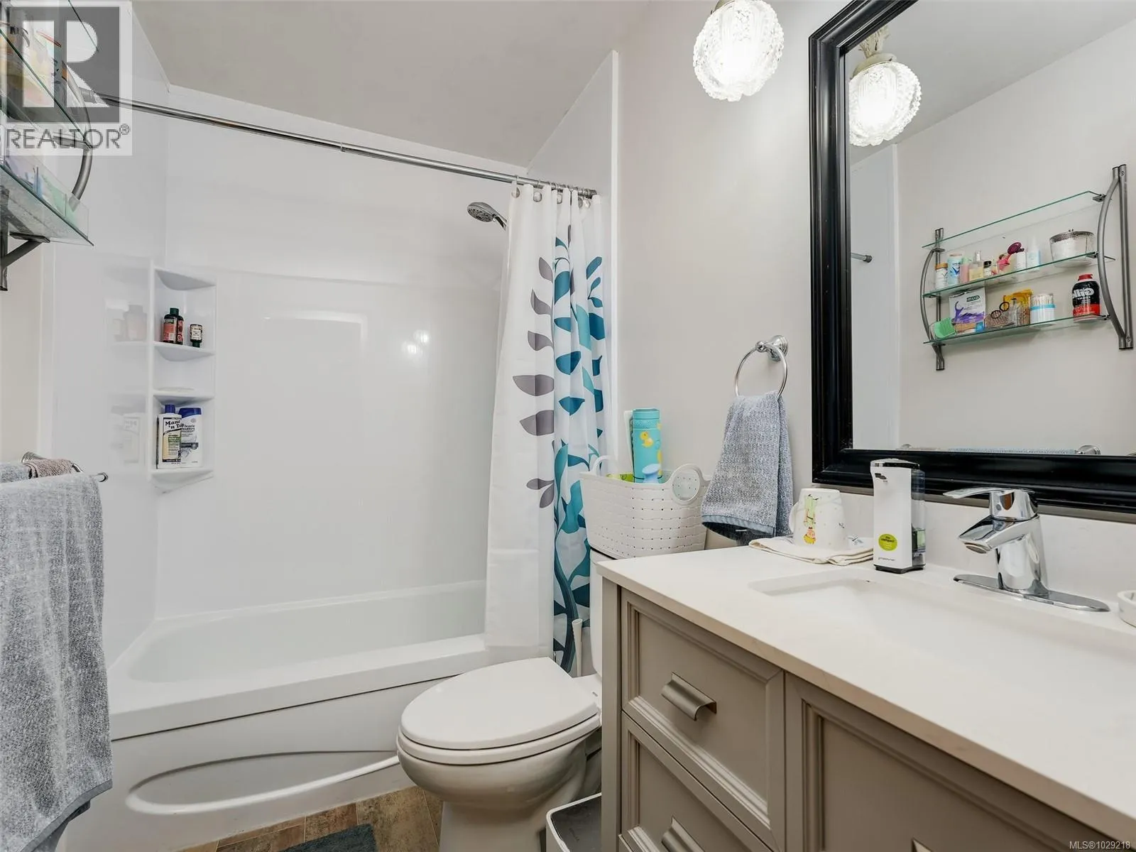 TOP FLOOR CORNER UNIT in Alder Manor! Bright and well-maintained 2 bed, 1 bath condo offering 860 sqft of comfortable living on quiet side and in a prime Saanich East location. Features include wide plank vinyl flooring through the main living areas, updated bathroom vanity, and excellent in-unit storage. Enjoy a spacious living/dining area with balcony overlooking a peaceful neighbourhood. Walking distance to Mayfair Mall, Uptown, restaurants, transit and Rutledge Park just steps away. The professionally managed building has seen key updates including vinyl windows, patio doors, balconies and boilers. No age restrictions, BBQ's allowed, and pet friendlyâ1 dog (no size restriction) & 1 cat or 2 cats permitted. Shared laundry on main floor and 1 parking stall included. Move-in ready and a great opportunity in todayâs market! (id:27476)