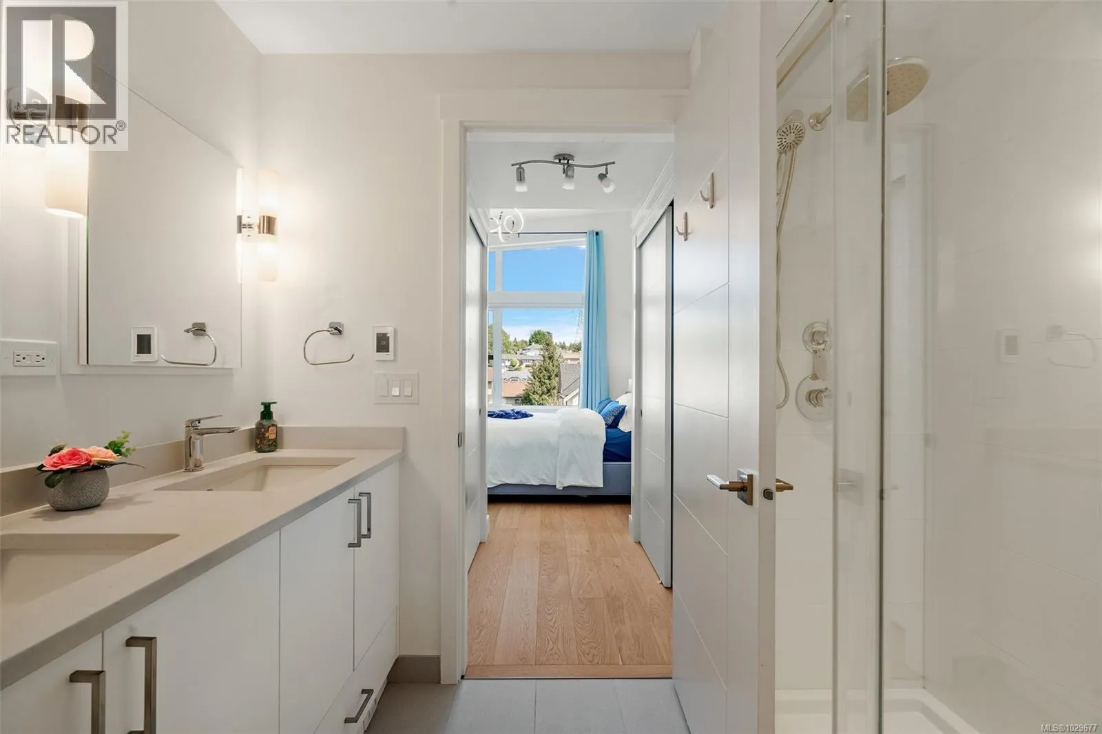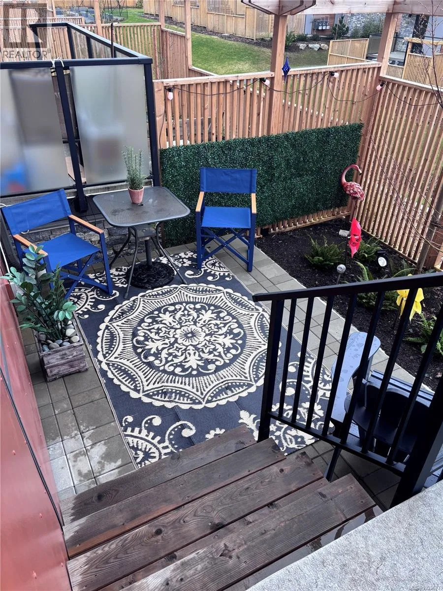 Almost new and no GST! This luxury 3+ bed, 4 bath townhome offers over 2,000 sqft of beautifully finished living space in a quiet, central setting surrounded by single-family homes. West Coast design features soaring rooflines, stone and wood accents, and transom windows. The bright MAIN level offers high ceilings, abundant natural light, and open-concept living and dining areas, plus an ultra-modern gourmet kitchen with quartz counters and premium stainless steel appliances including an induction stove, wall oven, and built-in microwave. A covered back porch with gas BBQ hookup leads to a fully fenced patio and small yard backing onto community green spaceâperfect for kids and pets. UPSTAIRS are three spacious bedrooms including a primary retreat with walk-through closets and a spa-like ensuite, plus a full bath and laundry. The LOWER level features a large media/bonus room with a fourth full bathroomâideal for a guest suite, home gym, playroom, or theatre. Notable features include radiant heated tile floors, engineered hardwood, electric blinds, hot water on demand, HVAC heating and cooling, electric fireplace, and a single garage with driveway parking. EV and central vac ready. Located in a welcoming, family-friendly community with community gardens, a playground, and shared green space, and just minutes from local schools, shopping, and nature trails at Rithetâs Bog. Balance of new home warranty remaining. (id:27476)