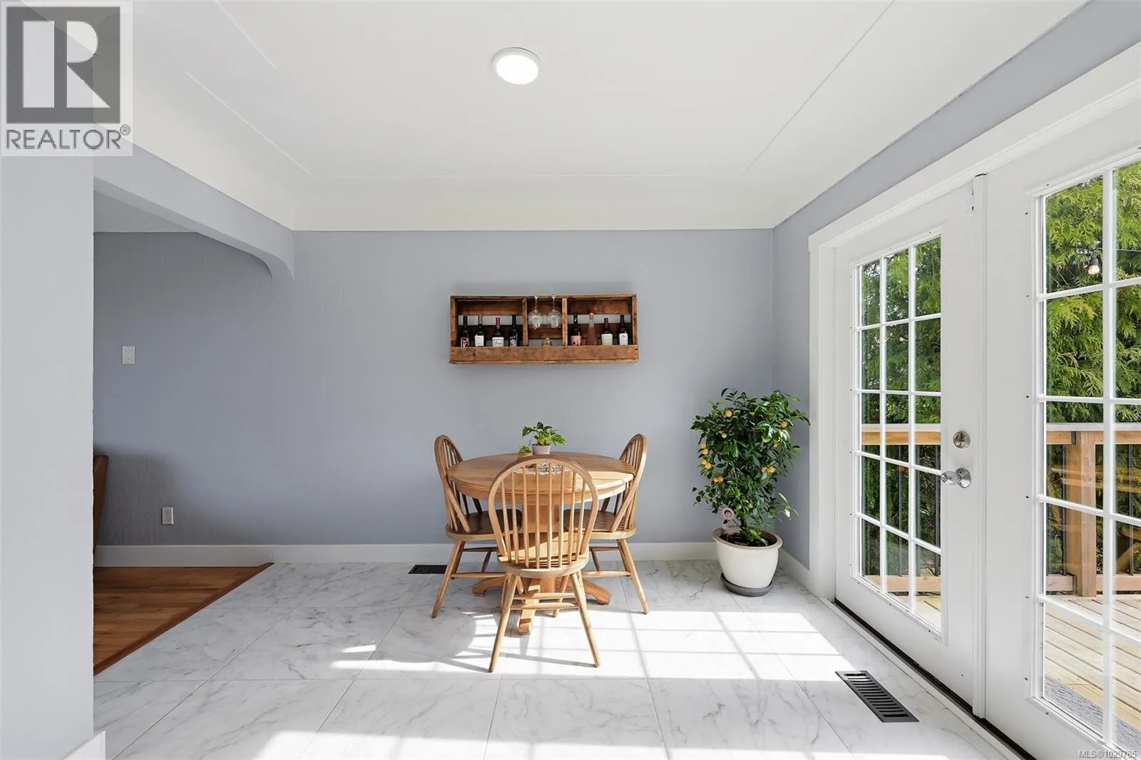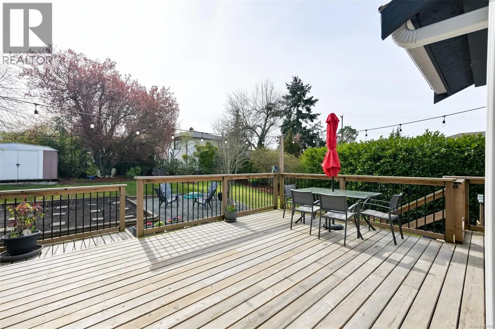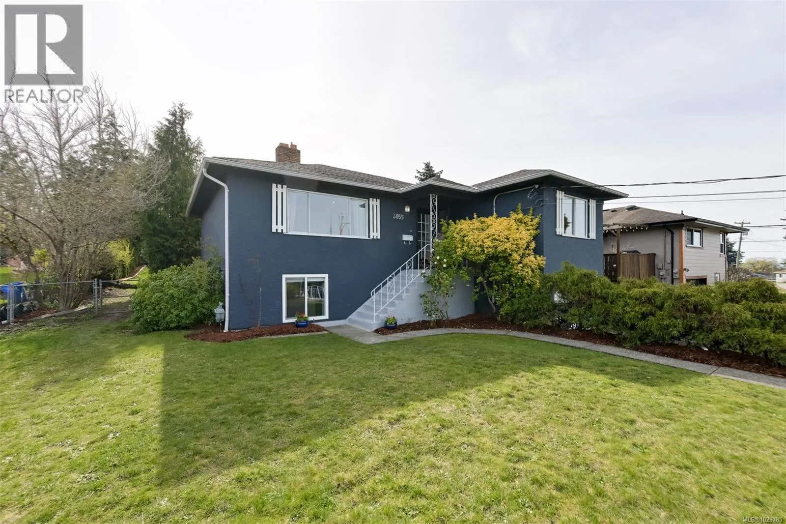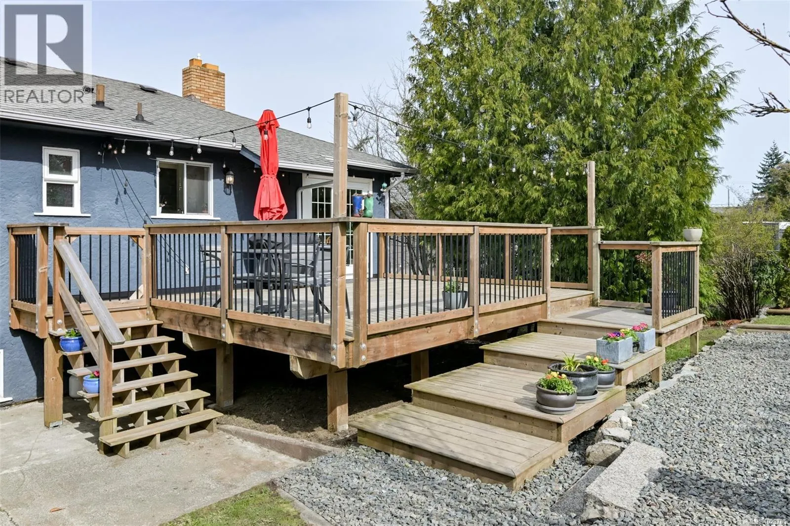 Updated and move in ready home with three bedroom mortgage helper located near Uptown at 3855 Seaton St! Three bedroom main level features hardwood floors, coved ceilings, renovated bathroom, updated appliance package and tile floors in kitchen and French doors from dining area leading to your 300sqft private south facing deck and backyard oasis! Yard is fully fenced and nicely landscaped with garden beds ready to go, gravel fire pit area, storage shed and plenty of sun all day long. Downstairs is a coveted three bedroom suite with private entry, patio space, newer bathroom with soaker tub, 7â ceilings and separate laundry. Suite is vacant and ready for family or tenants. Additional upgrades include high efficiency gas furnace, updated perimeter drains, 200amp electrical and large rebuilt deck. Lot is 60x130 (7800sqft) with plenty off-street parking. A very central and convenient location with easy access to all areas of Greater Victoria, schools, trails and parks nearby. (id:27476)