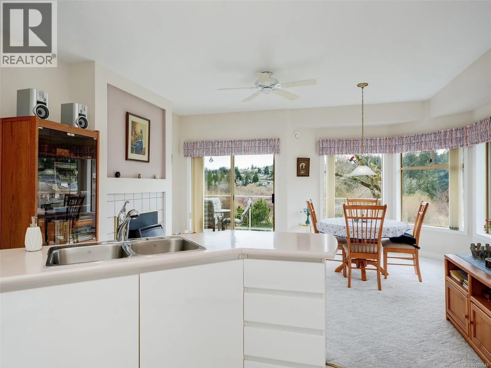 Introducing this expansive 1860 ft one level end unit in beautiful Foxborough Hills. Upon entry to this bright large sun filled townhome will will discover a rare offering on one level that is hard to find in any market. This Townhome offers a huge primary bedroom with lots of windows, an extra large walk in closet and 5 piece ensuite bath. The second bedroom offered is well an above average size. Moving through the unit you will discover an abundant sized Living and dining room looking directly out onto Rithet's nature sanctuary through the large picture windows. High vaulted ceilings, skylights and a cozy gas fireplace helps complete these rooms. The adjacent kitchen offers a functional design complimented with many windows, an eating area and large inline family room with another gas fireplace plus a large balcony to enjoy the privacy and exterior scenery of nature this home offers ! A large double car garage and crawl space helps complete this excellent opportunity . Don't delay! (id:27476)