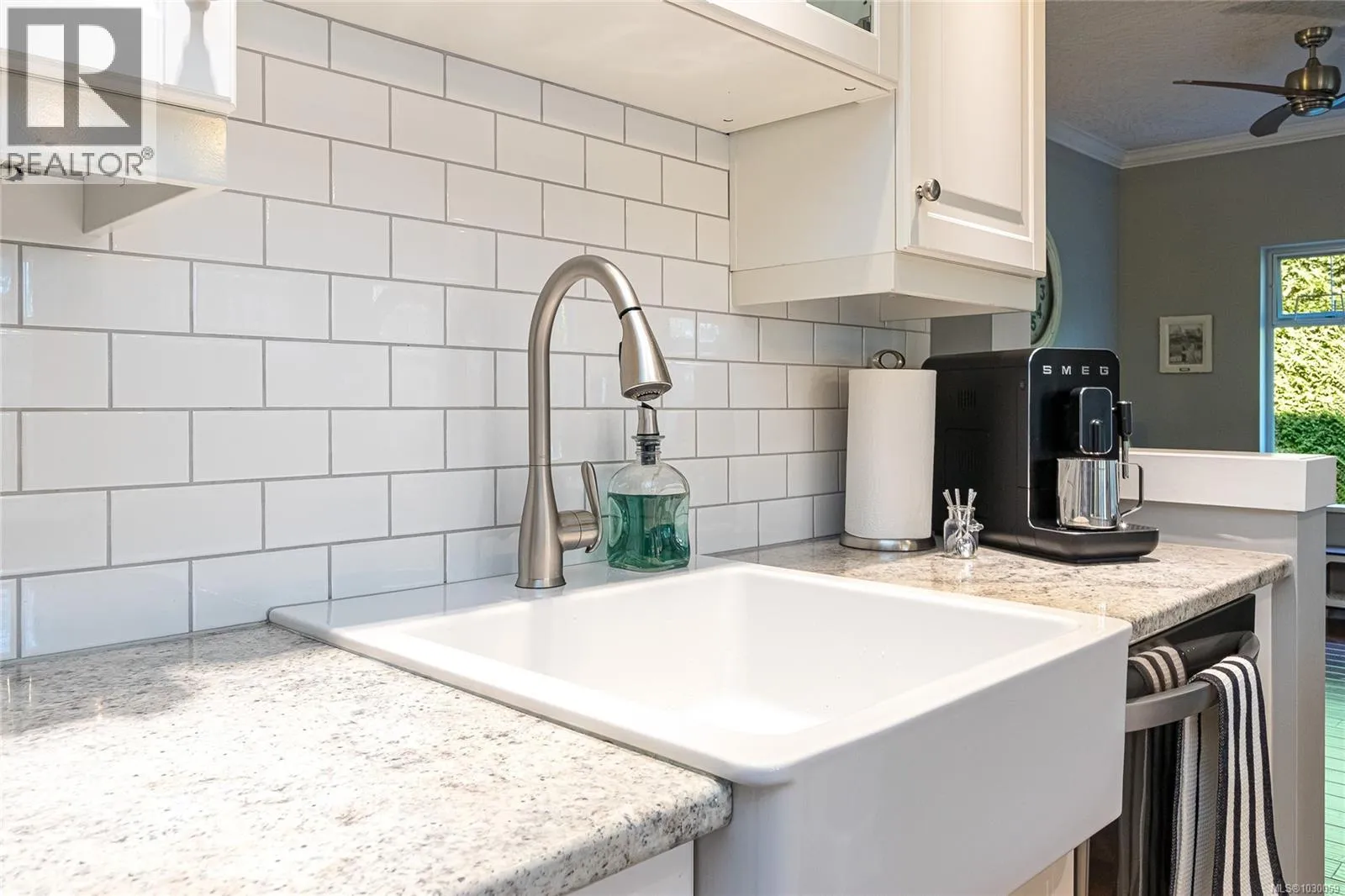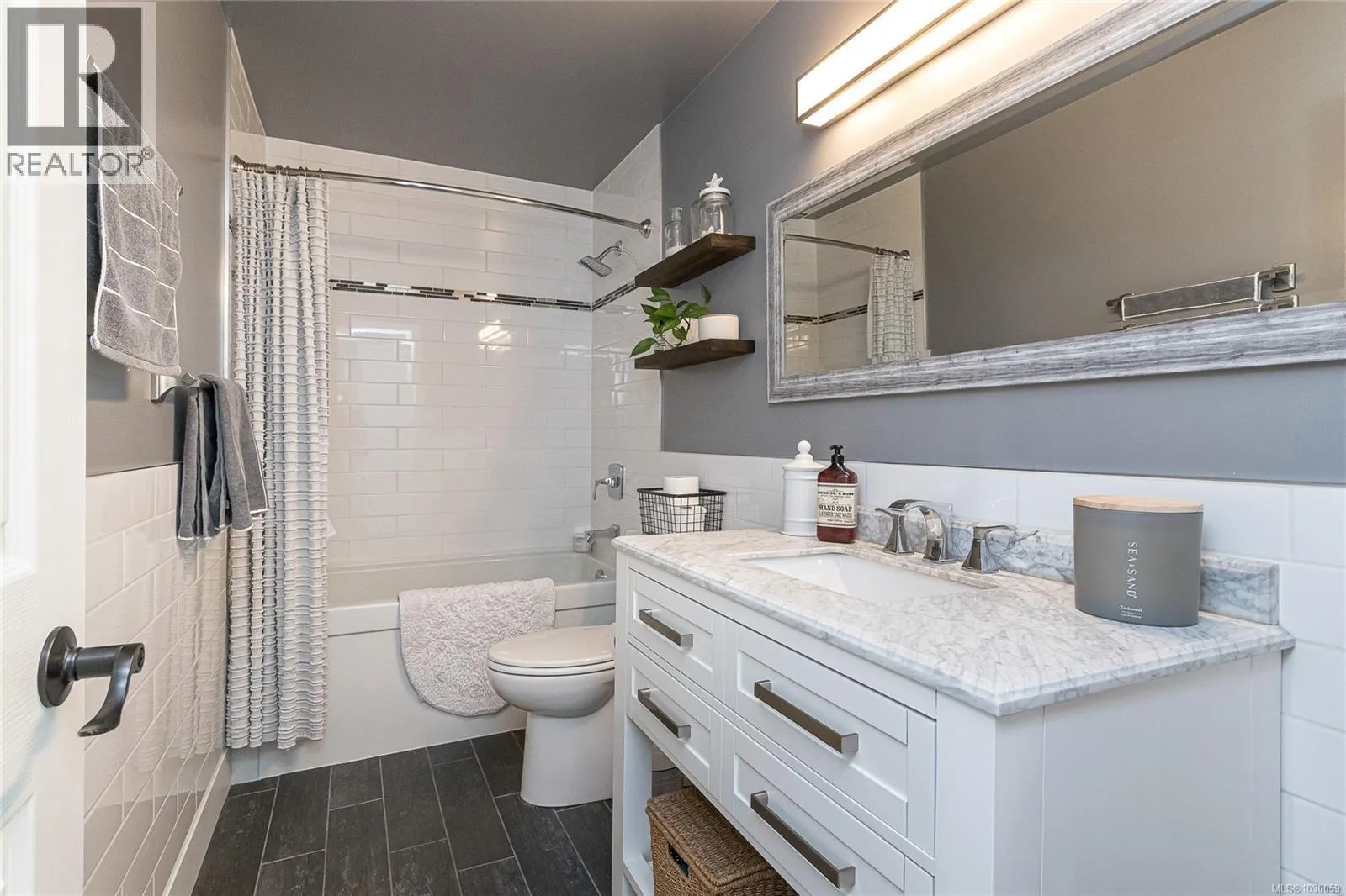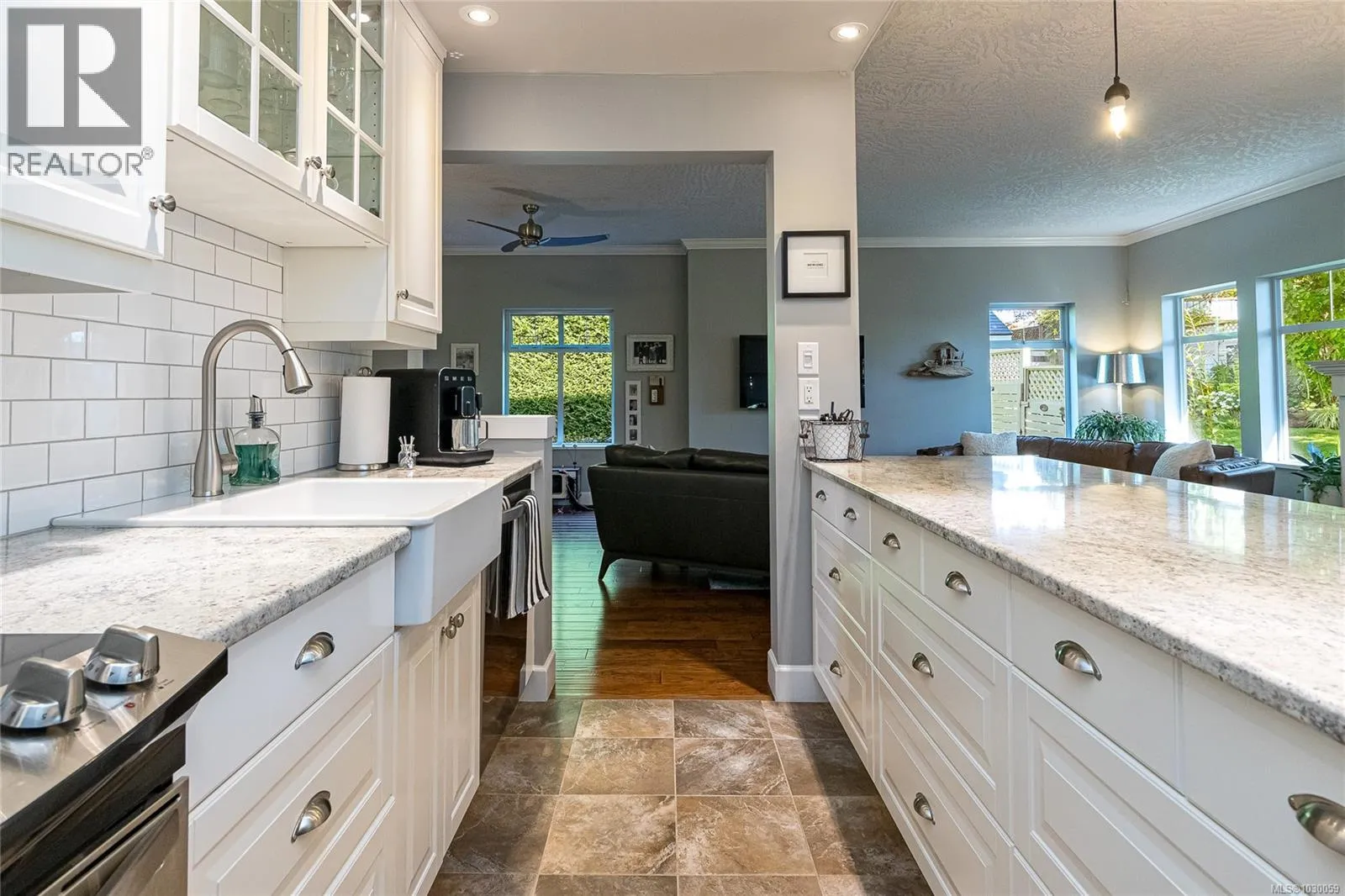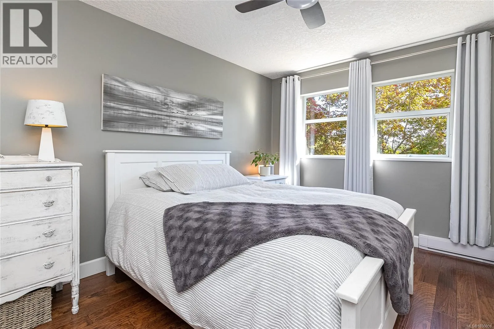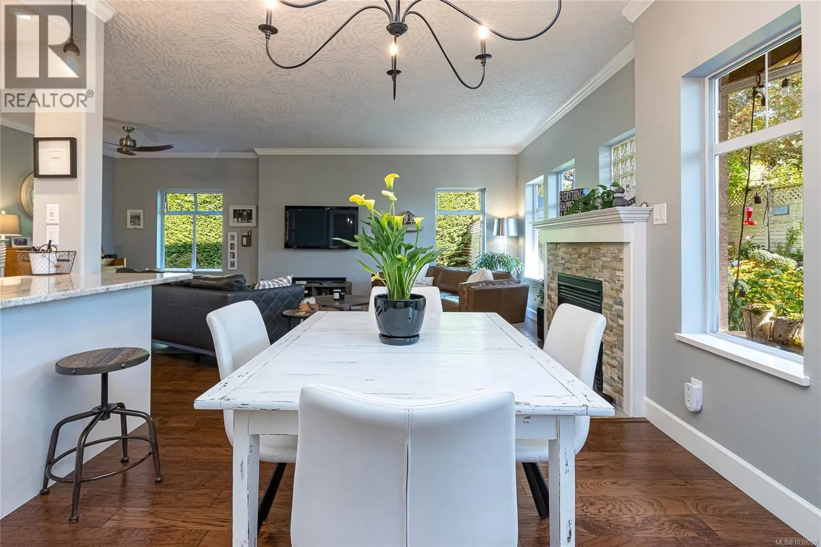 Tucked between Christmas Hill and Mount Doug in sought-after Lakehill Estates, this beautifully updated 3 Br., 3 bath end-unit townhome offers the perfect blend of space, privacy, and lifestyle. With over 1,900 sq. ft. of finished living space, this home is ideal for families, professionals, or anyone looking for a comfortable and well-located property in Saanich East. Step inside to a bright vaulted entry filled with natural light, where hardwood floors and a feature gas fireplace create a warm and inviting living and dining area. The renovated kitchen is both stylish and functional, featuring a subway tile backsplash, under-cabinet lighting, new fridge and hood fan, eating bar, and a generous walk-in pantryâperfect for everyday living and entertaining. Upstairs, you will find a spacious primary bedroom with ensuite, along with two additional bedrooms, both complete with charming window seats. The bathrooms have been fully updated, and recent improvements include fresh paint, new washer and dryer, hot water tank, lighting, and ceiling fansâmaking this home truly move-in ready. Outside, enjoy your private fenced yard and landscaped patio, an ideal setting for relaxing, entertaining, or letting kids and pets play. The complex also offers a large common green space, providing even more room for outdoor enjoyment. One of the standout features of this location is direct access to the Lochside Trail right outside your back doorâperfect for cycling, walking, or commuting. You are just a 20-minute bike ride to downtown Victoria and conveniently located near schools, shopping, the airport, ferries, and the Westshore/Royal Bay/Bear Mountain & Costco. This is a rare opportunity to own a tastefully updated, well-maintained end-unit townhome in a central and highly desirable neighbourhood. (id:27476)