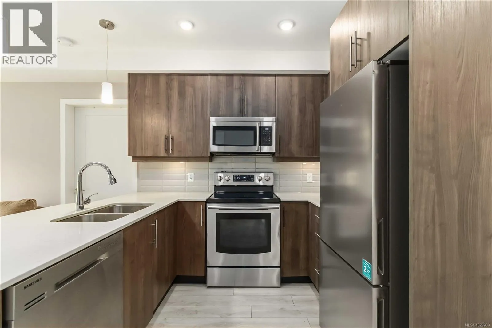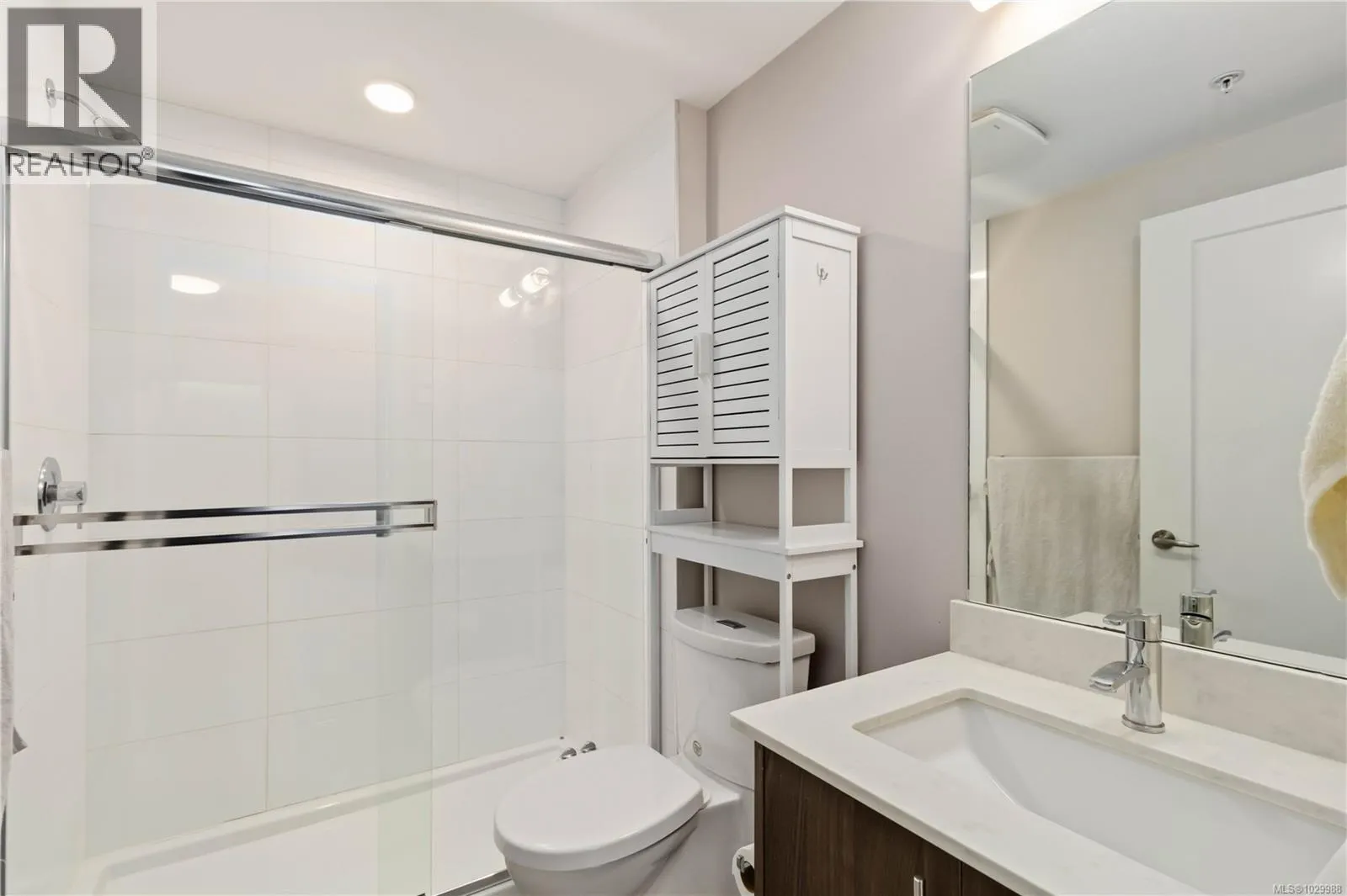 Virtual OH, HD VIDEO, 3D WALK-THRU, PHOTOS & FLOOR PLAN online. Welcome to this Spacious 2bd, 2bth condo in the sought-after Shire, located in the heart of Saanich. This quiet ground-floor unit sits at the rear of the building, facing protected green space w/Garry Oaks. The open-concept layout features a modern kitchen w/stainless steel appliances, quartz countertops, soft-close cabinetry, & an eating bar. Enjoy a spacious private patio off the living area, perfect for relaxing or entertaining. The bdrms are thoughtfully separated for privacy. The primary bedroom offers a walk-in closet and ensuite, while the second bedroom has Jack and Jill access to the main bathroom. Additional features include a new HWT(2024), underground parking, storage locker, & bike storage. Pet, rental, & BBQ-friendly building. Centrally located near downtown Victoria, Mayfair Mall, groceries, schools, & UVic. Measurements from Floor Plans - Strata Plan Finished 833sqft Unfinished 87 sqft. (id:27476)