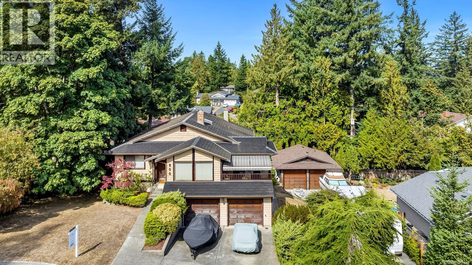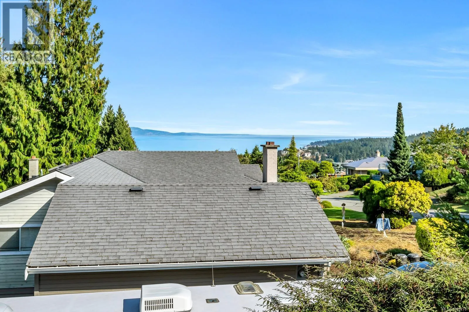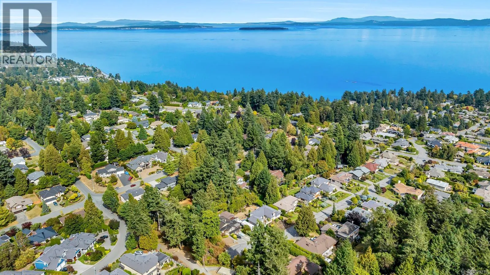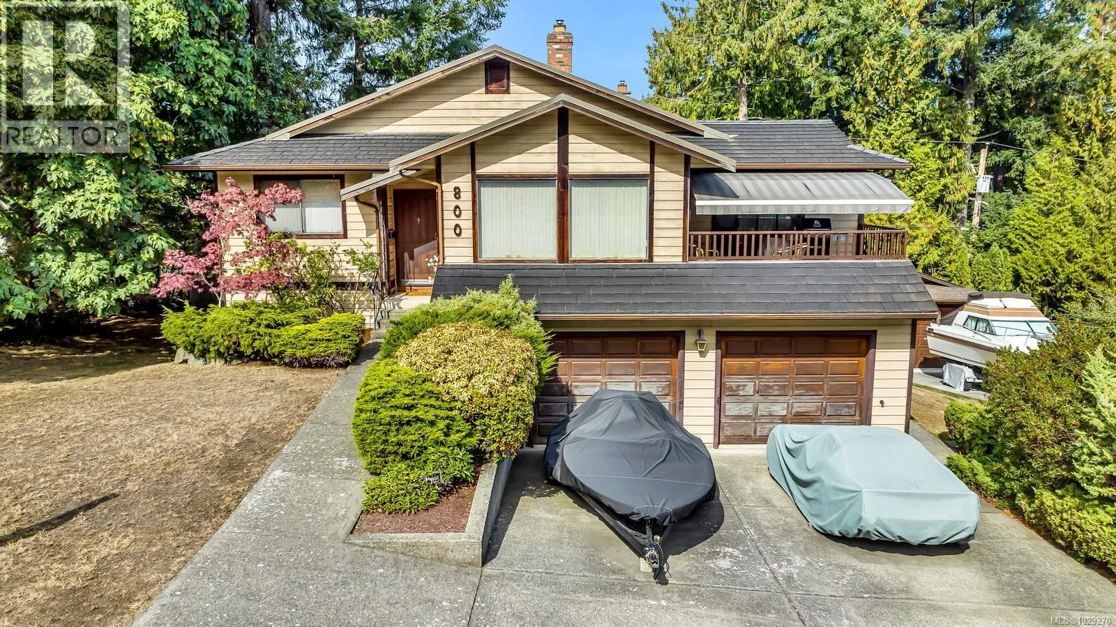 The hobbyist or tradespersonâs dream! Beautiful Custom Cordova Bay home with bonus two driveways and two double garages, at the end of quiet street! Fabulous sunny location with sweeping water views. Over 2670 sq ft of living space w/ 3 bedrooms & 3 baths, easy to suite if needed. Upstairs features large Primary, spacious 2nd bedroom & 2 full baths. Open concept kitchen to family room, formal dining, living room, 2 gas fireplaces. East facing ocean views from every window and sundeck. Lower level offers a bedroom, bathroom, laundry & huge flex room area. Cedar exterior with rubber F/P 50-year roof. Large private yard with additional garden shed, and extensive parking for RV, boat and extra vehicles. 200 Amp service. Close to several parks, beaches, recreation, golf courses, hiking trails & some of the best schools Victoria has to offer. (id:27476)