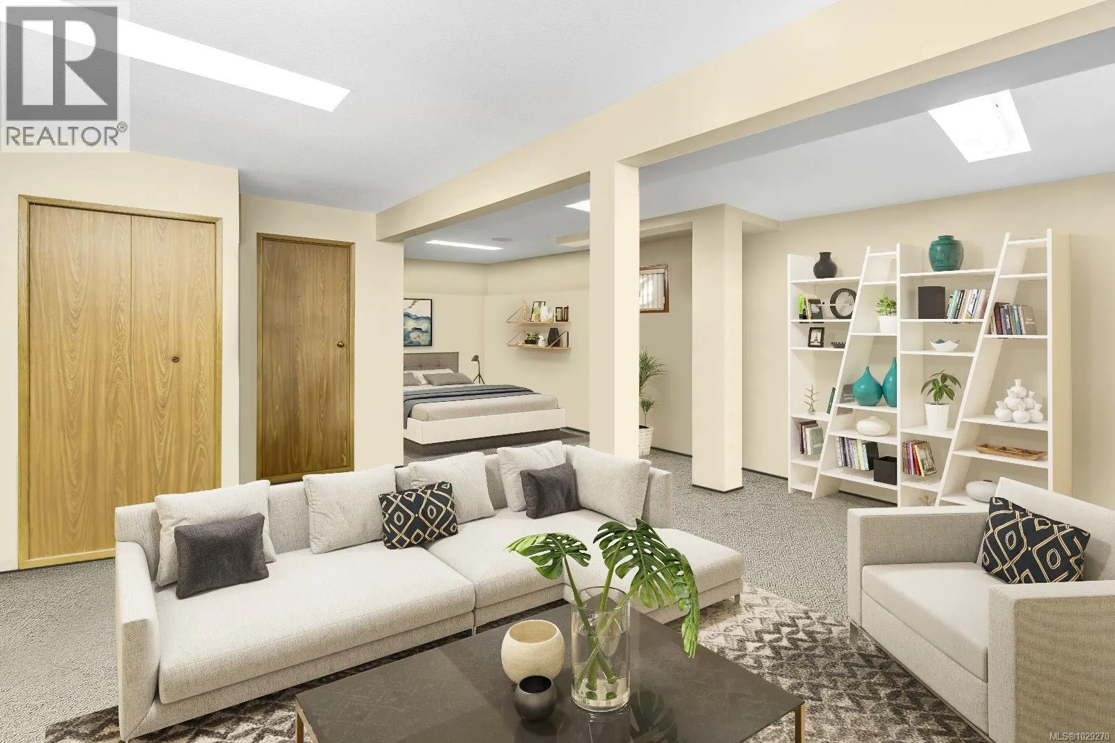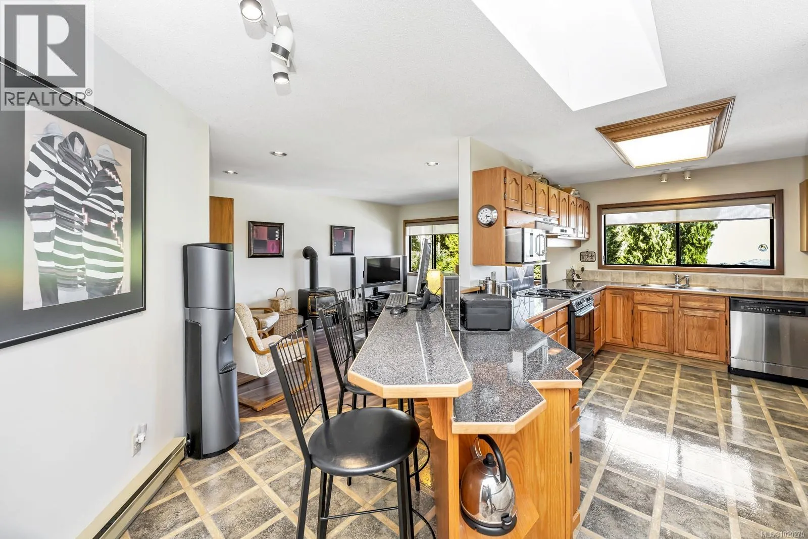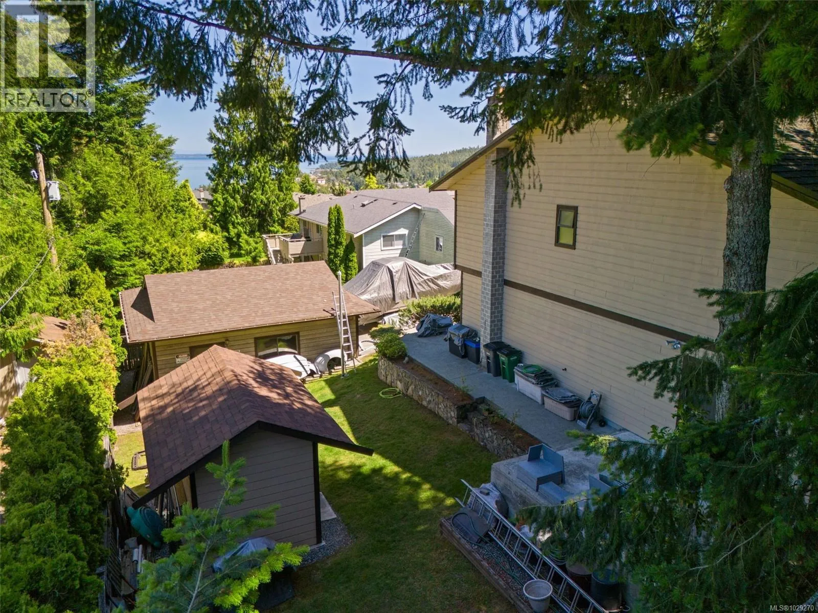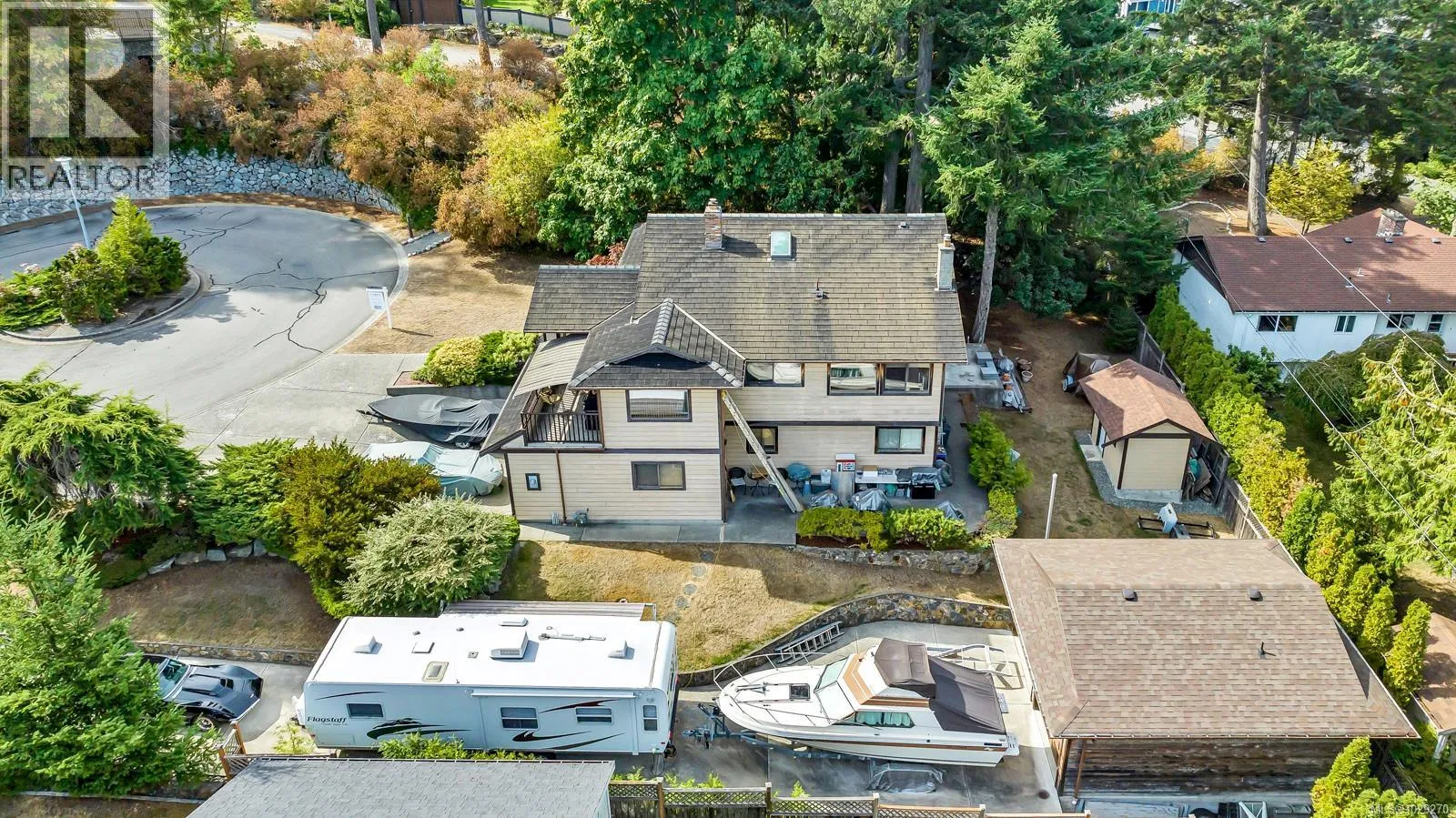 The hobbyist or tradespersonâs dream! Beautiful Custom Cordova Bay home with bonus two driveways and two double garages, at the end of quiet street! Fabulous sunny location with sweeping water views. Over 2670 sq ft of living space w/ 3 bedrooms & 3 baths, easy to suite if needed. Upstairs features large Primary, spacious 2nd bedroom & 2 full baths. Open concept kitchen to family room, formal dining, living room, 2 gas fireplaces. East facing ocean views from every window and sundeck. Lower level offers a bedroom, bathroom, laundry & huge flex room area. Cedar exterior with rubber F/P 50-year roof. Large private yard with additional garden shed, and extensive parking for RV, boat and extra vehicles. 200 Amp service. Close to several parks, beaches, recreation, golf courses, hiking trails & some of the best schools Victoria has to offer. (id:27476)