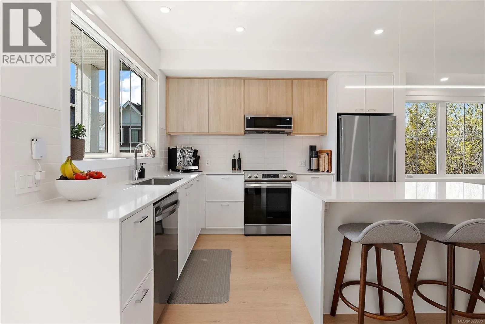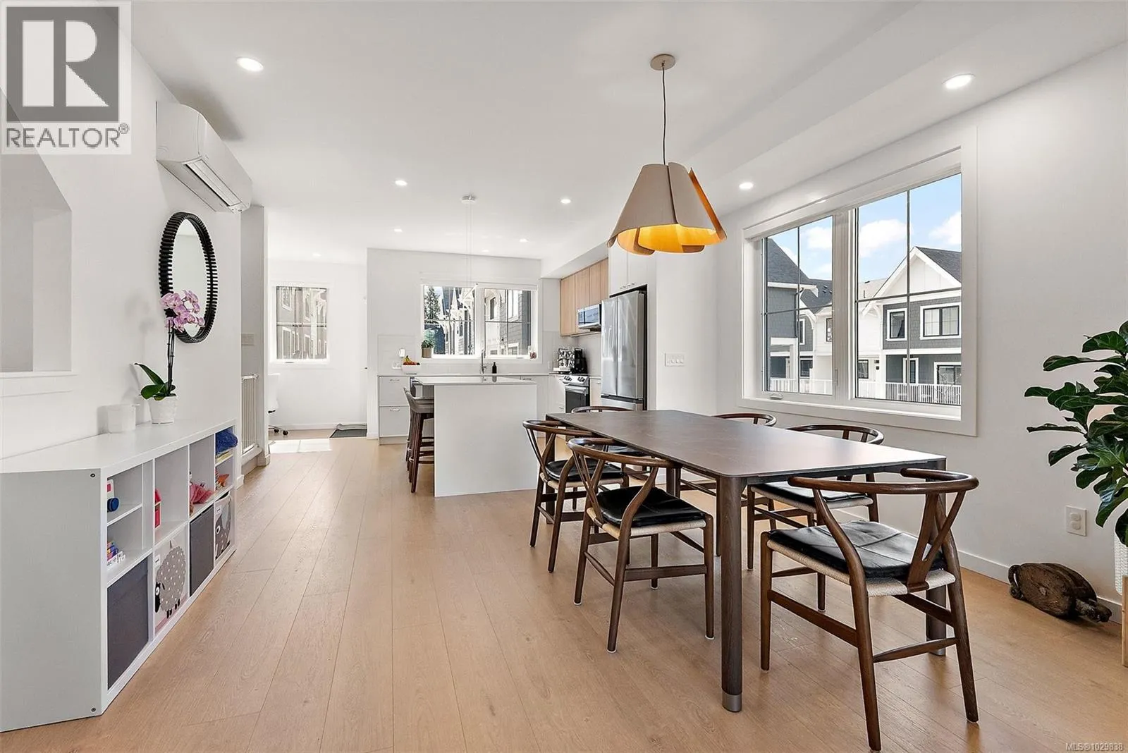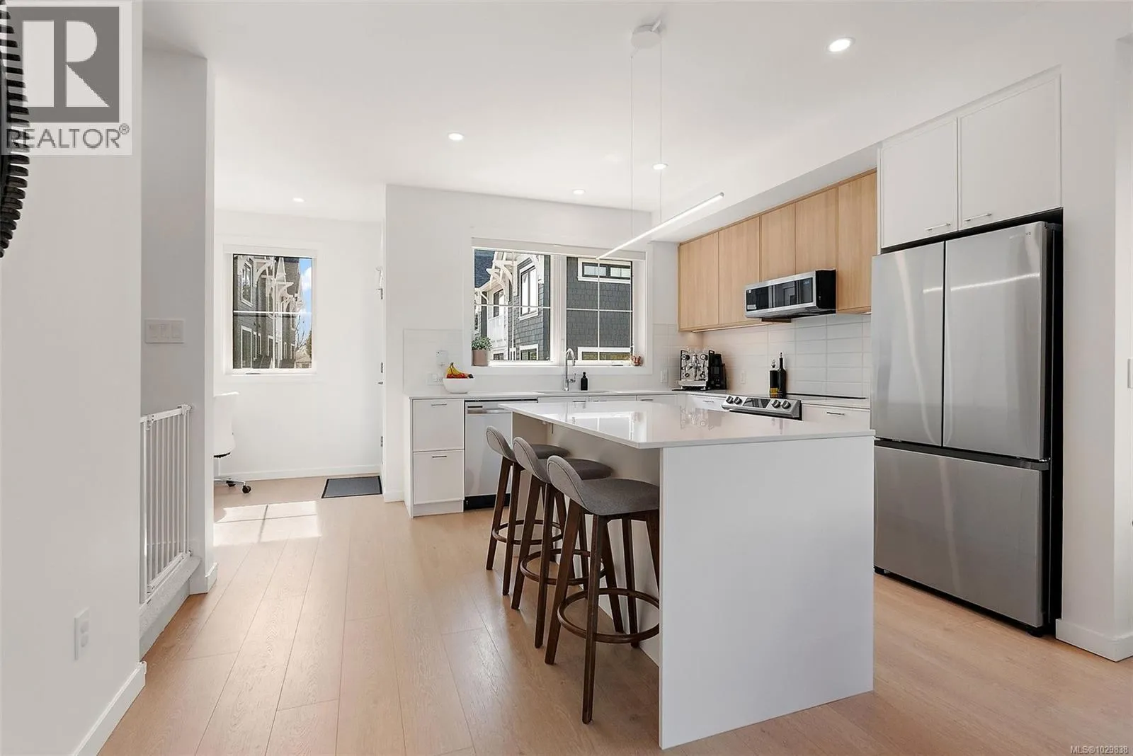 Welcome to Greyson Townhome Collection by Abstract, offering timeless design with modern comfort. This bright, corner home with unobstructed sight lines to the South & West is one of the finest, with 1,854 sf of thoughtful living space and large windows that fill the home with natural light. The main level features a stylish kitchen with quartz counters, large island, full-height pantry, & built-in workspace. Upstairs offers large bedrooms while the lower-level flex room serves as a 4th bedroom or media room with outdoor access and a large closet. The lower level storage room (or possible bathroom), is already plumbed and wired for future potential. Enjoy a balcony & private, fully fenced courtyard with irrigated landscaping for your exclusive use. Upgrades include Epoxy garage floor & heat pump with AC. The home is smart-enabled for control of lighting, climate, and appliances. Garage is EV-ready with Level 2 charging and rough-ins for future solar. 2-5-10 warranty. NO GST (id:27476)