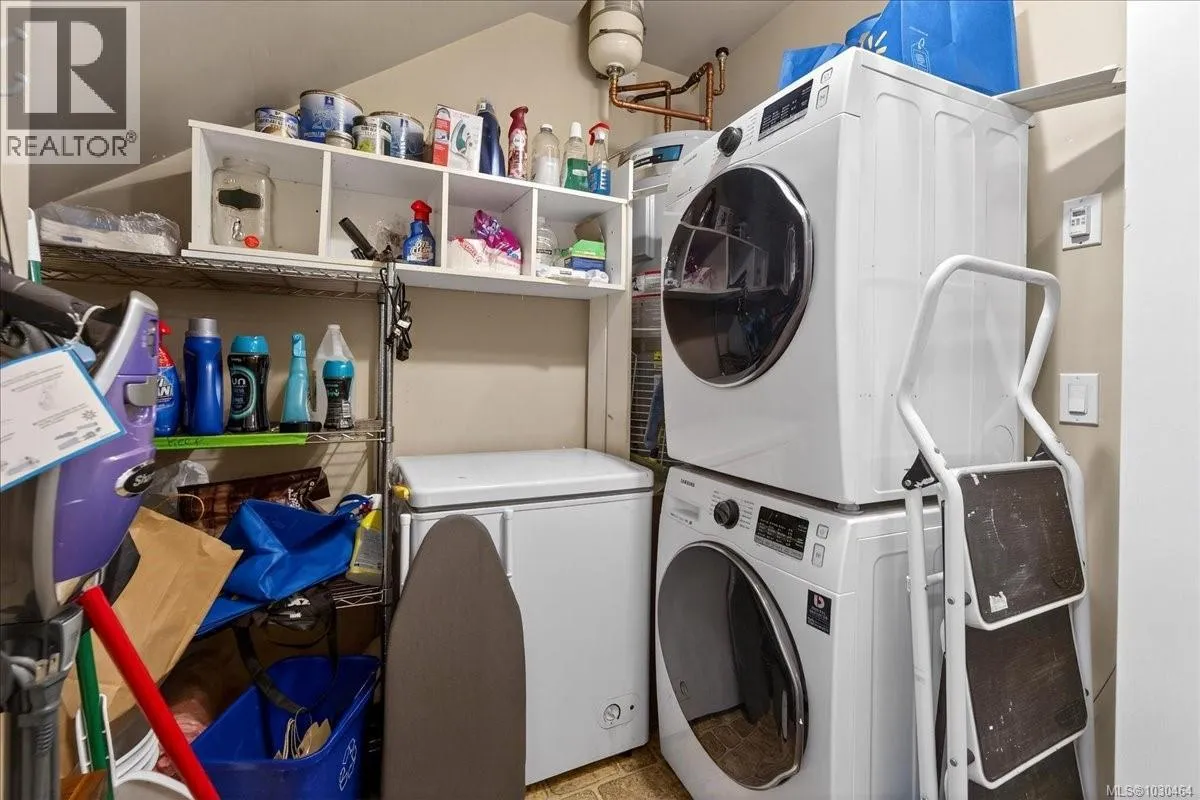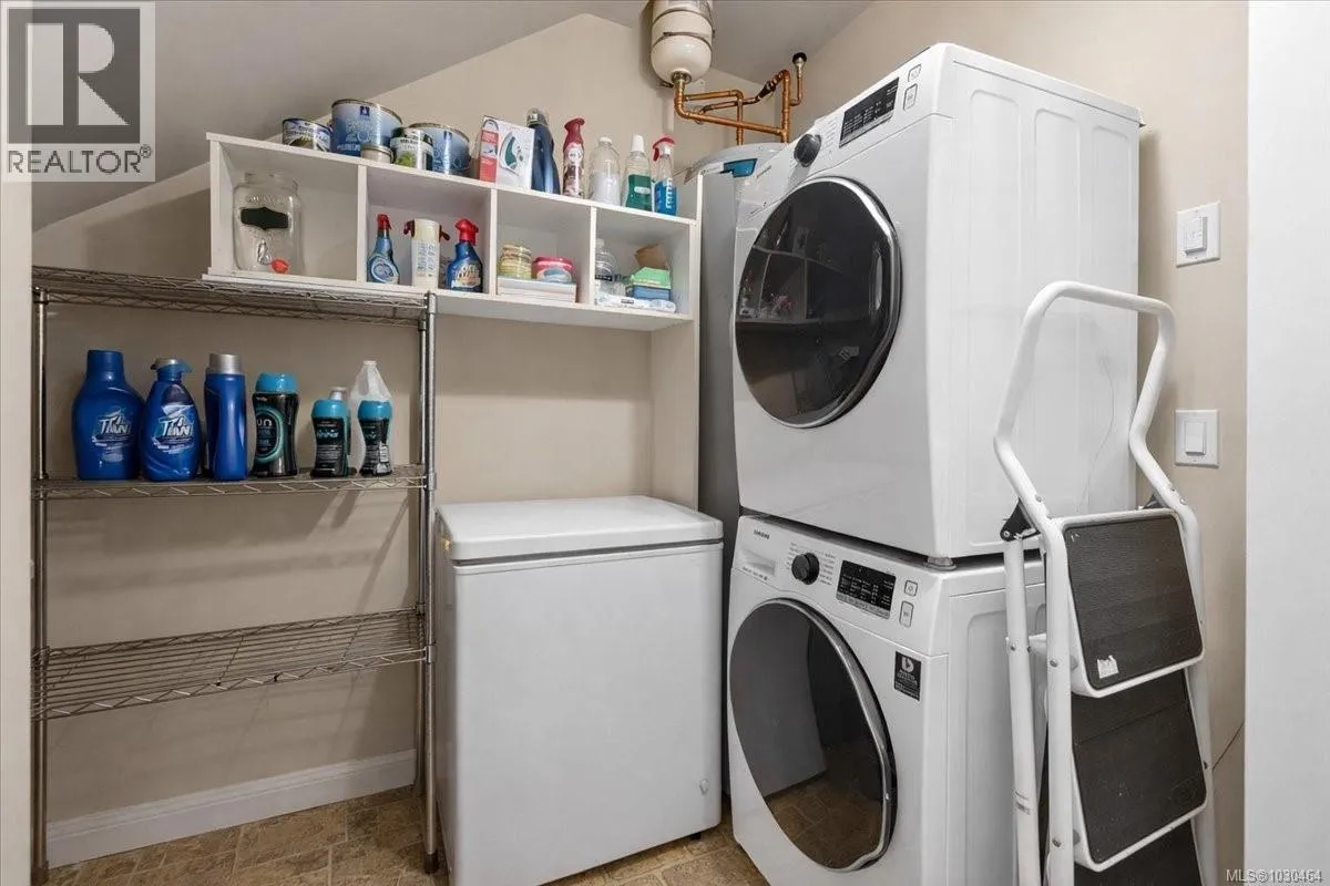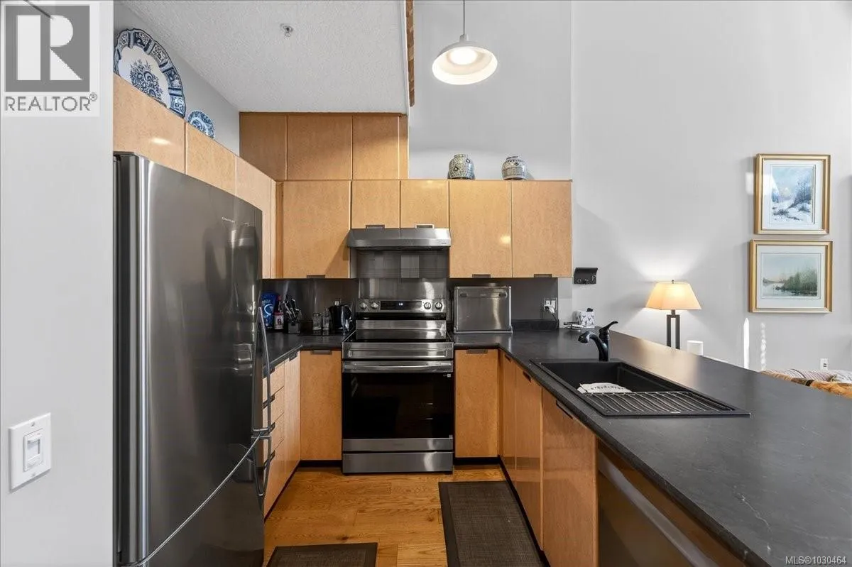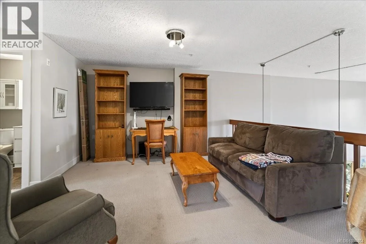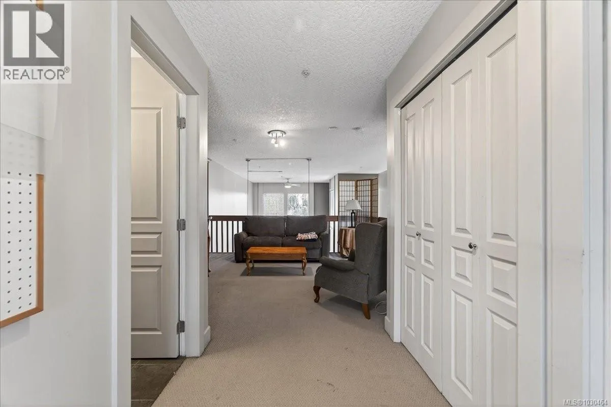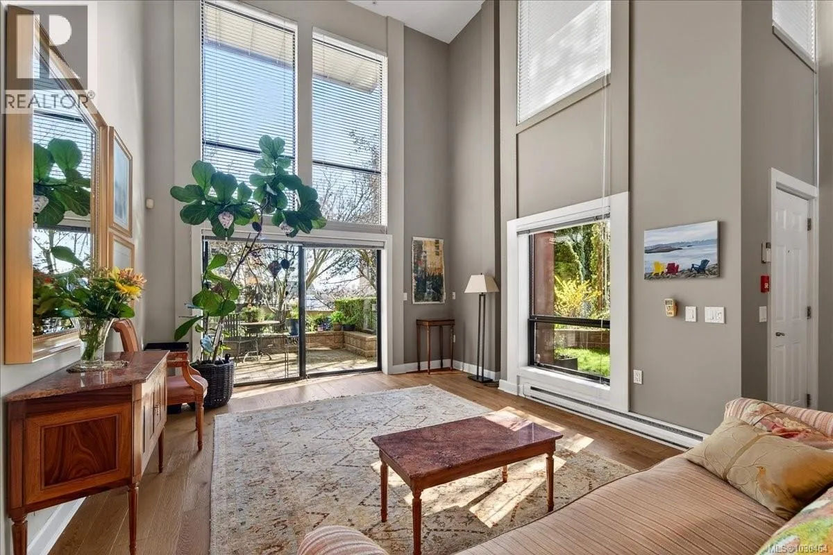 Uptown Shopping Centre. Built in 2005, this unique two-storey residence offers over 1,074 sq. ft. of thoughtfully designed living space with your own private entrance and patio. Soaring 17+ ft floor-to-ceiling windows flood the home with natural light. The open-concept living area features vaulted ceilings, rich wood floors, the functional kitchen is equipped with custom cabinetry, a pantry, quality appliances, and a dedicated eating area. The main level also offers a generously sized bedroom with large windows and extra-large closets, along with a full 4-piece tiled bathroom. Upstairs, the spacious loft-style primary retreat includes an office area, abundant closet space, and an additional 4-piece bathroom, ideal for flexible living or working from home. A large laundry and storage room adds to the homeâs practicality. Complete with in-suite laundry, underground parking, and a storage locker, this pet-friendly home checks all the boxes. Step outside and enjoy immediate access to shopping, dining, transit, and the Galloping Goose Trail. Easy routes to UVic and just minutes to downtown make this location truly unbeatable. (id:27476)