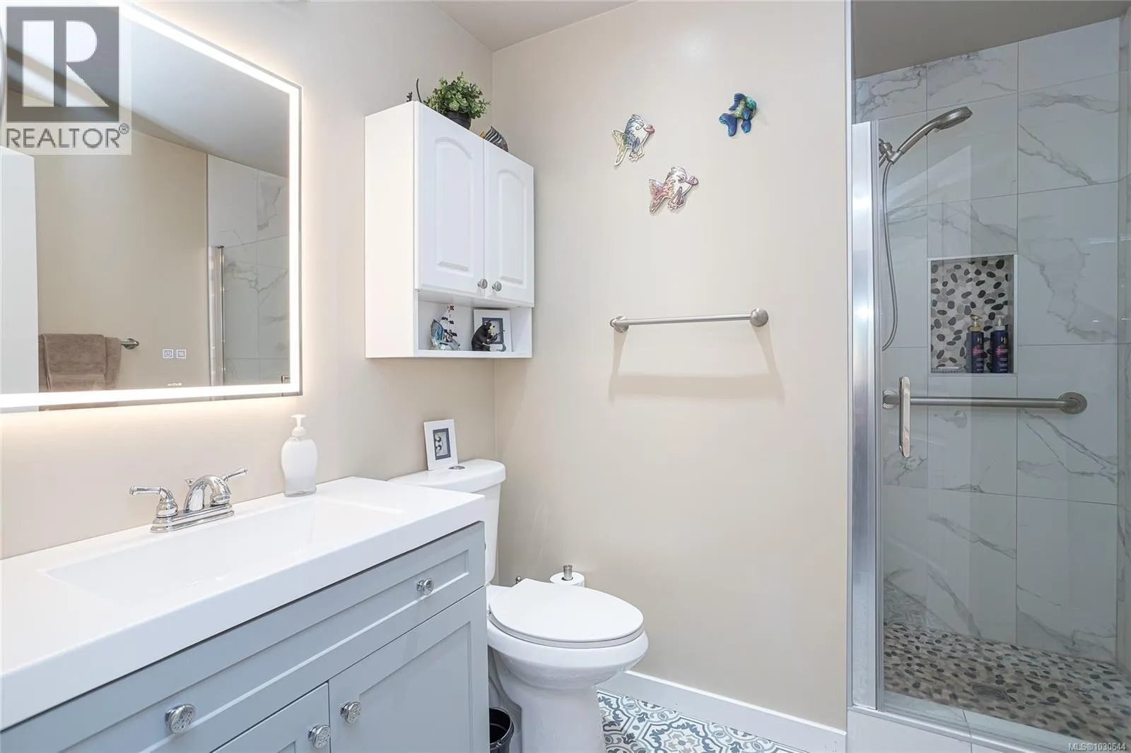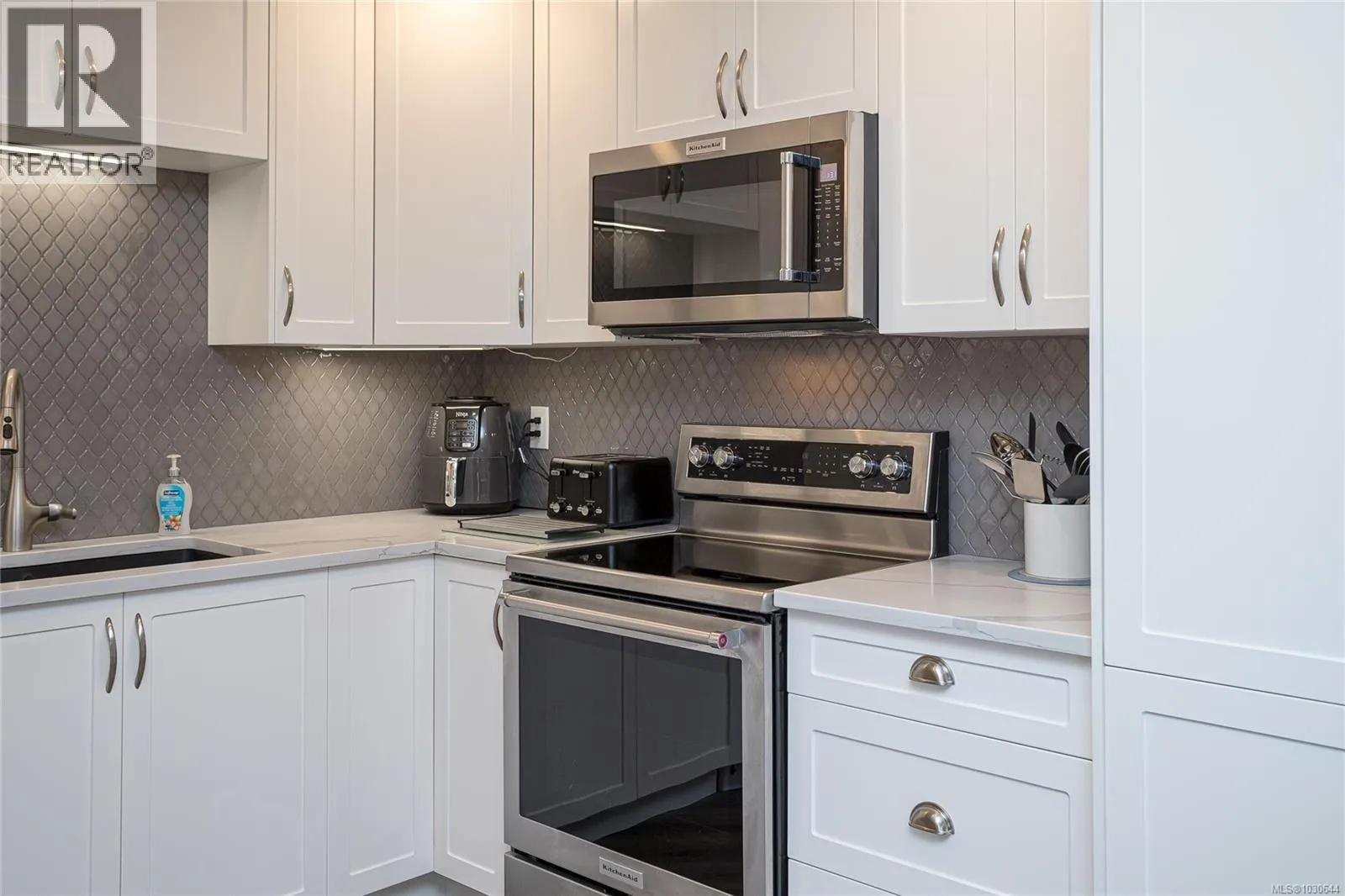 RARE! THE PERFECT ONE LEVEL TOWNHOME! This PRISTINE, Spacious, CORNER, RANCHER Townhome & DOUBLE CAR GARAGE & NEW ROOF, offers privacy and was COMPLETELY RENOVATED THROUGHOUT in 2023 and shows ''LIKE NEW''! Once you enter this private SE facing yard, the Owner's attention to detail is evident. The beveled glass door enters into this impressive, meticulously maintained townhome. The well-designed kitchen offers great functionality and features stainless steel Kitchenaide appliances, quartz counters, complementary backsplash, ample cabinetry and a ''moveable '' kitchen island with eating bar, quartz counter top, drawers and cupboard. The adjacent multi-purpose, spacious family room with ceiling fan, and additional storage is ideal. The king-size primary bedroom, with ceiling fan, leads into a spacious walk-in closet and beautifully updated 3 piece ensuite with river rock shower floor and soap cubby and a designer mirror with built-in light and dehumidifier. Second bedroom, adjacent to 4 piece bathroom, has closet access to crawl space. New Vanities and ceramic tile backsplashes in both bathrooms. Multi-Purpose BONUS ROOM with SKYLIGHT! Privacy doors enter into a Queen-Size MURPHY BED with shelving and cupboard/ Possible 3RD BEDROOM OR OFFICE, ETC. The inline dining room leads to spacious living room with feature electric fireplace and access to fenced west-facing patio - ideal for outdoor enjoyment and BBQ's! Visitor Parking opposite and RV Parking and Clubhouse adjacent to this amazing townhome. Enjoy nature by a walk to Panama Flats. Shopping, bus, all levels of schools and restaurants are close bye. Don't miss this Exceptional Townhome! Great Value in Today's Market! (id:27476)