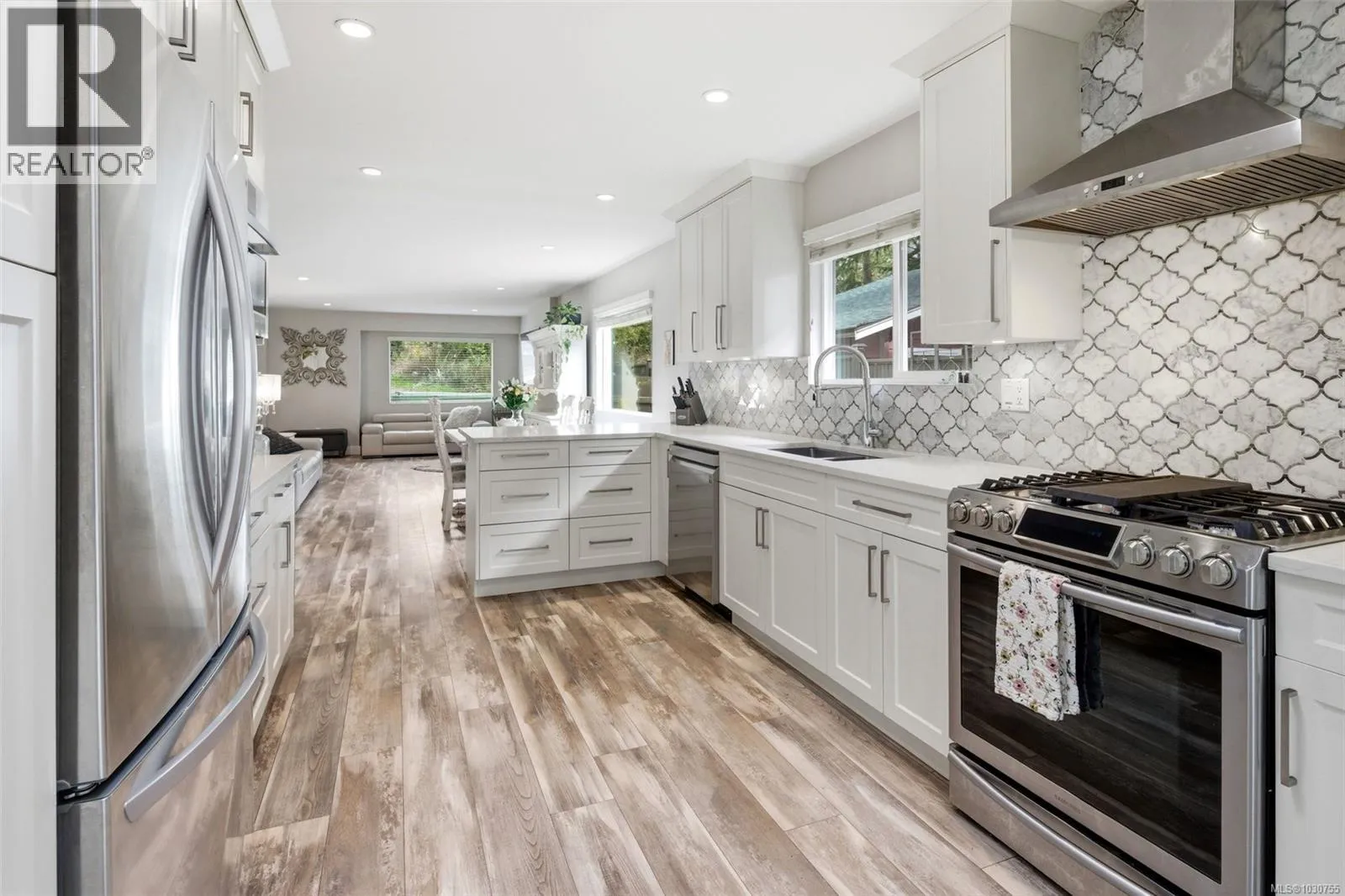 O/H Sat, Apr 4, 1-3pm. Turnkey Perfection in the Heart of Royal Oak! Completely transformed & beautifully modernized, this 1,468sq.ft Royal Oak rancher offers effortless one-level living on a quiet no-through road. Featuring 3 BR, 2 BAplus den (option as a 4th BR or home office), the home showcases a stunning shaker kitchen w/ample cabinetry, quartz countertops, gas range, & stainless appliances. Open concept main living & french doors to versatile den w/murphy bed. Thoughtful upgrades since 2020 include flooring, paint, trim, cabinetry, counters, lighting, laundry & more along with exterior hardi siding, gutters, soffits, garage door, & added attic insulation! Cozy nat.gas FP, spacious primary with ensuite (in-floor heat), & seamless indoor-outdoor living w/custom glass-covered patio. The fully fenced, sun-filled yard is perfect for pets & families. Walking distance to parks, trails, schools, & a short drive to all amenities of Greater Victoria. This is one level living at its finest! (id:27476)