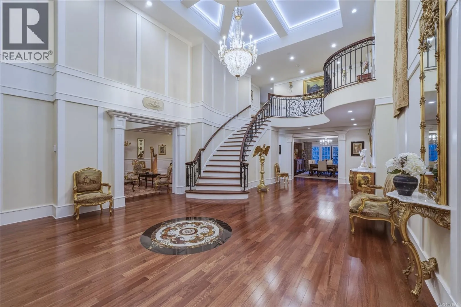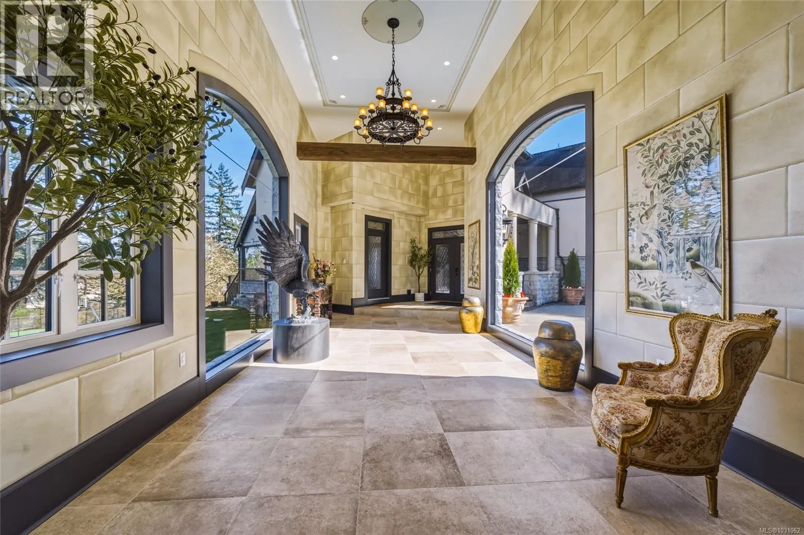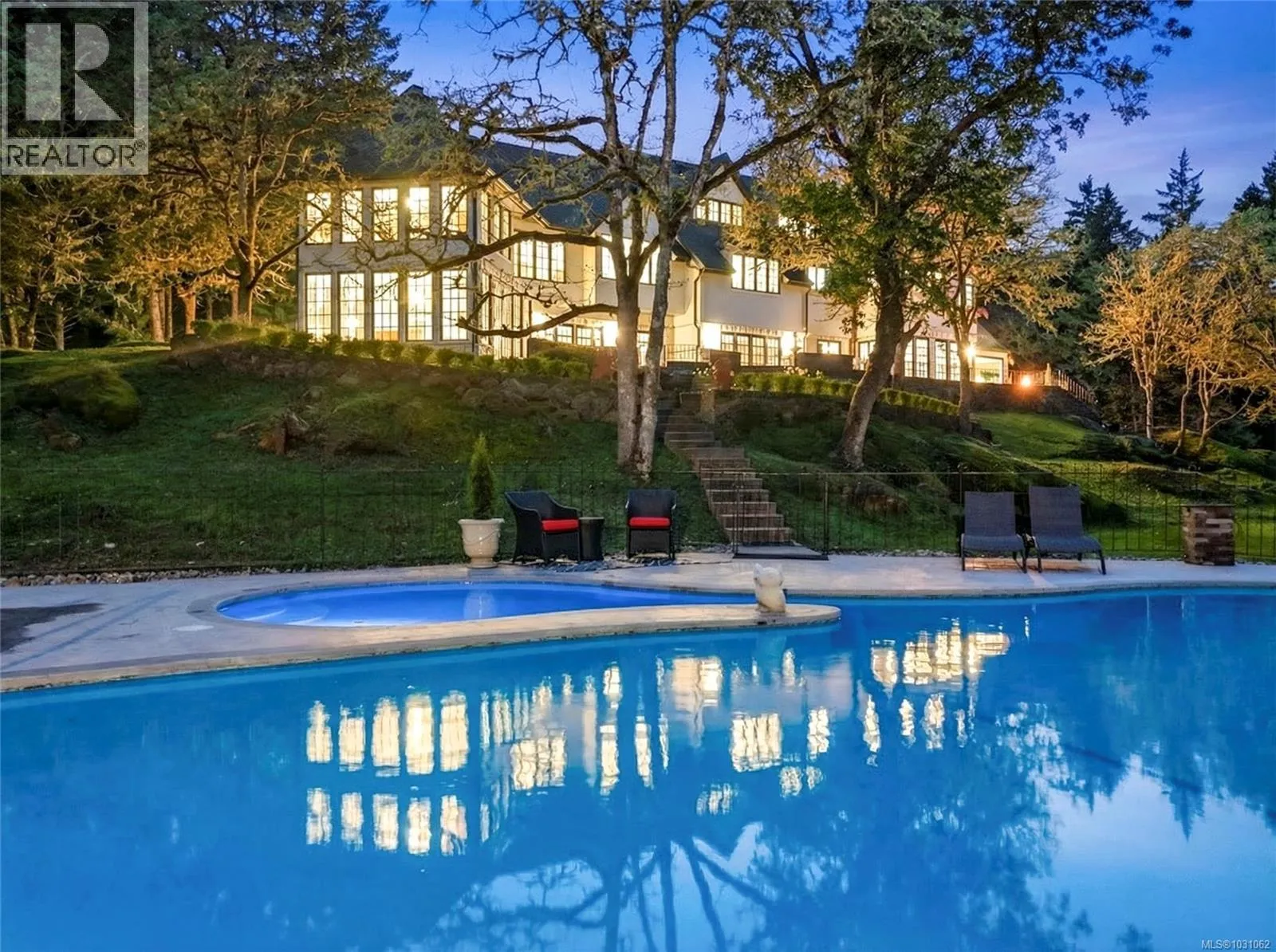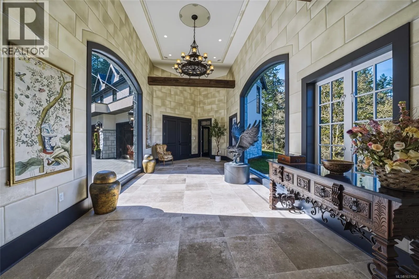 Owlâs Landing is a multiple award-winning, fully rebuilt and expanded 11-acre gated estate completed in 2025 by White Wolf Homes, recognized with CARE Awards including Best Renovation over $1.5M and Best Designer Kitchen. Extensively taken to the studs and reimagined throughout, the residence offers approximately 13,000 sq ft of finished living space with all systems, finishes, and infrastructure newly completed. A grand arrival unfolds through a covered porte-cochère to custom 12-foot entry doors and a dramatic foyer with 20-foot ceilings, anchored by an antique Schonbek chandelier. Designed for both everyday living and entertaining, the home features a spa with sauna, theatre and games room, a resort-style pool with tennis and basketball courts, and a refined primary suite with a full dressing room and a Ritz-Carlton Paris inspired ensuite. A private suite above the garage, oversized three-bay garage, and barn or workshop add flexibility across the usable acreage. The setting offers the rare ability to live privately without sacrificing access, just 15 minutes to downtown Victoria, 25 minutes to the airport and ferries, and within close reach of some of the countryâs top private schools, all supported by direct routes that bypass typical congestion. (id:27476)