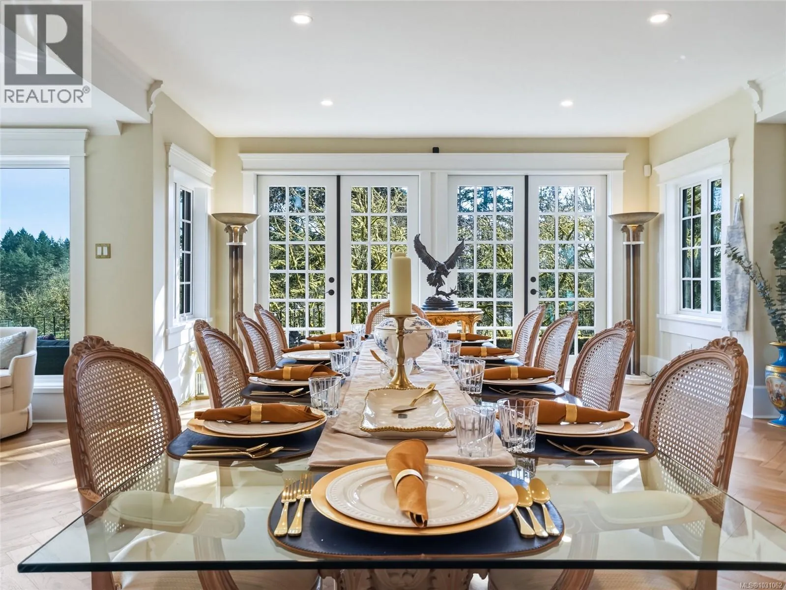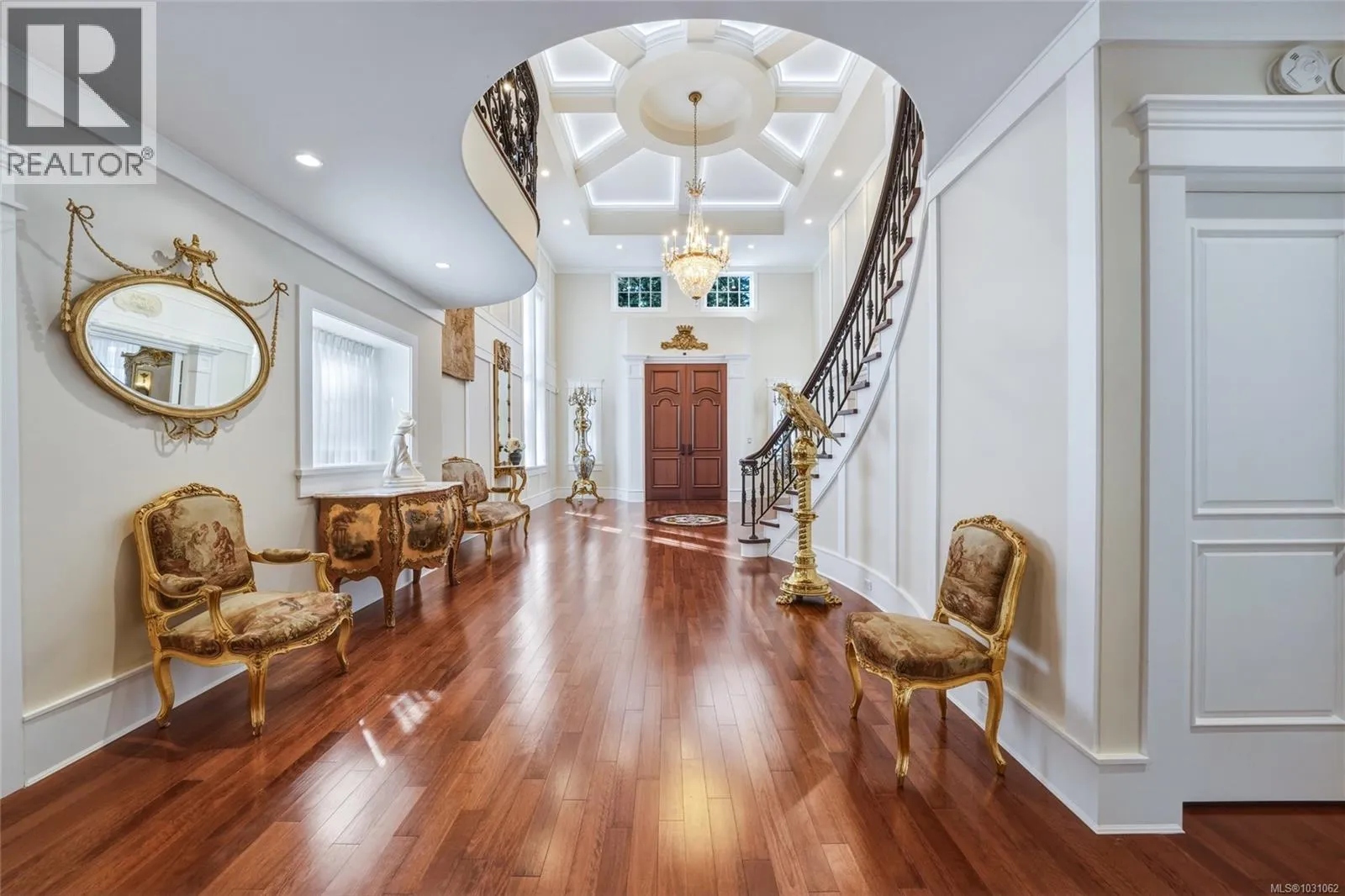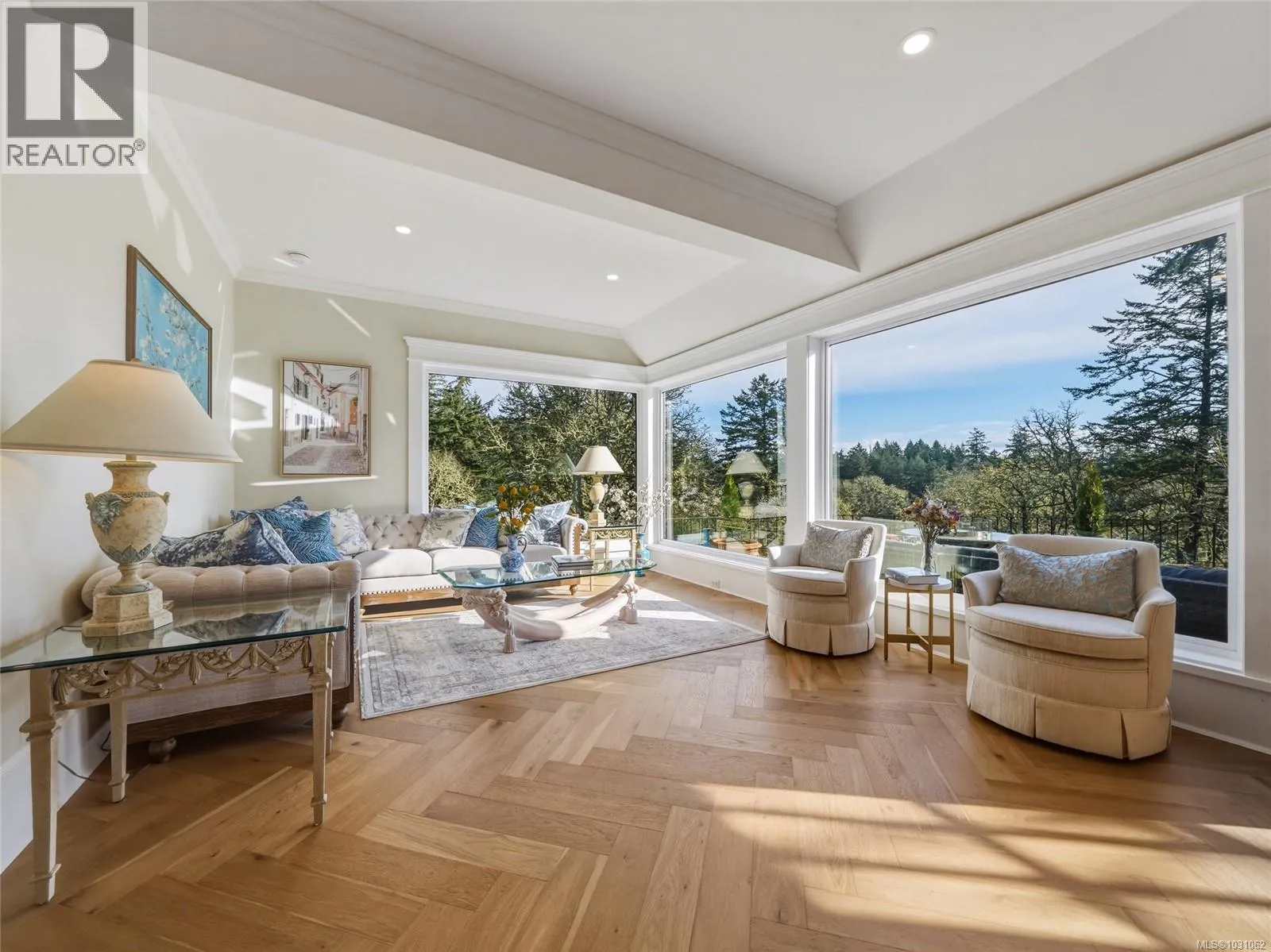 Owlâs Landing is a multiple award-winning, fully rebuilt and expanded 11-acre gated estate completed in 2025 by White Wolf Homes, recognized with CARE Awards including Best Renovation over $1.5M and Best Designer Kitchen. Extensively taken to the studs and reimagined throughout, the residence offers approximately 13,000 sq ft of finished living space with all systems, finishes, and infrastructure newly completed. A grand arrival unfolds through a covered porte-cochère to custom 12-foot entry doors and a dramatic foyer with 20-foot ceilings, anchored by an antique Schonbek chandelier. Designed for both everyday living and entertaining, the home features a spa with sauna, theatre and games room, a resort-style pool with tennis and basketball courts, and a refined primary suite with a full dressing room and a Ritz-Carlton Paris inspired ensuite. A private suite above the garage, oversized three-bay garage, and barn or workshop add flexibility across the usable acreage. The setting offers the rare ability to live privately without sacrificing access, just 15 minutes to downtown Victoria, 25 minutes to the airport and ferries, and within close reach of some of the countryâs top private schools, all supported by direct routes that bypass typical congestion. (id:27476)