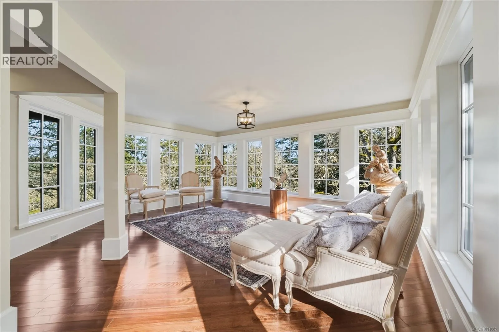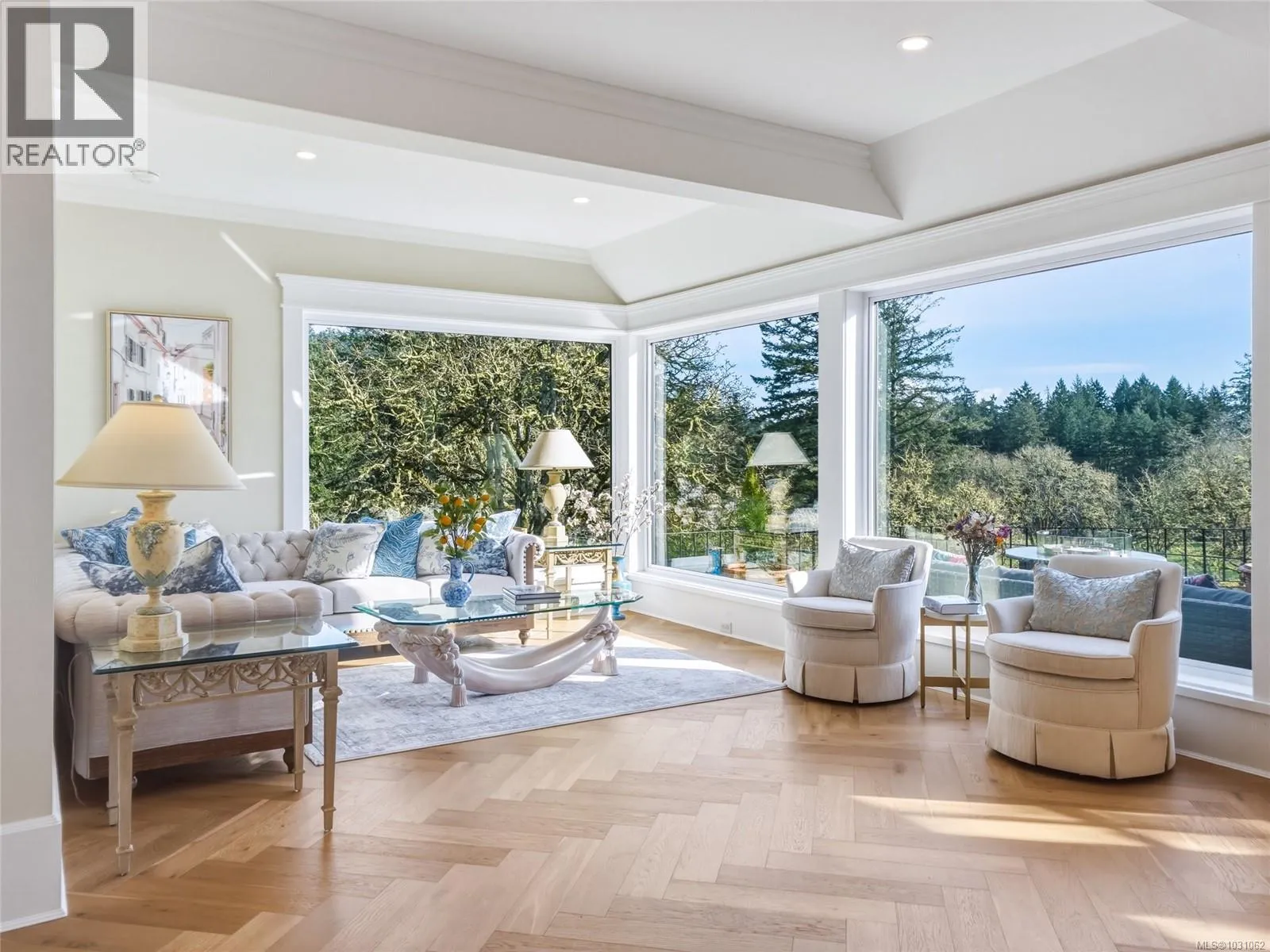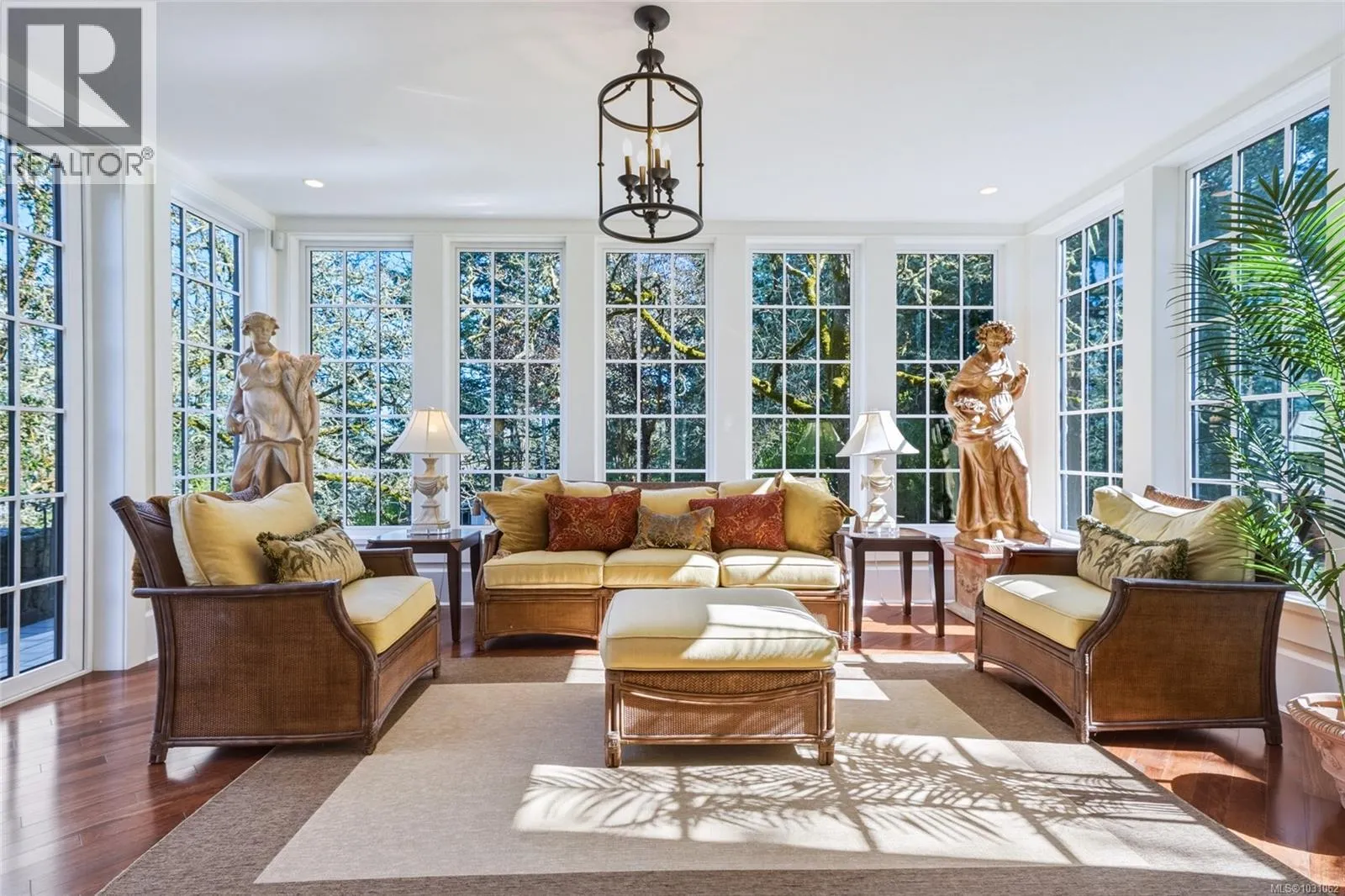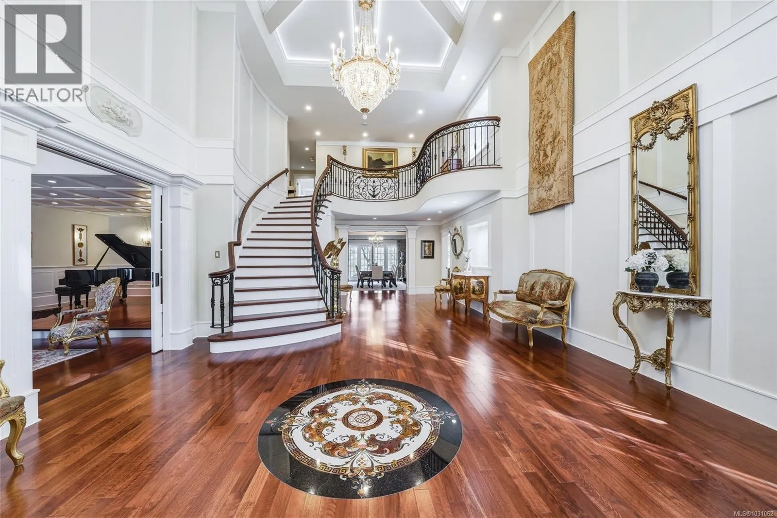 Owlâs Landing is a multiple award-winning, fully rebuilt and expanded 11-acre gated estate completed in 2025 by White Wolf Homes, recognized with CARE Awards including Best Renovation over $1.5M and Best Designer Kitchen. Extensively taken to the studs and reimagined throughout, the residence offers approximately 13,000 sq ft of finished living space with all systems, finishes, and infrastructure newly completed. A grand arrival unfolds through a covered porte-cochère to custom 12-foot entry doors and a dramatic foyer with 20-foot ceilings, anchored by an antique Schonbek chandelier. Designed for both everyday living and entertaining, the home features a spa with sauna, theatre and games room, a resort-style pool with tennis and basketball courts, and a refined primary suite with a full dressing room and a Ritz-Carlton Paris inspired ensuite. A private suite above the garage, oversized three-bay garage, and barn or workshop add flexibility across the usable acreage. The setting offers the rare ability to live privately without sacrificing access, just 15 minutes to downtown Victoria, 25 minutes to the airport and ferries, and within close reach of some of the countryâs top private schools, all supported by direct routes that bypass typical congestion. (id:27476)