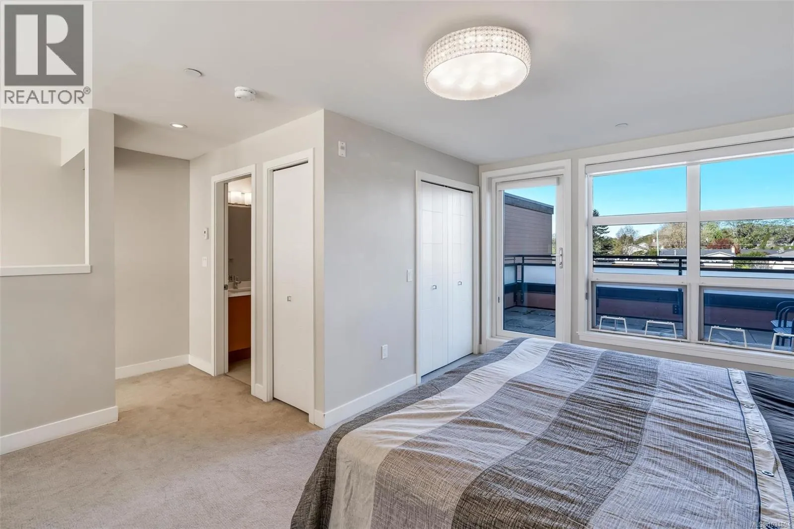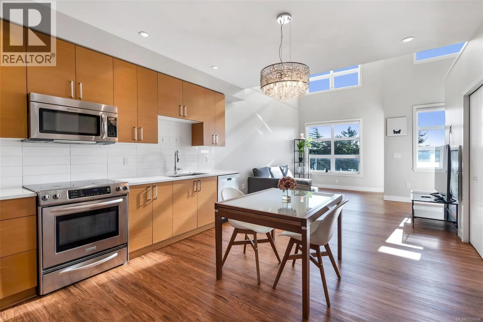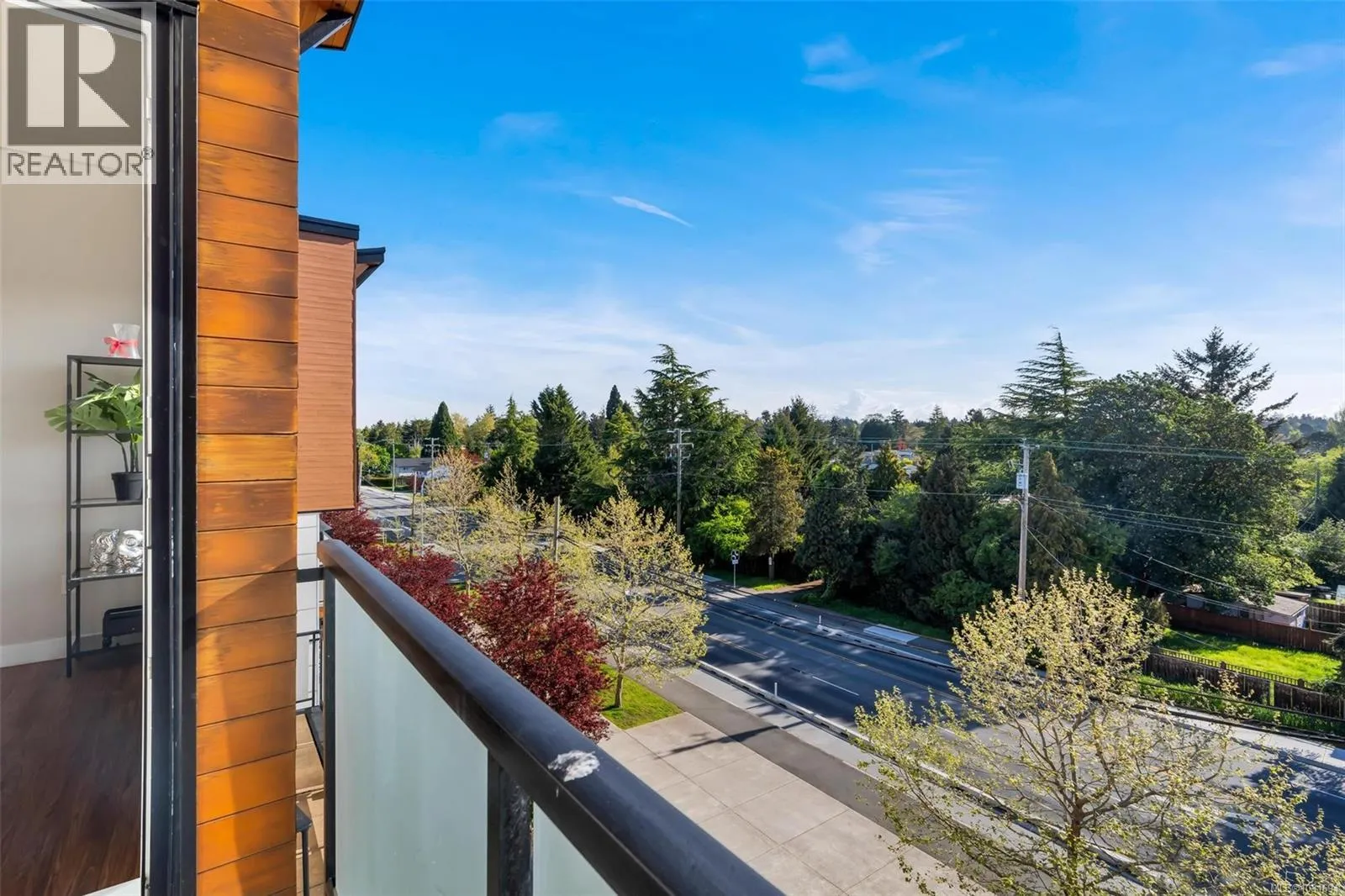 Top-floor two-level loft-style condo with two balconies and beautiful west-facing views! Welcome to The Boulevard, a modern and energy-efficient building located in the highly desirable Gordon Head neighbourhood, just minutes from UVic, shopping, restaurants, parks, and everyday amenities. This bright two-level home features an open-concept layout with engineered hardwood flooring, a contemporary kitchen with high-efficiency appliances, and a spacious living area with impressive ceiling height. The main level includes a versatile den and a full bathroom, while the upper-level primary bedroom offers a 4-piece ensuite and access to a private west-facing balconyâperfect for enjoying sunsets and mountain views. Built to Built Green Gold Standard with geothermal radiant floor heating. Additional features include in-suite laundry, secure underground parking, storage locker, bike storage, and visitor parking. Perfect for homeowners, UVic families, or investors seeking a convenient location. (id:27476)