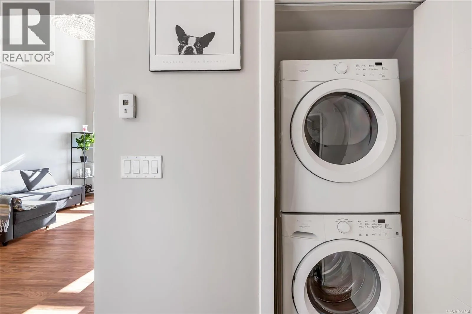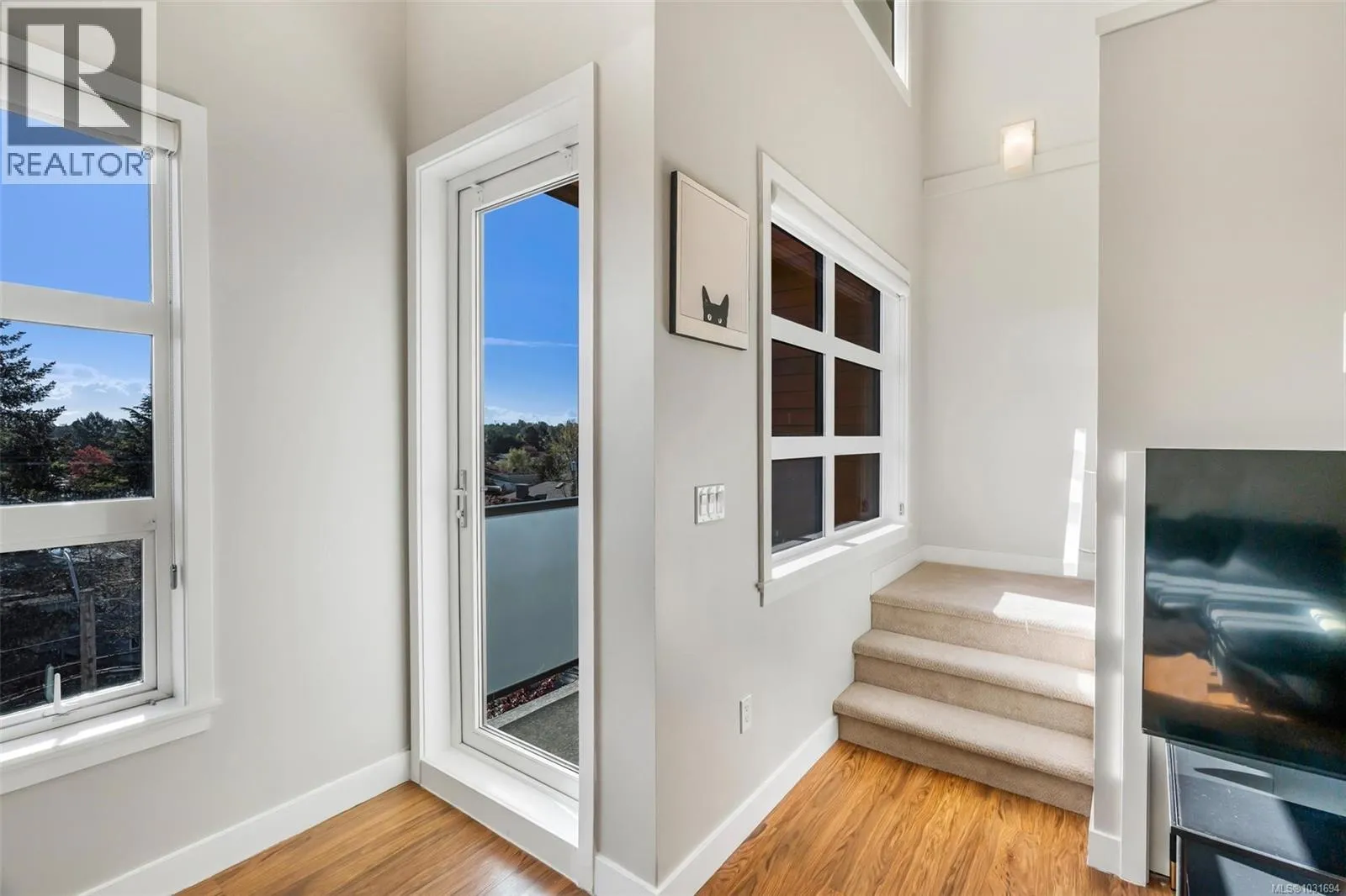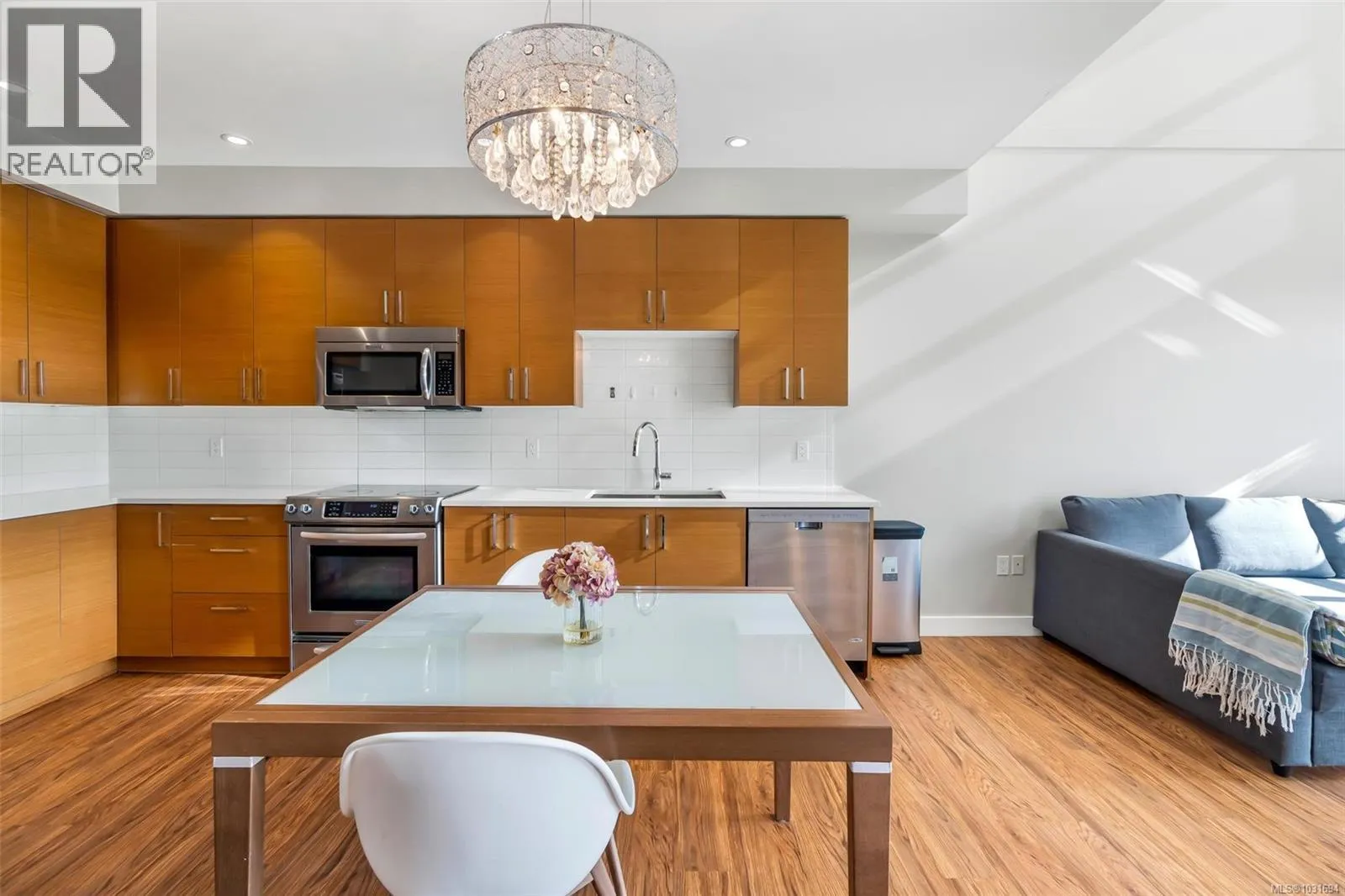 Top-floor two-level loft-style condo with two balconies and beautiful west-facing views! Welcome to The Boulevard, a modern and energy-efficient building located in the highly desirable Gordon Head neighbourhood, just minutes from UVic, shopping, restaurants, parks, and everyday amenities. This bright two-level home features an open-concept layout with engineered hardwood flooring, a contemporary kitchen with high-efficiency appliances, and a spacious living area with impressive ceiling height. The main level includes a versatile den and a full bathroom, while the upper-level primary bedroom offers a 4-piece ensuite and access to a private west-facing balconyâperfect for enjoying sunsets and mountain views. Built to Built Green Gold Standard with geothermal radiant floor heating. Additional features include in-suite laundry, secure underground parking, storage locker, bike storage, and visitor parking. Perfect for homeowners, UVic families, or investors seeking a convenient location. (id:27476)