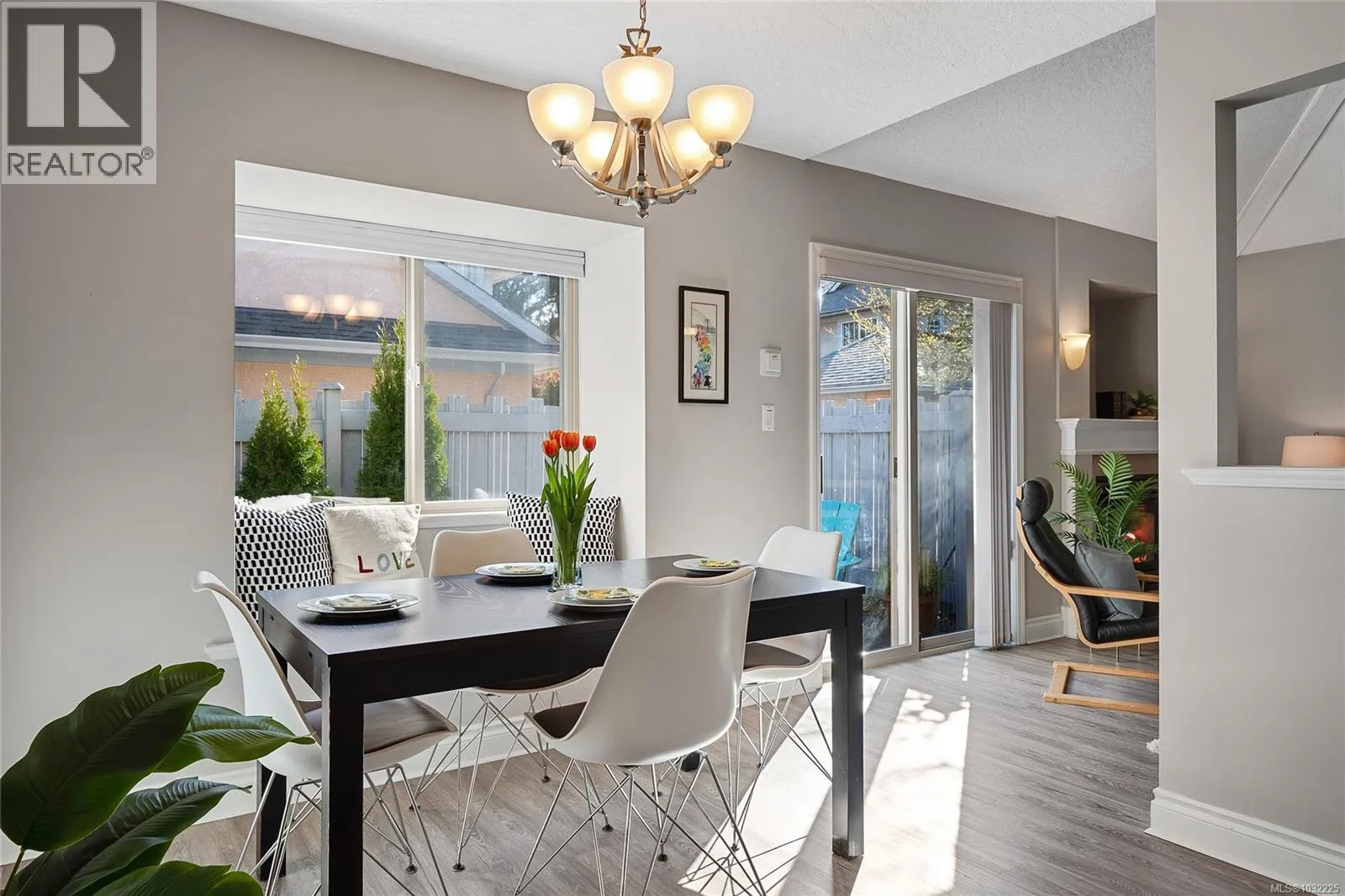 Exuding charm and sophistication, this exquisitely updated free-standing townhouse epitomizes luxury living with its unparalleled attention to detail and exceptional features. Boasting a sun-kissed ambiance, the residence dazzles with its seamless blend of modern amenities and cozy comfort. The main floor dazzles with a grand formal living and dining area, enhanced by a warm gas fireplace, soaring vaulted ceilings, and access to not one, but two private patios. The gourmet kitchen is a chef's delight, opening to a family room and providing access to a convenient half bath, laundry, and an attached garage. Upstairs, the sanctuary continues with two generously sized bedrooms, a luxurious 4-piece bath, and a stunning Master retreat with a spa-like ensuite and walk-in closet. Captivating views of lush greenery, bird-filled skies, and abundant natural light flood the home, creating a serene oasis. A secluded garden paradise, complete with a blossoming patio, two cozy window seats, and a hidden Murphy bed for guests, invites relaxation and tranquility. Nestled within a boutique complex of six units, this hidden gem offers a rare level of privacy and serenity unparalleled in this sought-after location. Explore a lifestyle of elegance and convenience near the renowned University of Victoria, Tuscany Village, schools, and public transportation, with the added convenience of an attached garage, second parking space, and visitor parking. Experience the epitome of refined living in this exclusive retreat that seamlessly blends luxury, comfort, and style in a truly magical setting. (id:27476)