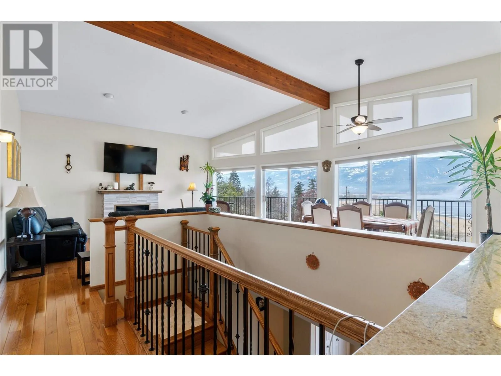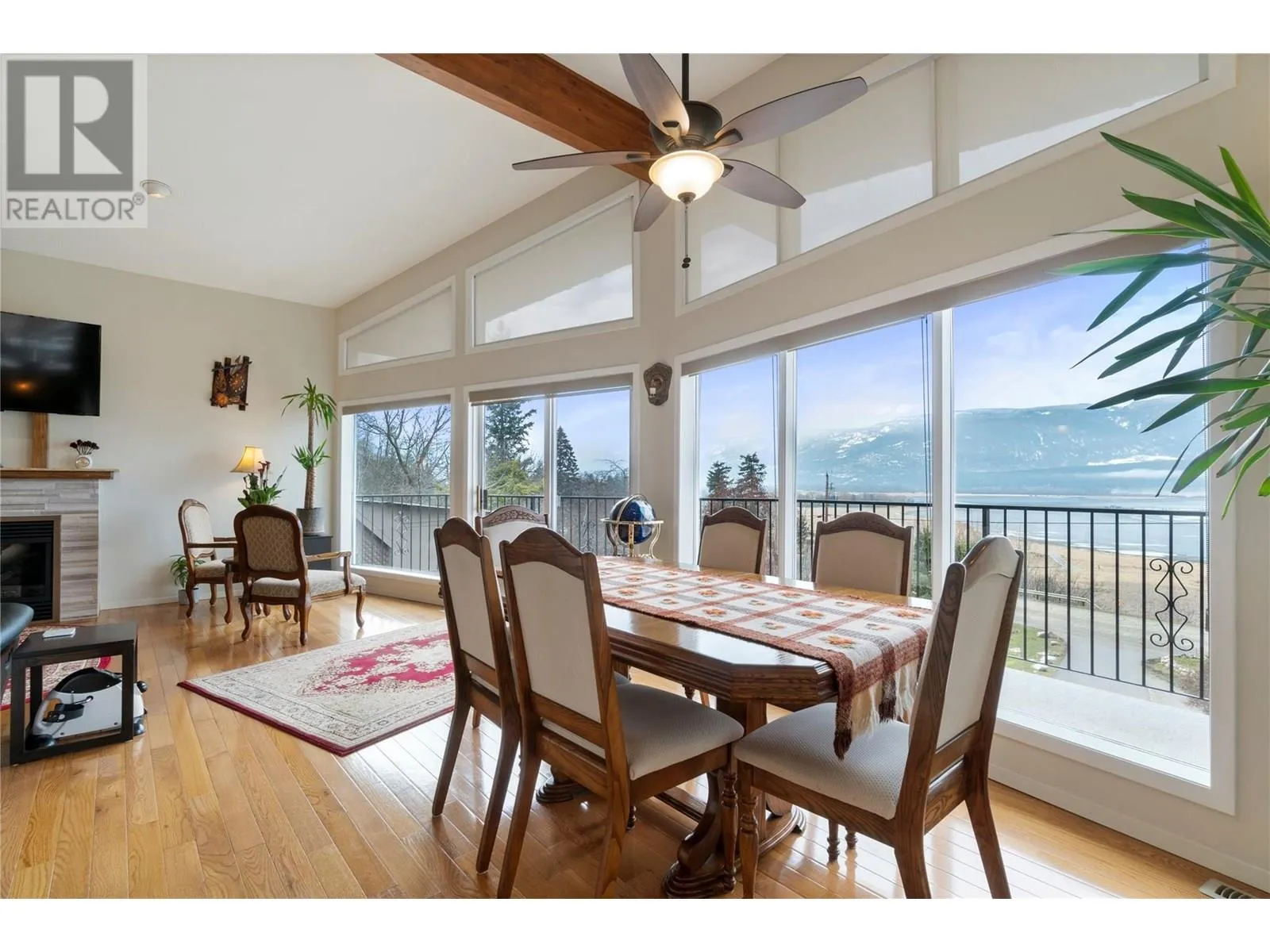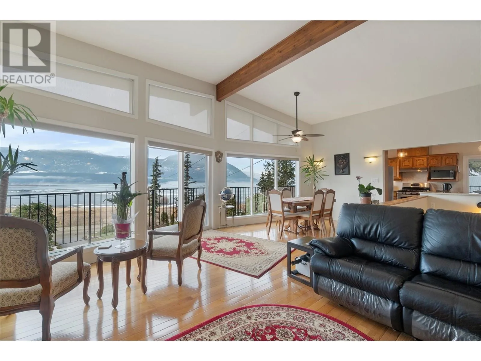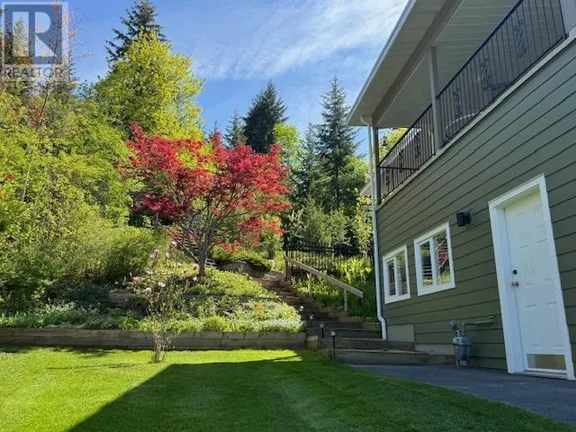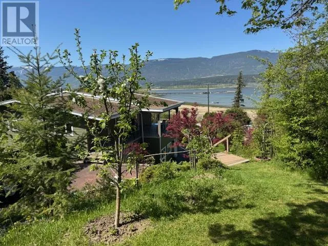This exceptional property was built for breathtaking 180-degree lake with wharf and mountain views. This PEARL on LAKESHORE Road is in prime location near the foreshore trail, bird sanctuary, and Shuswap Lake. Designed to maximize natural light, expansive windows frame the stunning scenery, enhancing the open and airy living space. The living room features soaring ceilings, oversized windows, and a cozy gas fireplaceâperfect for relaxing evenings. Step onto the covered deck, thoughtfully gated for child and pet safety, or unwind on the private paver stone patio, pre-wired for a hot tub. The main floor showcases elegant oak hardwood, bamboo flooring in the primary bedroom, and travertine tile in the foyer and hallway. The open-concept kitchen is a chefâs delight, featuring Golden Kashmir granite countertops, a marble backsplash, and a gas range (with 220V available). A spacious games/rec room and a convenient main-floor laundry room add to the home's functionality. The heated double garage ensures year-round comfort and convenience. Significant upgrades including, high-efficiency furnace (2022), new Hardie board siding, Dura Deck, and soffits (2023). Situated on 1.5 acres across two titles (1.39 acres zoned R-14 and 0.11 acres zoned R-4), the property includes two sheds, fruit and ornamental trees, a well-established garden, and ample parking. Low maintenance acreage with fruit trees and unparalleled views with endless possibilities! (id:27476)