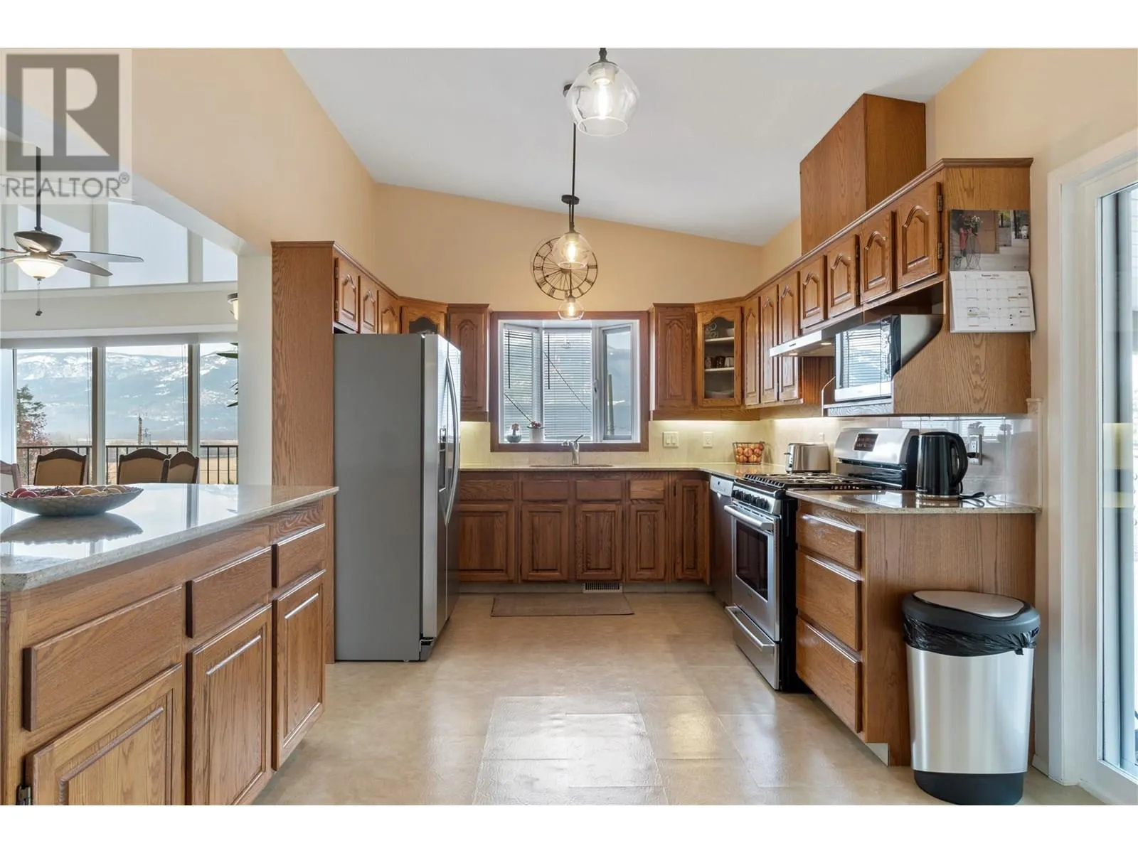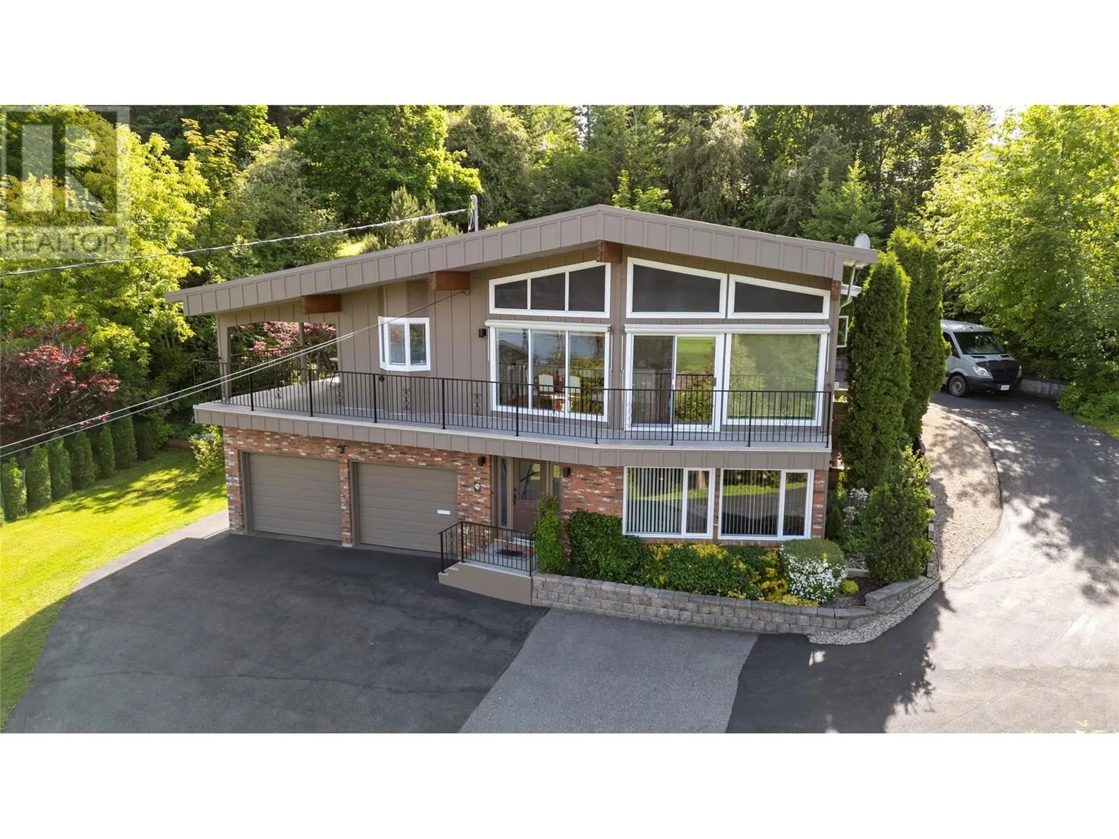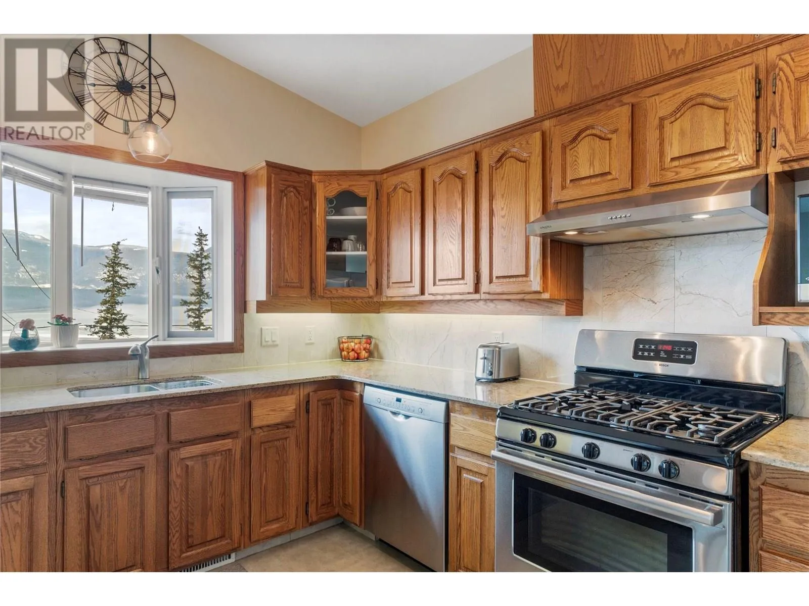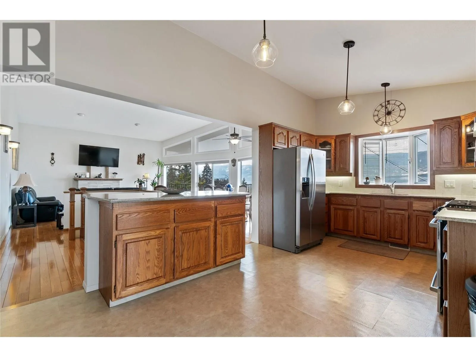This exceptional property was built for breathtaking 180-degree lake with wharf and mountain views. This PEARL on LAKESHORE Road is in prime location near the foreshore trail, bird sanctuary, and Shuswap Lake. Designed to maximize natural light, expansive windows frame the stunning scenery, enhancing the open and airy living space. The living room features soaring ceilings, oversized windows, and a cozy gas fireplaceâperfect for relaxing evenings. Step onto the covered deck, thoughtfully gated for child and pet safety, or unwind on the private paver stone patio, pre-wired for a hot tub. The main floor showcases elegant oak hardwood, bamboo flooring in the primary bedroom, and travertine tile in the foyer and hallway. The open-concept kitchen is a chefâs delight, featuring Golden Kashmir granite countertops, a marble backsplash, and a gas range (with 220V available). A spacious games/rec room and a convenient main-floor laundry room add to the home's functionality. The heated double garage ensures year-round comfort and convenience. Significant upgrades including, high-efficiency furnace (2022), new Hardie board siding, Dura Deck, and soffits (2023). Situated on 1.5 acres across two titles (1.39 acres zoned R-14 and 0.11 acres zoned R-4), the property includes two sheds, fruit and ornamental trees, a well-established garden, and ample parking. Low maintenance acreage with fruit trees and unparalleled views with endless possibilities! (id:27476)