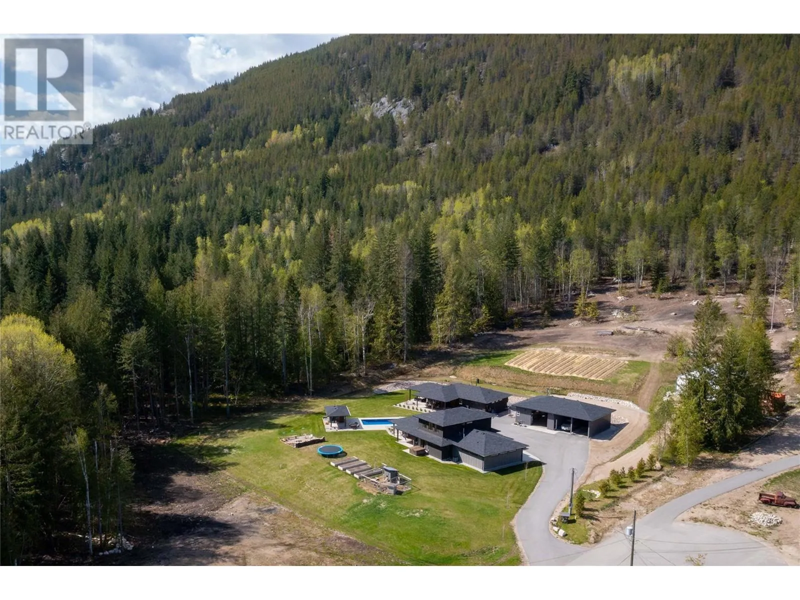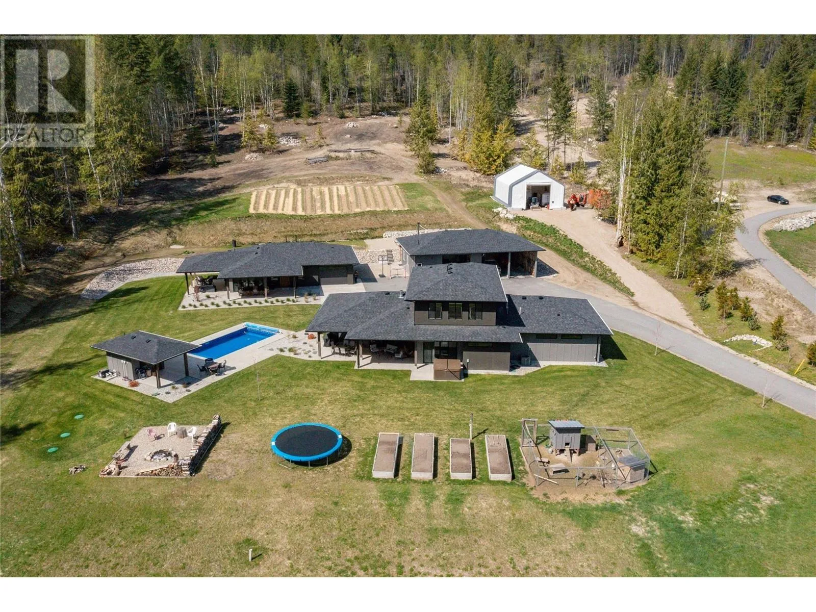 5 acres with two very top end solid beautiful homes built in 2022, with in ground pool, shop and coverall storage, great spot for multigenerational living, Main home 2255 finished sq.ft, 3 bedroom + Den, open Kitchen Livingroom, Large Primary bedroom with ensuite and walkin closet, Outdoor covered dining and lounge area, 2 bedrooms upstairs with a full bathroom and family room, oversized attached heated double garage, infloor heating, A/C tons of extras, 2 nd. Home almost 1000 sq.ft open plan Kitchen Livingroom plus lots of covered outdoor living space, Primary bedroom, ensuite, walkin closet, attached heat garage. Heated Shop 30x32 plus 24x32 open storage, 30x48 coverall building for extra storage, Automatic Generac Natural Gas Generator runs both homes if needed, 28x14 inground heated pool with a bathroom in the pool house, paved driveway and area between houses, 8 gpm drilled well, partially cleared 5 acres with a ¼ acre in garlic, lots of room to play, This property shows and feels brand new, excellent for two families or second home as a rental. (id:27476)