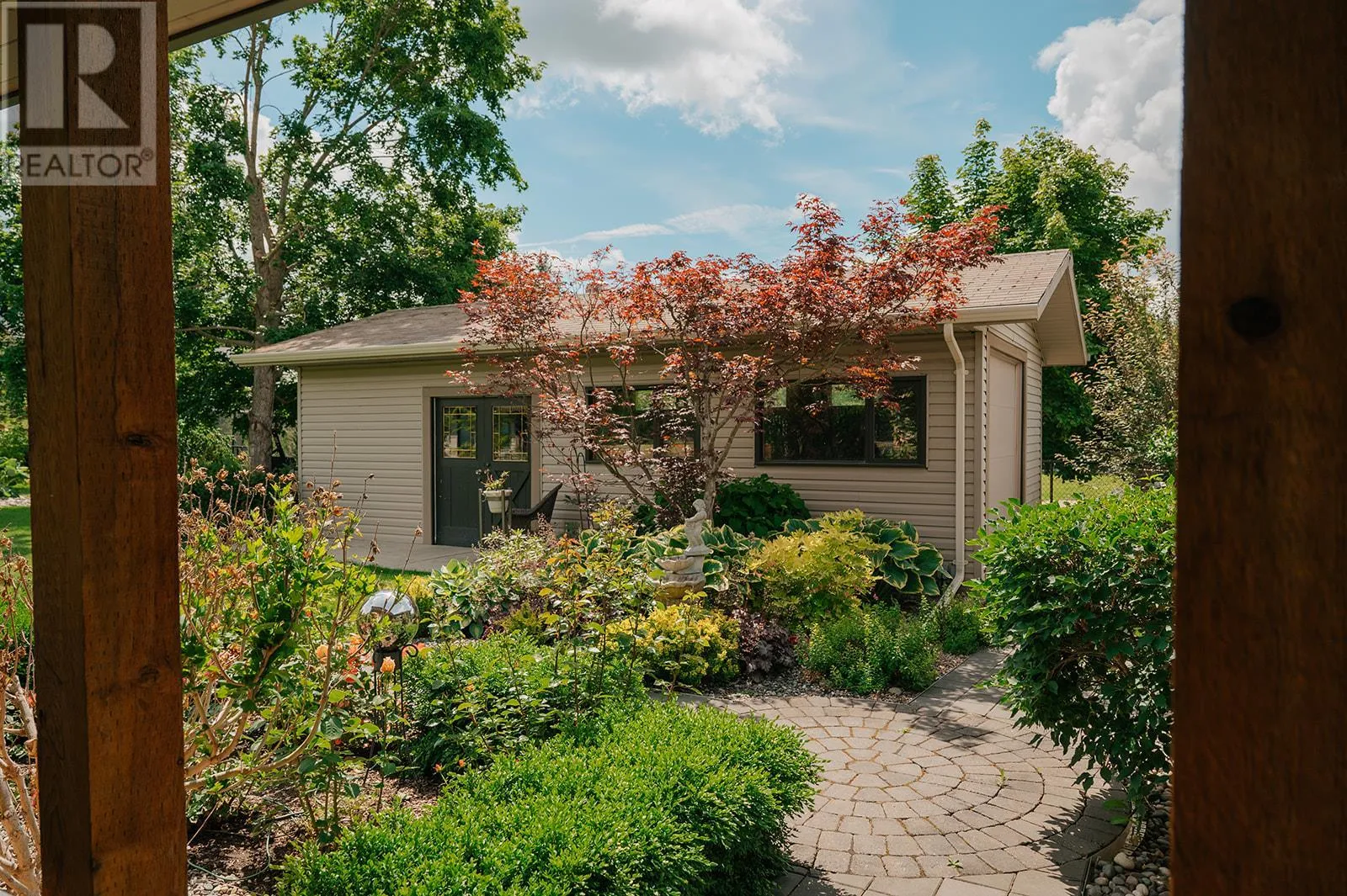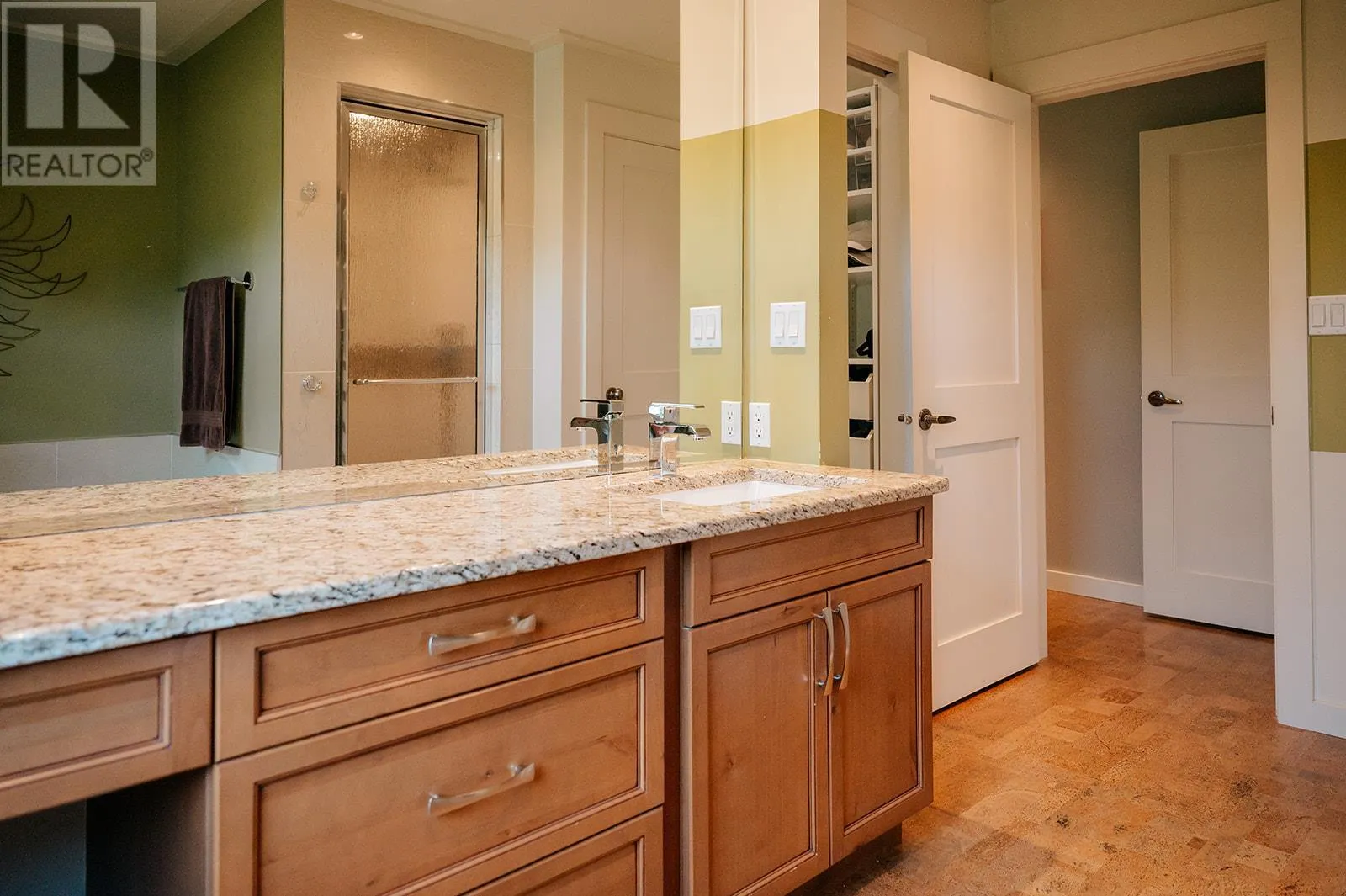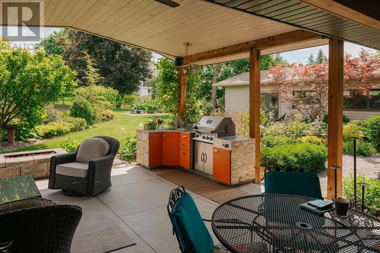 Totally renovated level entry rancher on a pristine 1/2 acre lot in NE Salmon Arm. Open concept living area, kitchen and office on main level. The spacious kitchen with large island eating bar, offers a beautiful view of the backyard. Large master suite with walk-in closet, steam shower and soaker tub. Step out of the kitchen to a sizeable covered patio which includes an outdoor BBQ kitchen. Perfect for entertaining or just enjoying the day outside. Lower level has a bright generous family room, games room, and guest room with full bath. There is additional unfinished space currently used for crafting available to customize for personal use. Year round comfort provided by a natural gas furnace, AC and gas fireplaces up and down. This home features large windows throughout that frame beautifully landscaped gardens, high end finishes with granite countertops and cork floors in the main living area for warmth and easy maintenance. Plenty of parking for all the toys with double attached garage and 16âx32â shop. Bonus: a luxurious king sized suite guest house with views of the gardens. (id:27476)