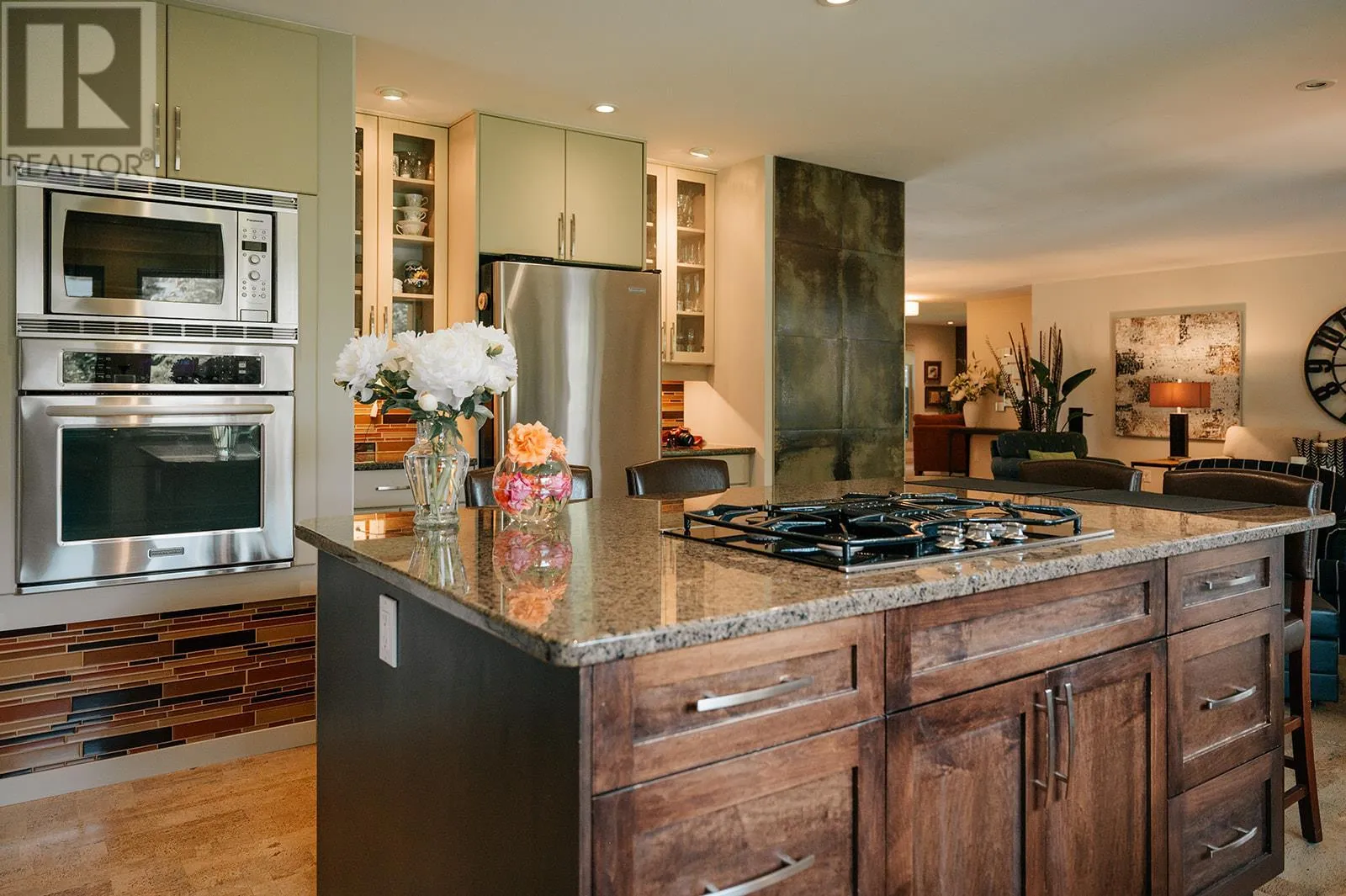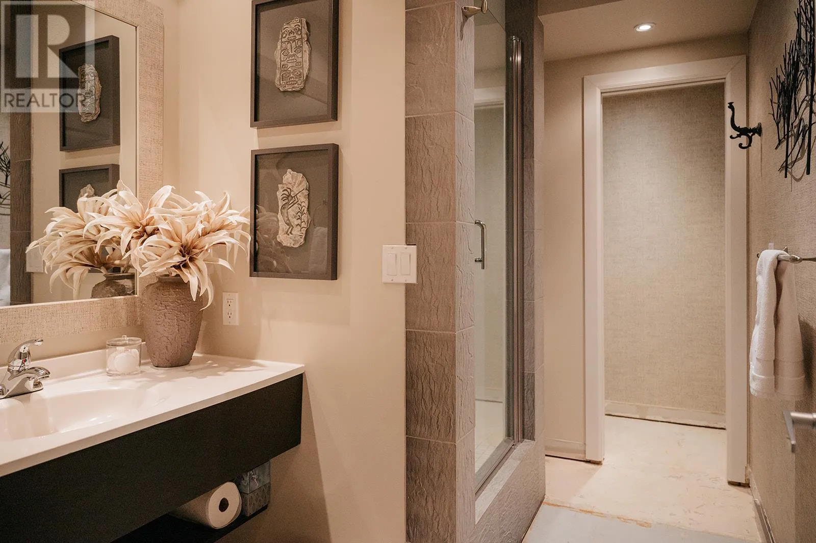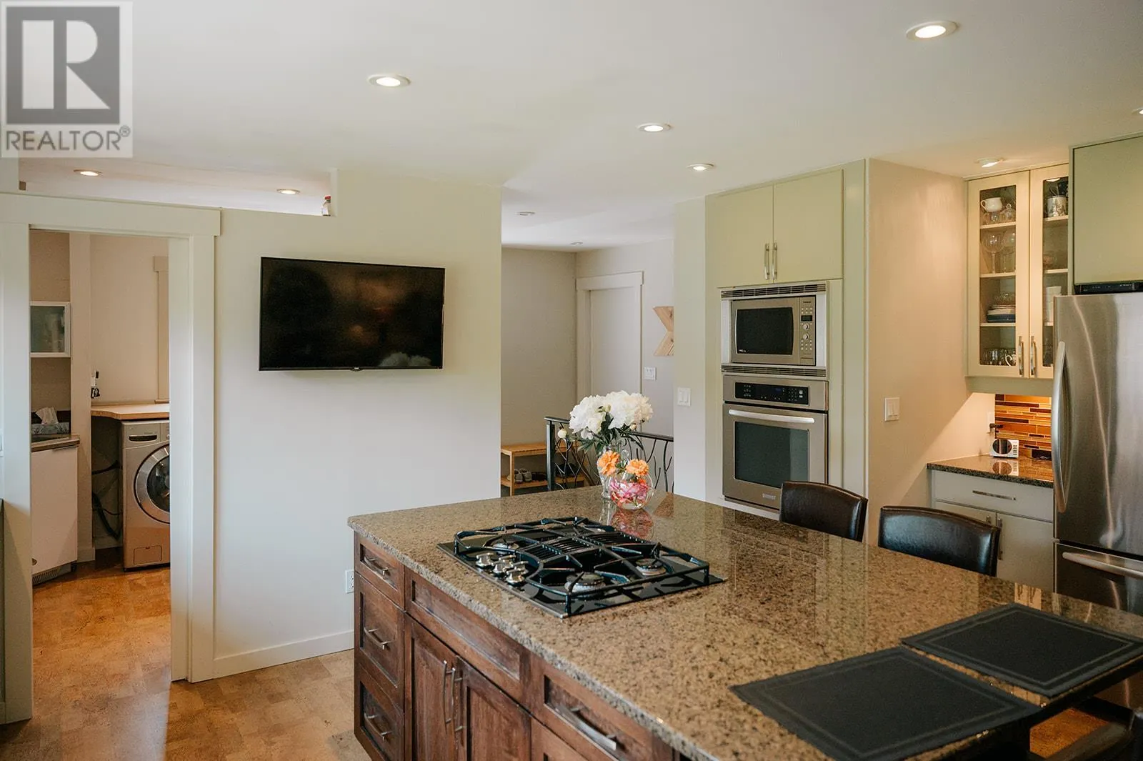 Totally renovated level entry rancher on a pristine 1/2 acre lot in NE Salmon Arm. Open concept living area, kitchen and office on main level. The spacious kitchen with large island eating bar, offers a beautiful view of the backyard. Large master suite with walk-in closet, steam shower and soaker tub. Step out of the kitchen to a sizeable covered patio which includes an outdoor BBQ kitchen. Perfect for entertaining or just enjoying the day outside. Lower level has a bright generous family room, games room, and guest room with full bath. There is additional unfinished space currently used for crafting available to customize for personal use. Year round comfort provided by a natural gas furnace, AC and gas fireplaces up and down. This home features large windows throughout that frame beautifully landscaped gardens, high end finishes with granite countertops and cork floors in the main living area for warmth and easy maintenance. Plenty of parking for all the toys with double attached garage and 16âx32â shop. Bonus: a luxurious king sized suite guest house with views of the gardens. (id:27476)