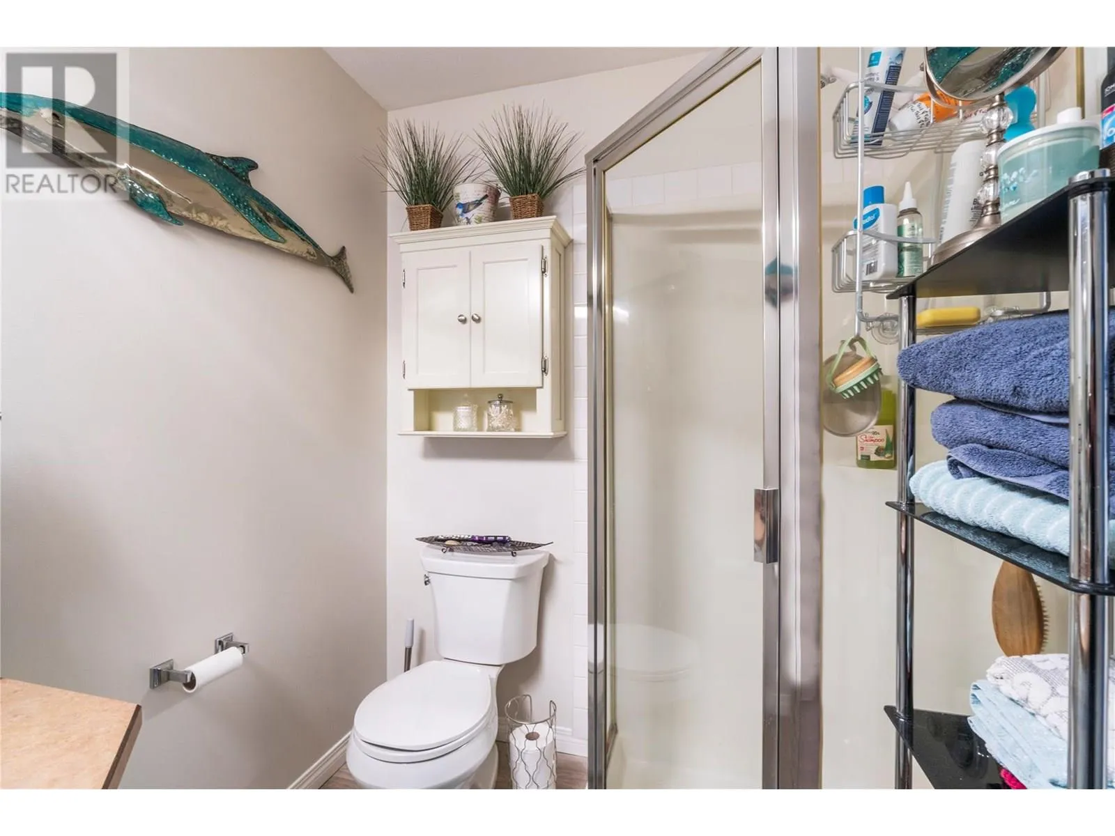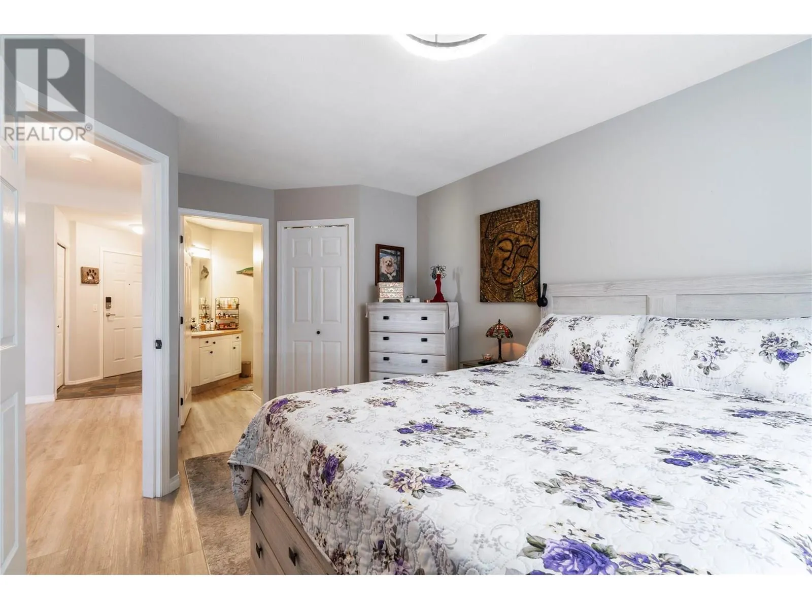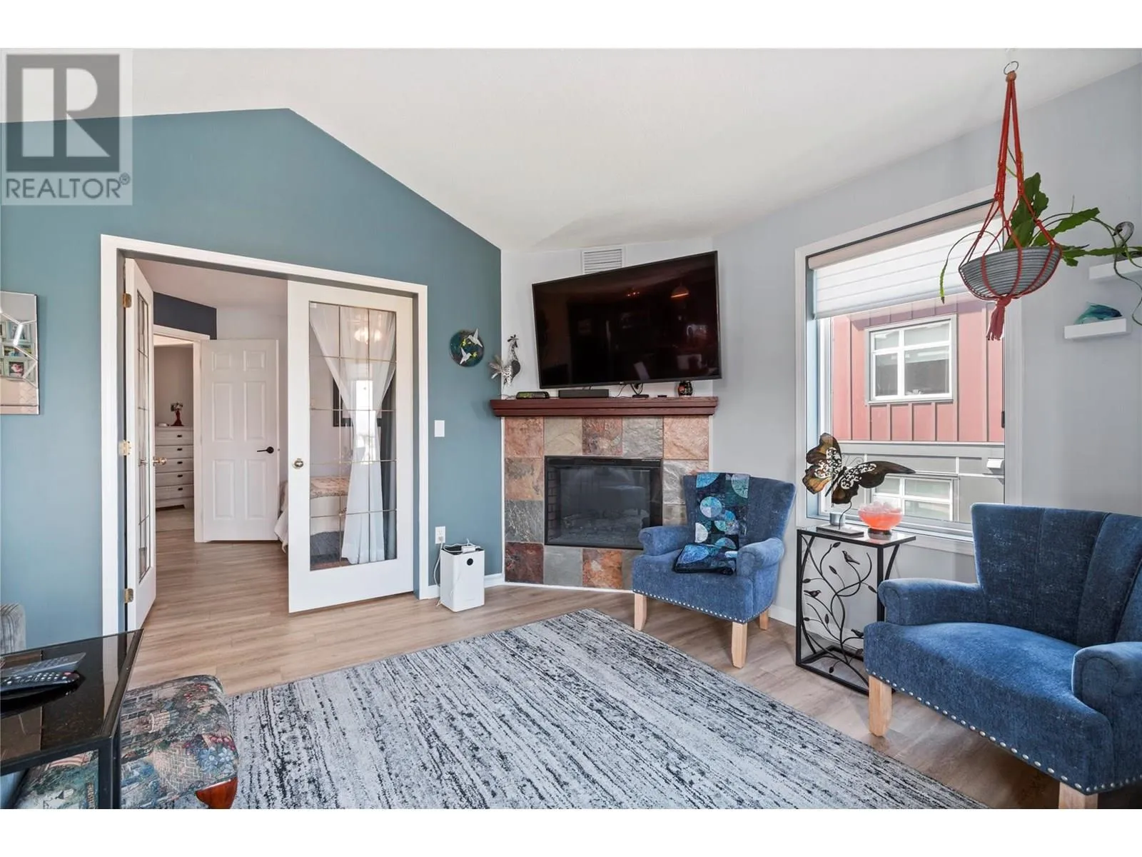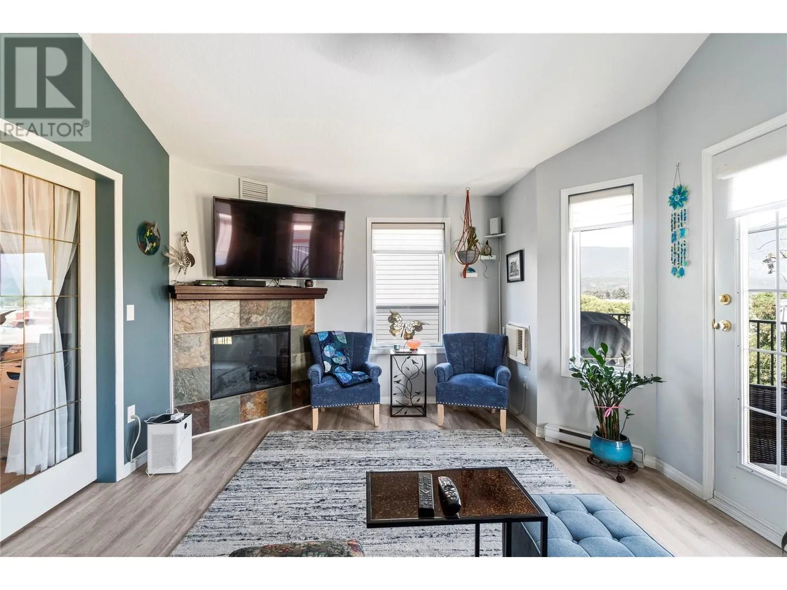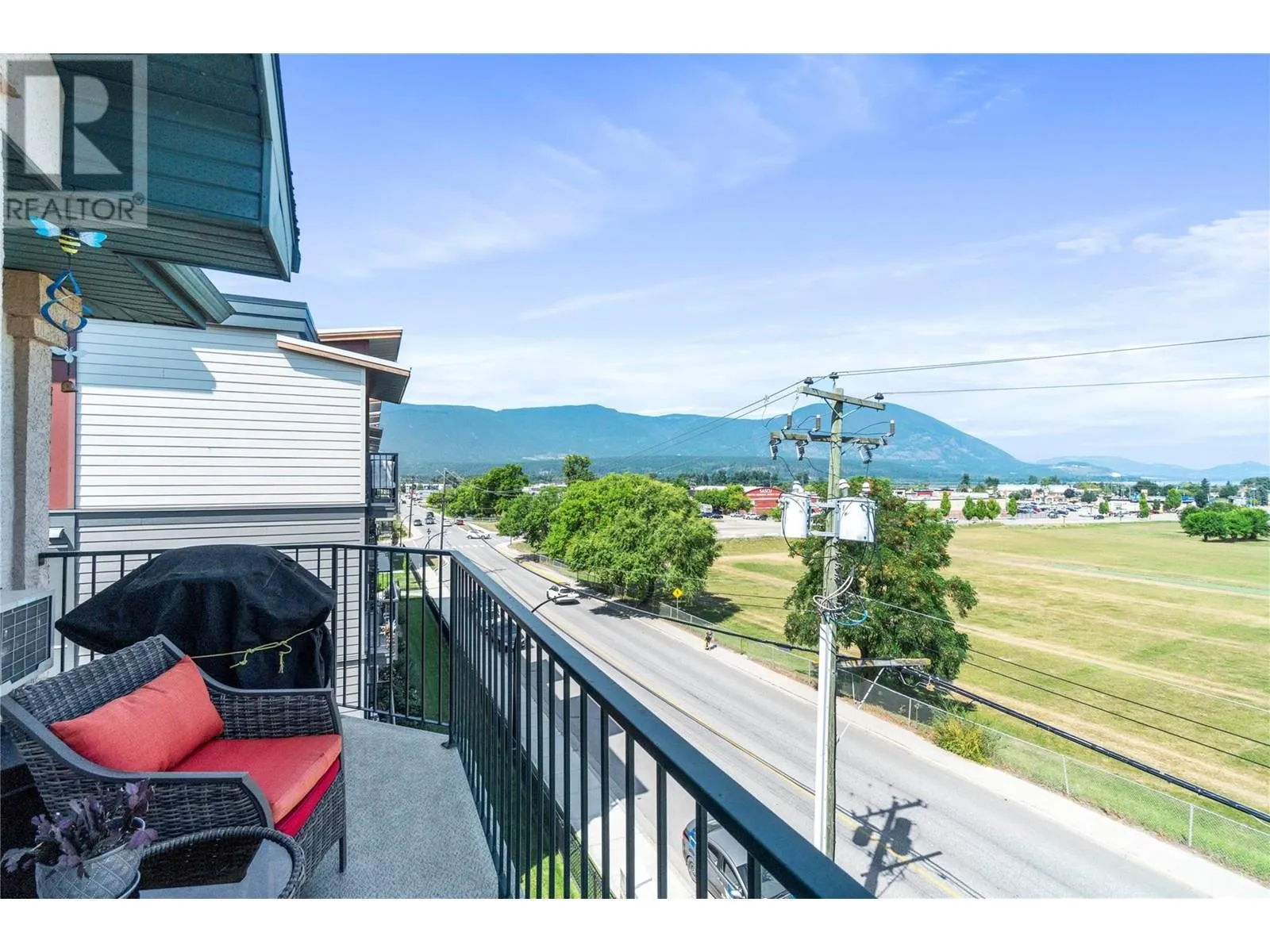 Welcome to The Okanagan â where comfort, style, and lakeview living come together in this updated top-floor lake facing 2-bedroom, 2-bathroom condo. Vaulted ceilings and an electric fireplace really make the light-filled living room pop. Open-concept layout with French doors from living rm to the second bedroom or easily use as a den. Step out onto your balcony to enjoy morning coffee and the Shuswap Lake and Mountains views. The primary bedroom includes a walk-in closet and ensuite w/ walk in shower. There is a full laundry room with space for extra storage, a separate storage locker in the building, and covered parking spot. The Okanagan has an elevator and the central hot water is included in strata. Located in the heart of Salmon Arm, youâre walking distance to shopping, the fairgrounds, restaurants, the Farmers Market, parks, and trails. No age restrictions, pet-friendly (1 under 14â 1 dog OR 1 cat), and rentals allowed. This is easy, living in the Shuswap community. (id:27476)