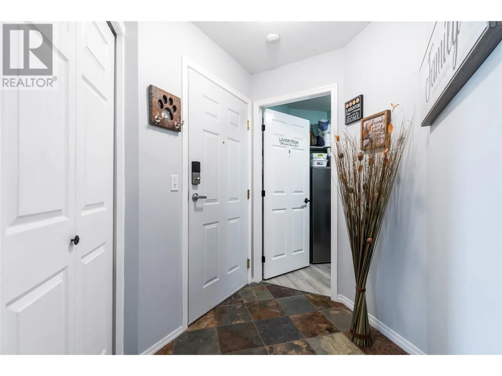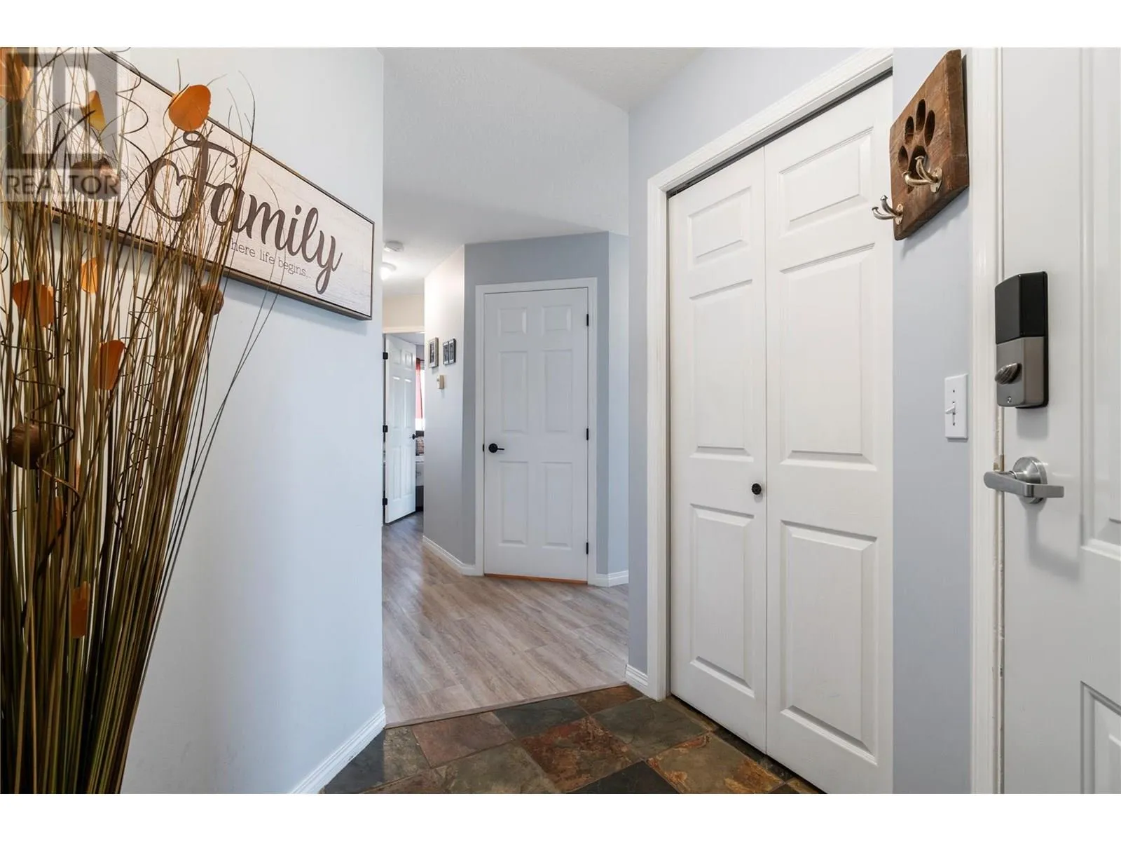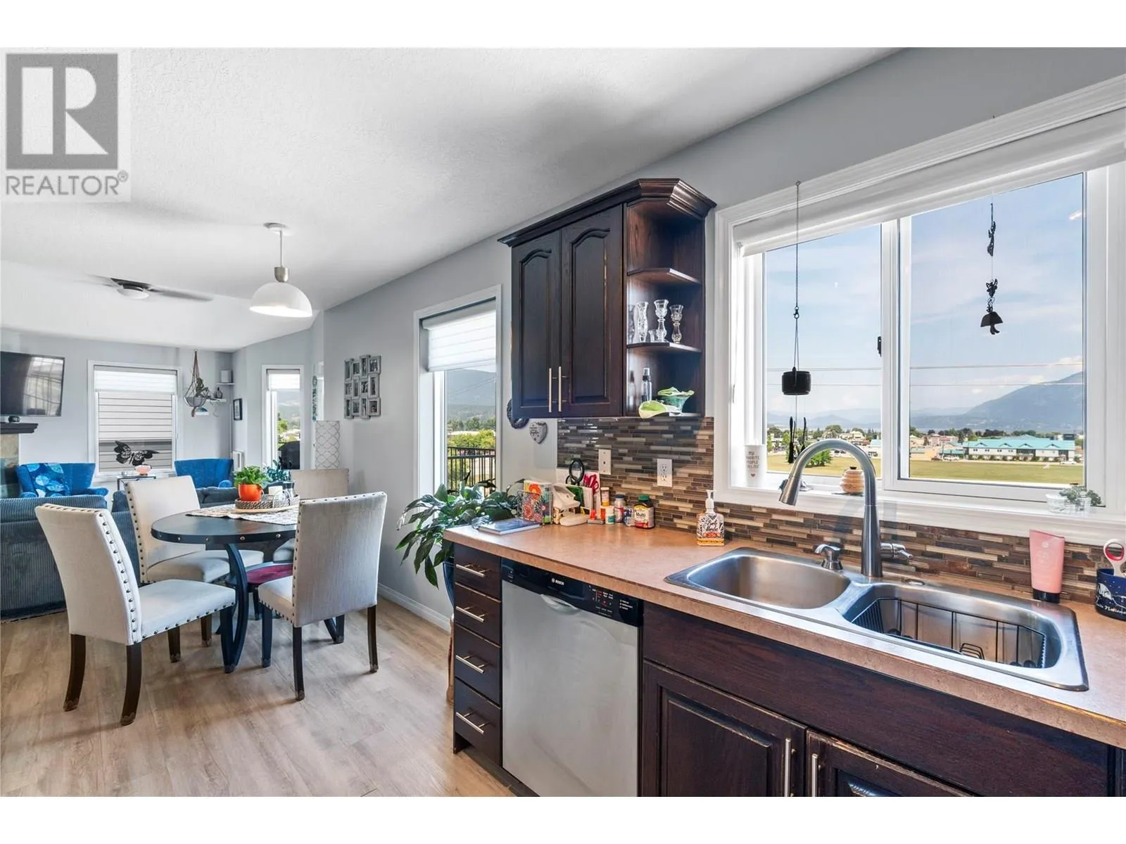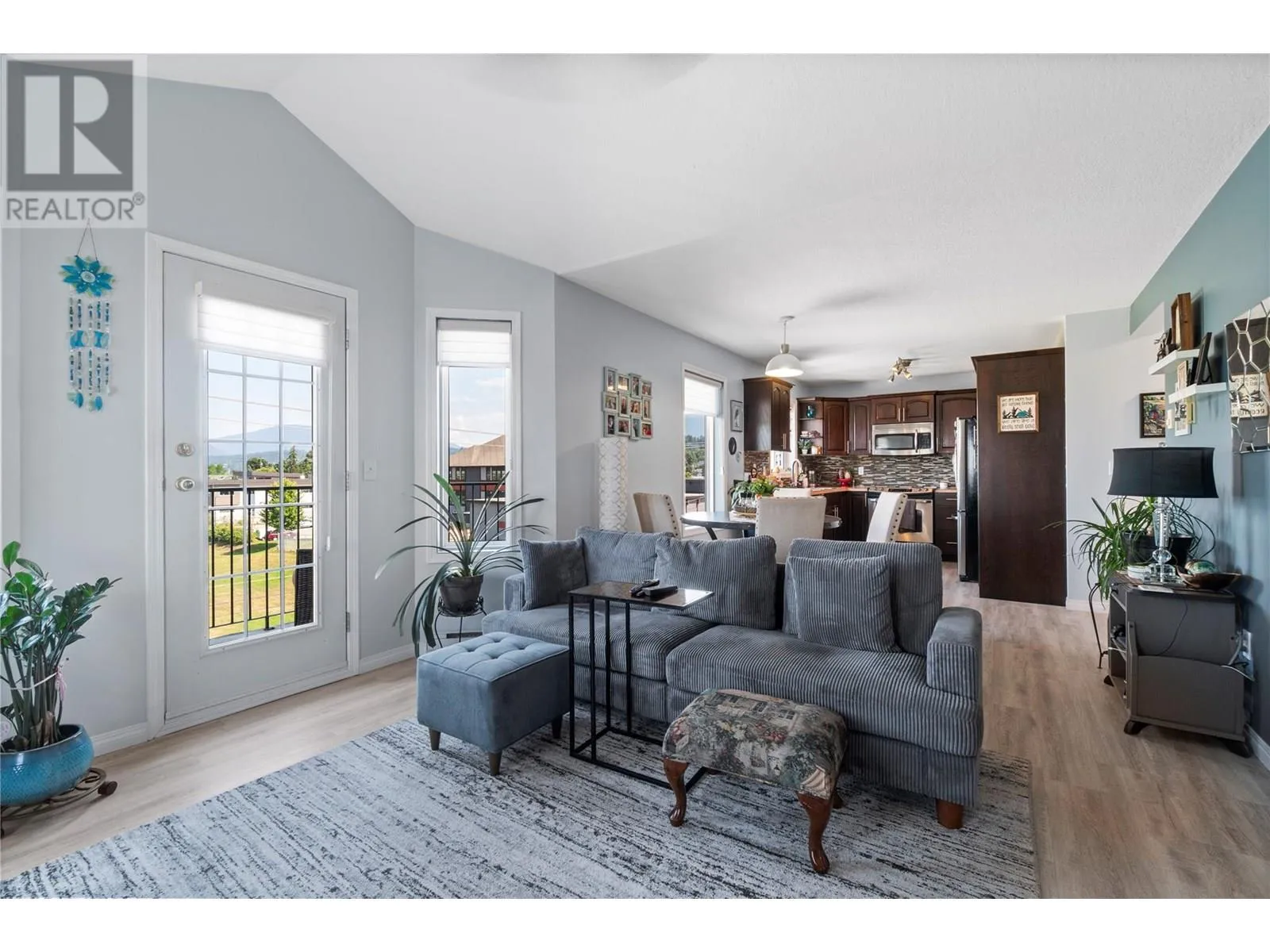 Welcome to The Okanagan â where comfort, style, and lakeview living come together in this updated top-floor lake facing 2-bedroom, 2-bathroom condo. Vaulted ceilings and an electric fireplace really make the light-filled living room pop. Open-concept layout with French doors from living rm to the second bedroom or easily use as a den. Step out onto your balcony to enjoy morning coffee and the Shuswap Lake and Mountains views. The primary bedroom includes a walk-in closet and ensuite w/ walk in shower. There is a full laundry room with space for extra storage, a separate storage locker in the building, and covered parking spot. The Okanagan has an elevator and the central hot water is included in strata. Located in the heart of Salmon Arm, youâre walking distance to shopping, the fairgrounds, restaurants, the Farmers Market, parks, and trails. No age restrictions, pet-friendly (1 under 14â 1 dog OR 1 cat), and rentals allowed. This is easy, living in the Shuswap community. (id:27476)