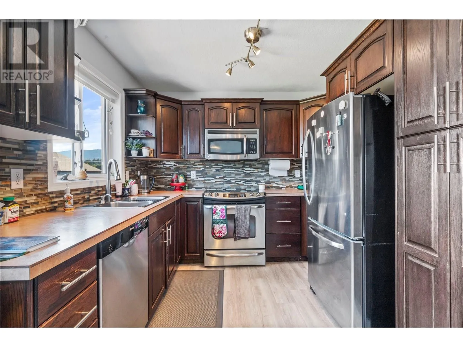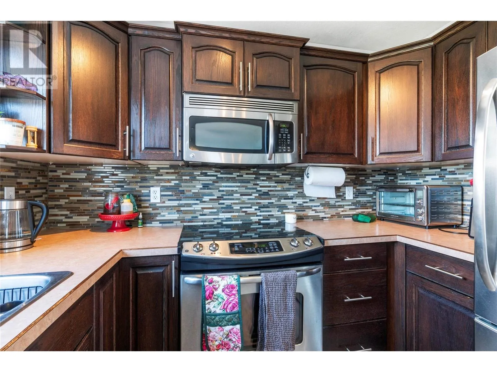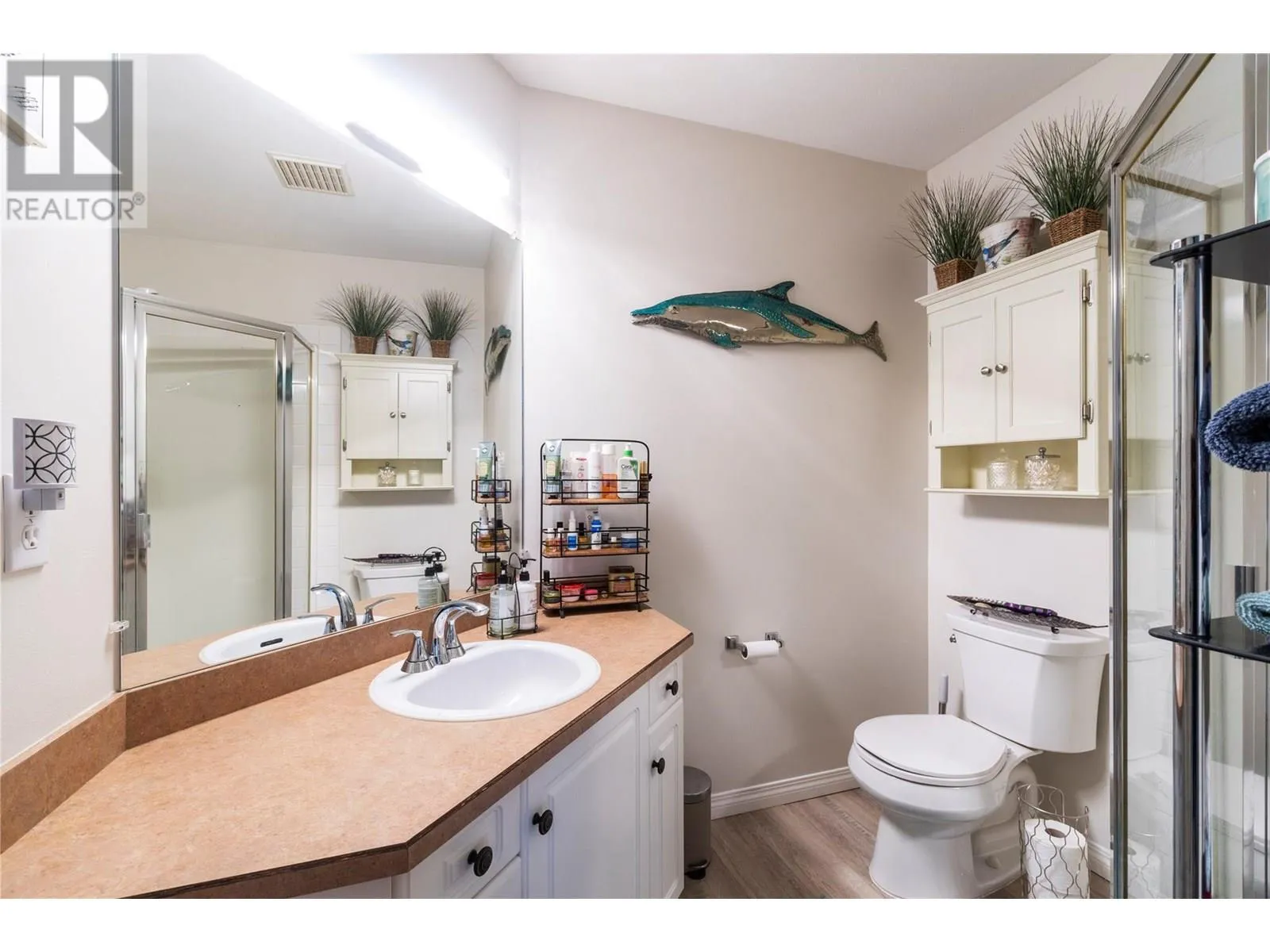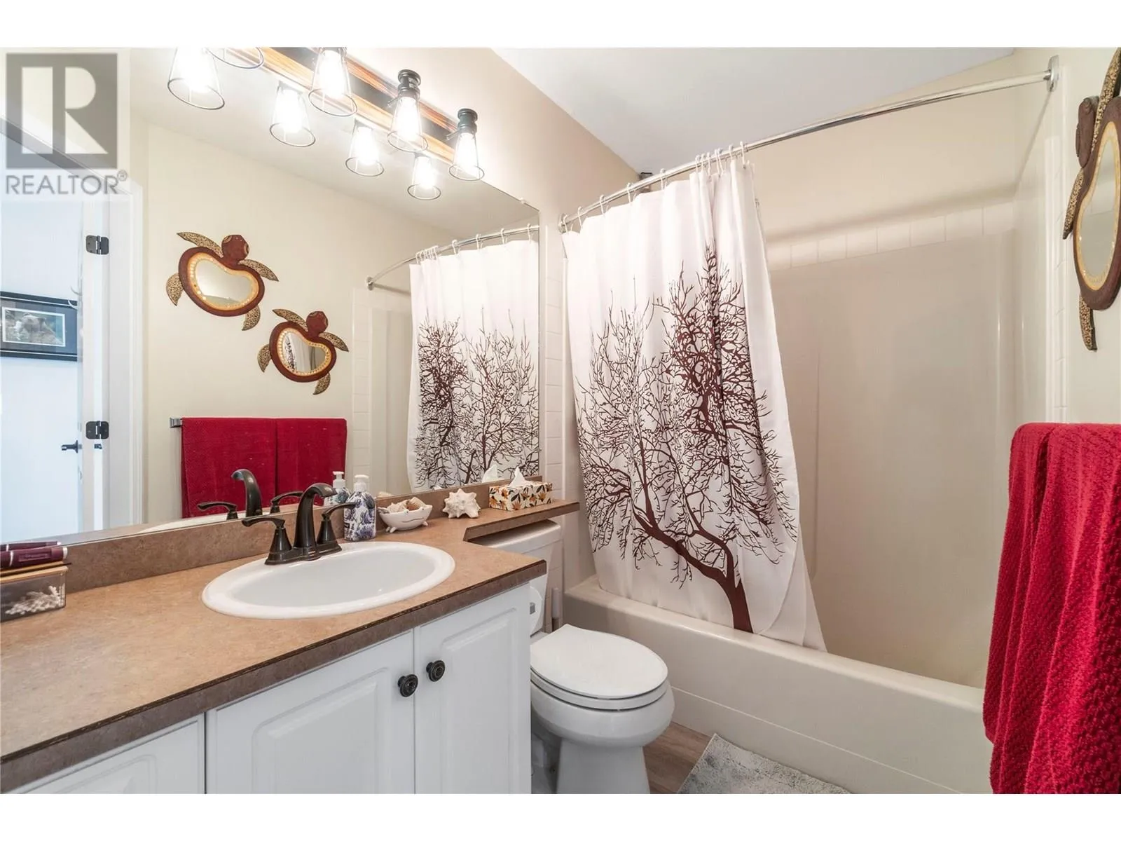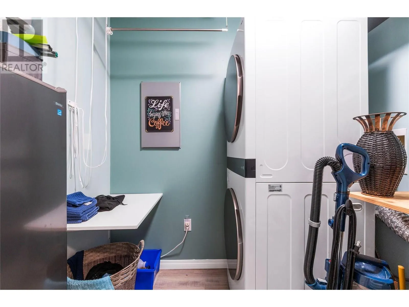Welcome to The Okanagan â where comfort, style, and lakeview living come together in this updated top-floor lake facing 2-bedroom, 2-bathroom condo. Vaulted ceilings and an electric fireplace really make the light-filled living room pop. Open-concept layout with French doors from living rm to the second bedroom or easily use as a den. Step out onto your balcony to enjoy morning coffee and the Shuswap Lake and Mountains views. The primary bedroom includes a walk-in closet and ensuite w/ walk in shower. There is a full laundry room with space for extra storage, a separate storage locker in the building, and covered parking spot. The Okanagan has an elevator and the central hot water is included in strata. Located in the heart of Salmon Arm, youâre walking distance to shopping, the fairgrounds, restaurants, the Farmers Market, parks, and trails. No age restrictions, pet-friendly (1 under 14â 1 dog OR 1 cat), and rentals allowed. This is easy, living in the Shuswap community. (id:27476)