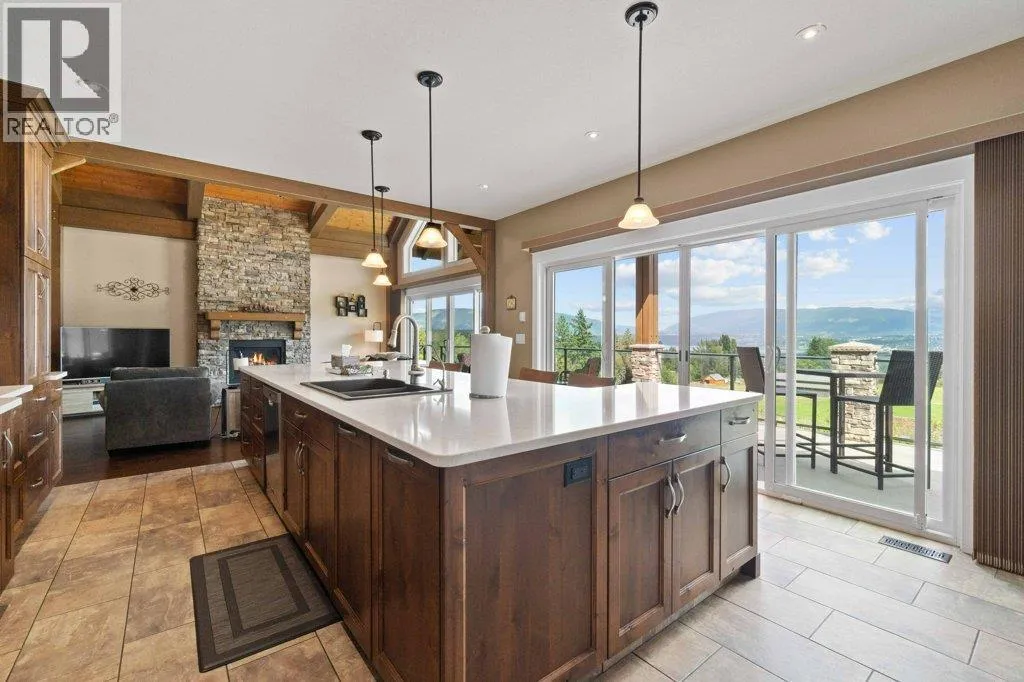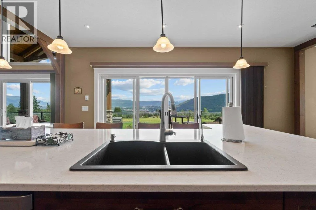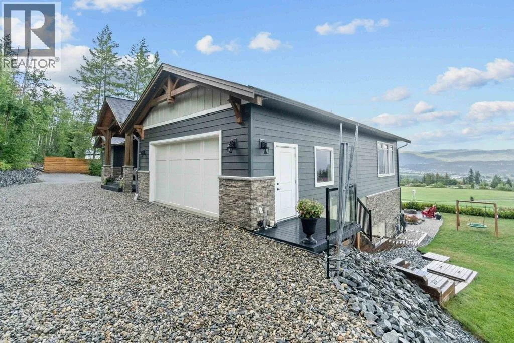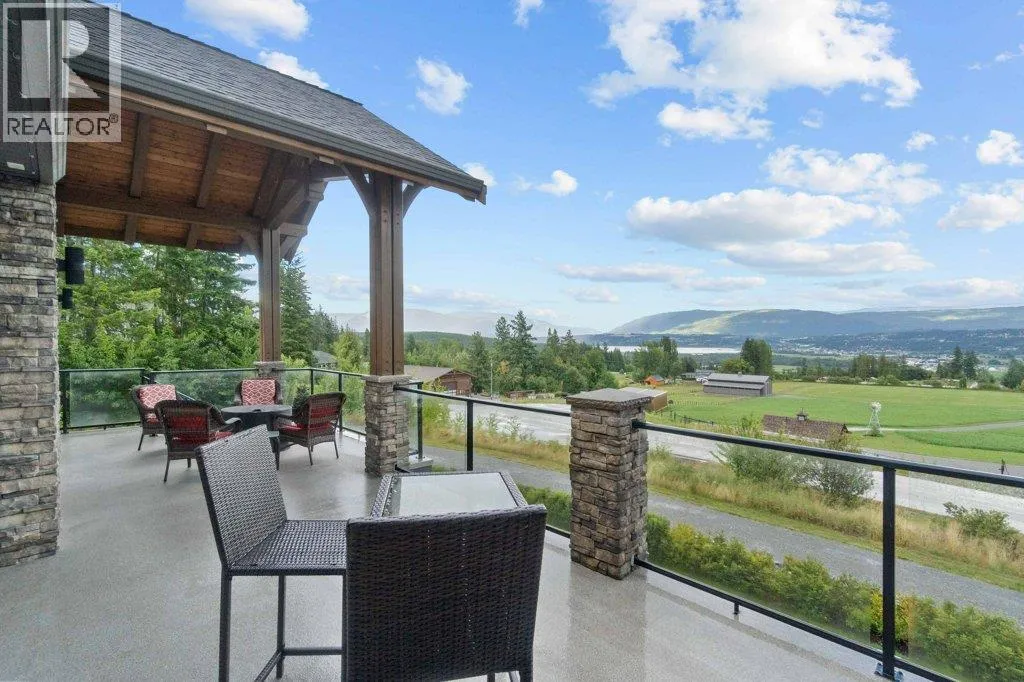 IMPRESSIVE CITY & LAKE VIEW CUSTOM HOME on just over 5 acres minutes to downtown Salmon Arm in an area of fine homes. If you like attention to detail & quality construction, you'll love this one. Offering over 4000 sq ft of living space including 4 bedrooms, 3 bathrooms, office and main living areas, this property has something for everyone. As you walk through the front doors into the spacious entry, you'll notice the character of the stone fireplace & wood beam accents, along with the views through the large vaulted living room windows. Continue further and the large kitchen island will cause you to stop in your tracks and take in the incredible amount of counter space and abundance of cabinets making it a chef's dream. Quartz counter tops & knotty alder cabinetry create a warm & inviting feel perfect for entertaining. A large separate dining room is surrounded by windows for the best views. You also have access to the large east facing deck where you can enjoy your morning coffee. The primary bedroom is spacious and features a walk-in closet, ensuite with soaker tub, double vanity and large walk-in shower. In the basement you'll find more bedrooms, a games/family room area, hobby or wine room and walkout to the lower covered patio. Lots of storage with a 3 car garage and outside shed. Too many extras to mention including surge protection in the electrical panel, 2 zone heating system with HRV, and so much more. Call for details and book your showing today. (id:27476)